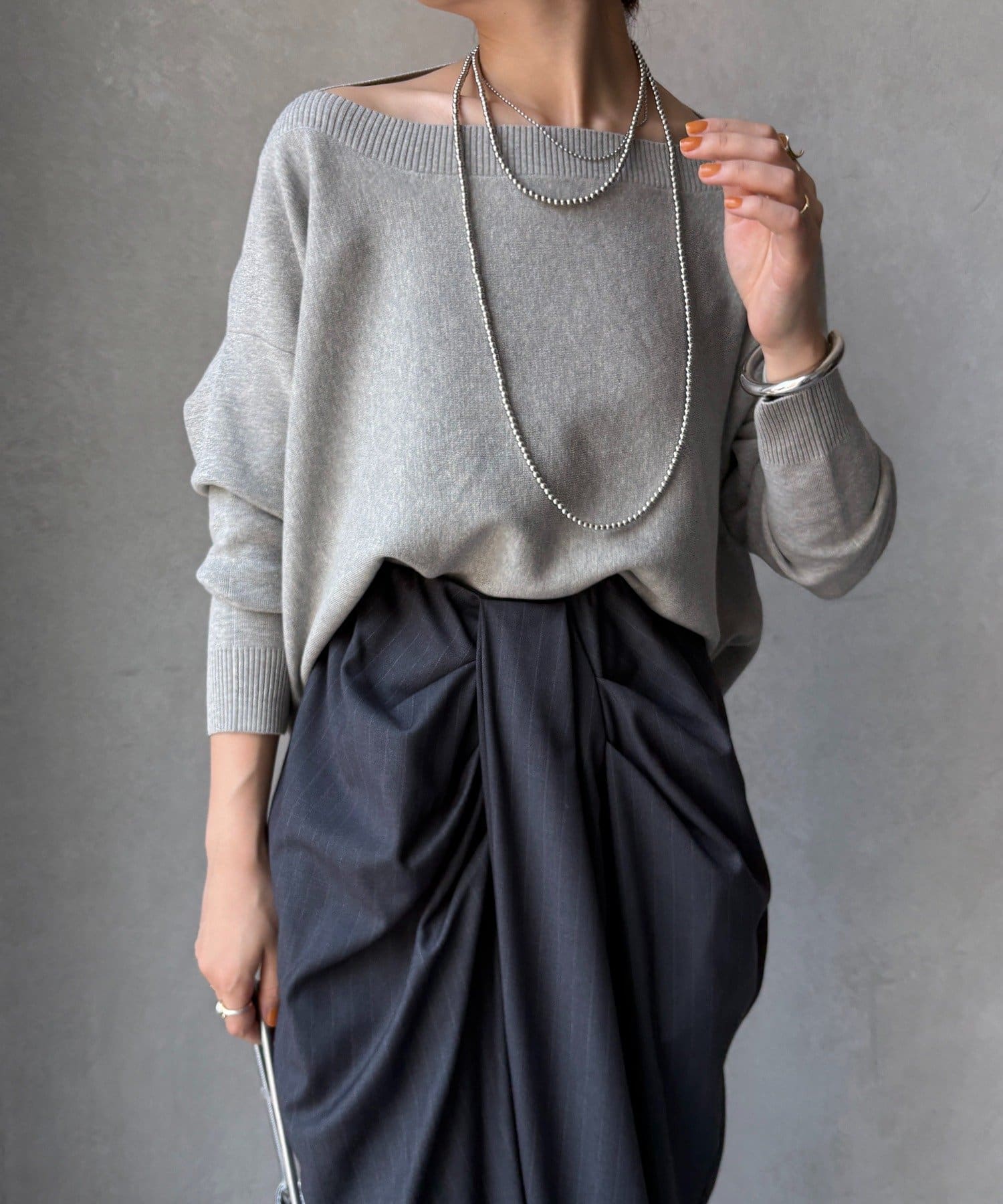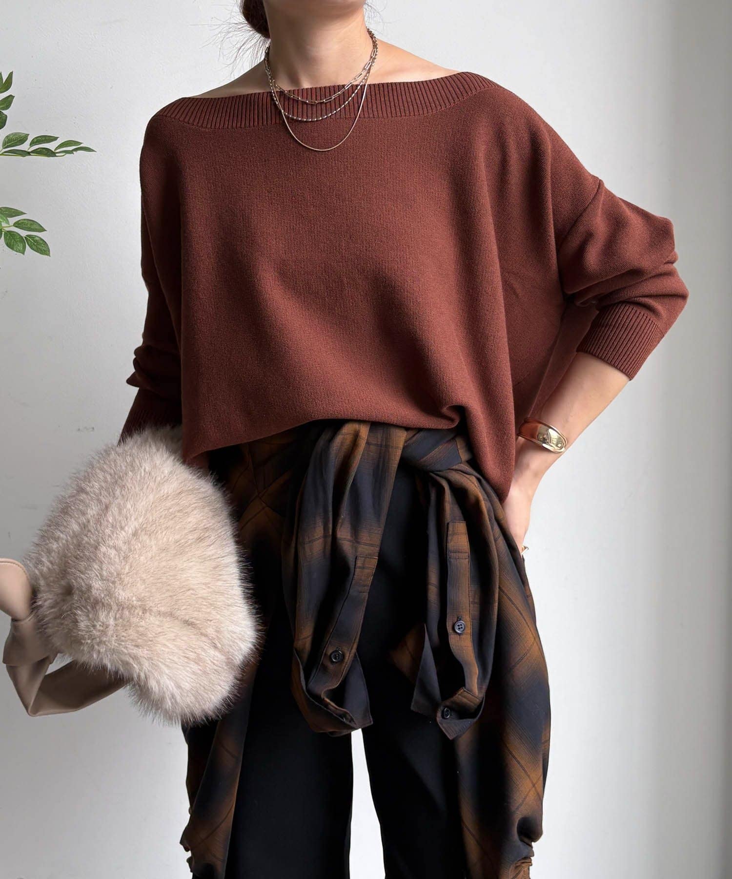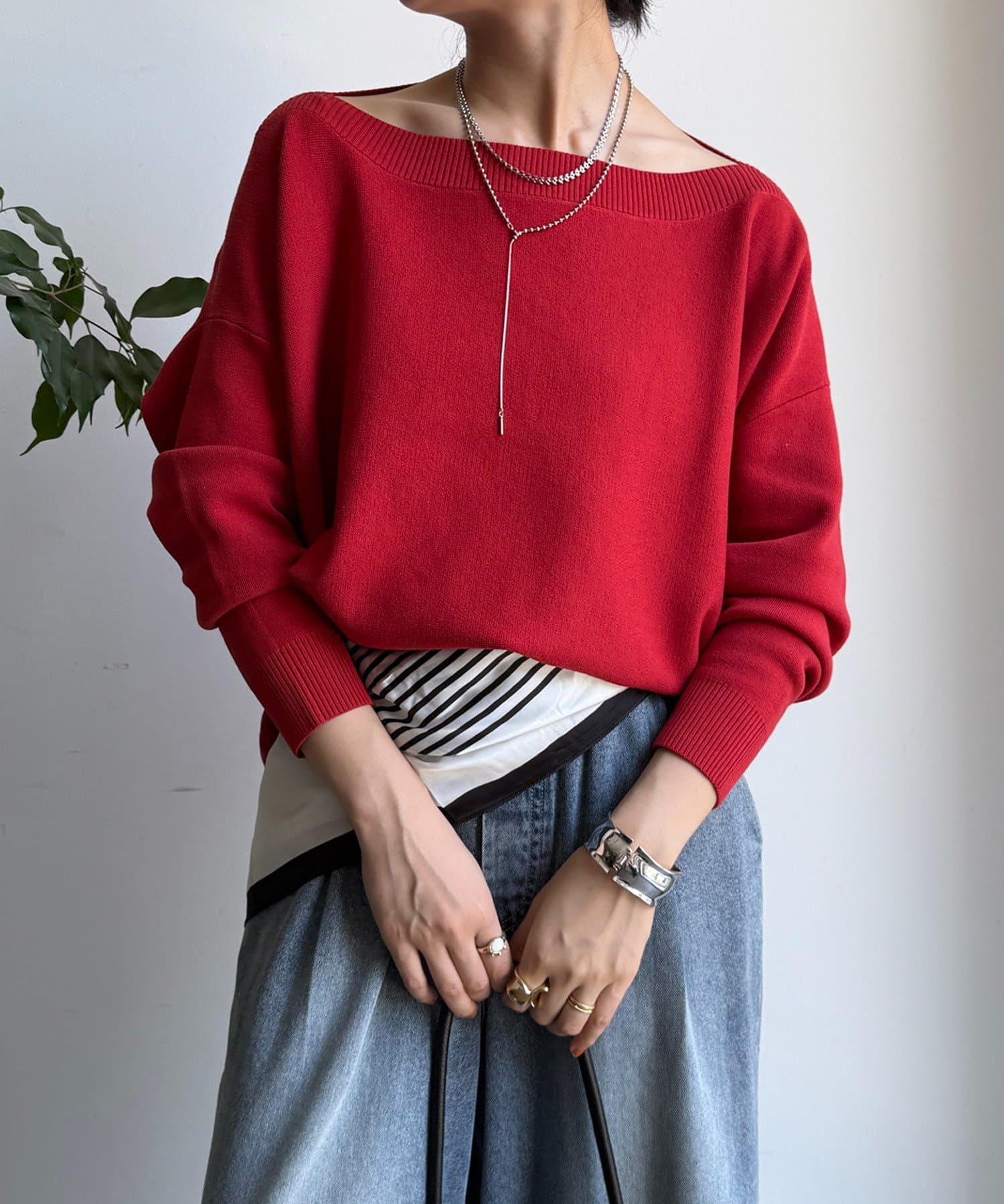 ・ボートネックの絶妙な開きがデコルテラインを美しく!