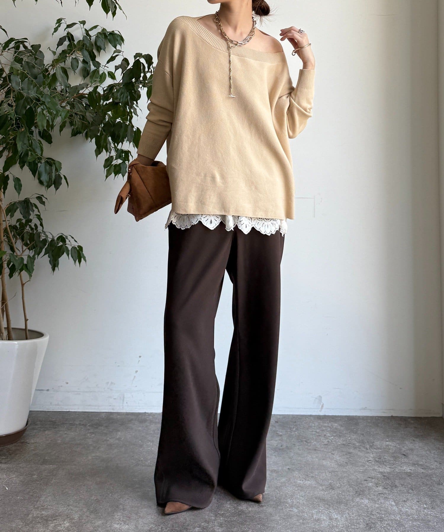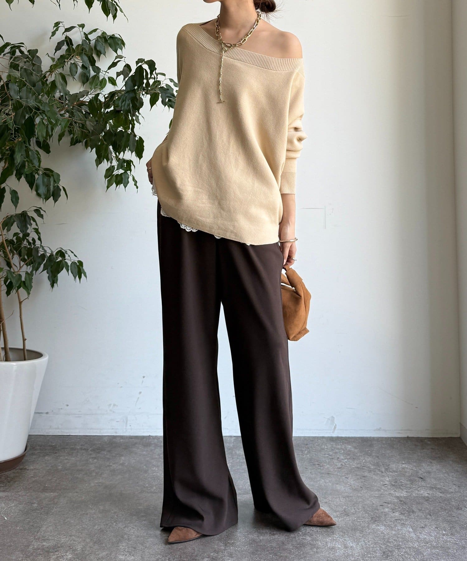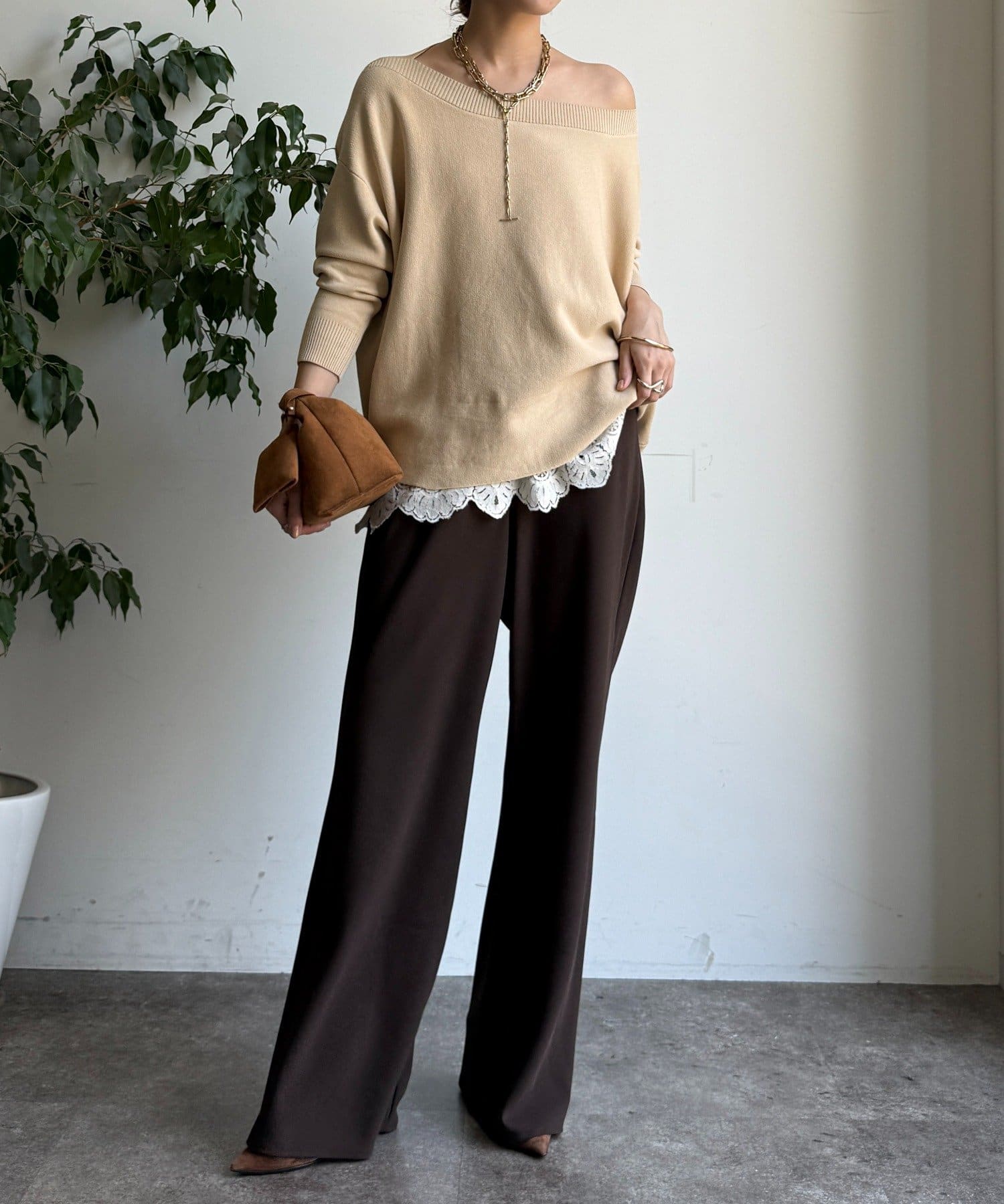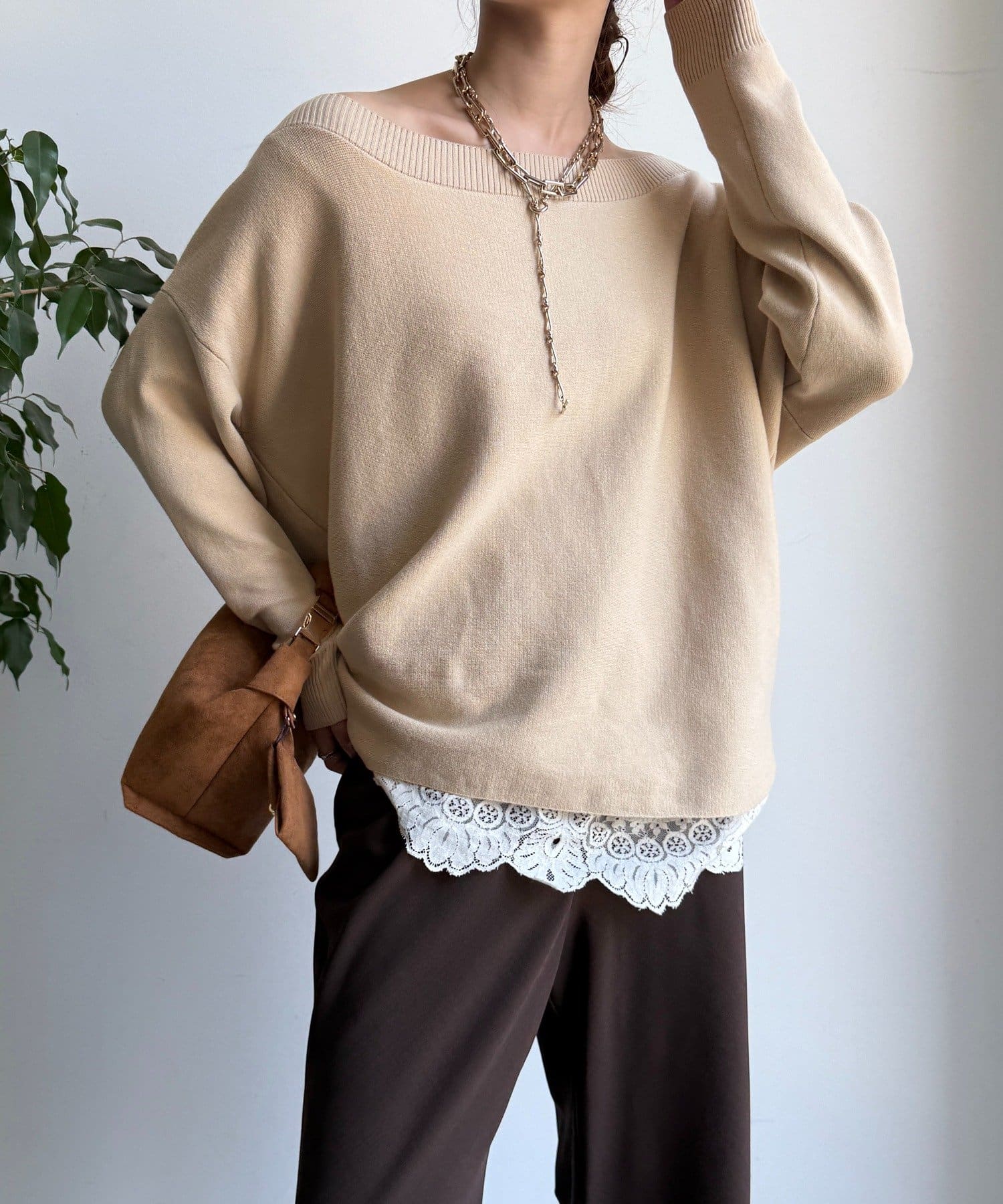 ・ボートネックの絶妙な開きがデコルテラインを美しく!