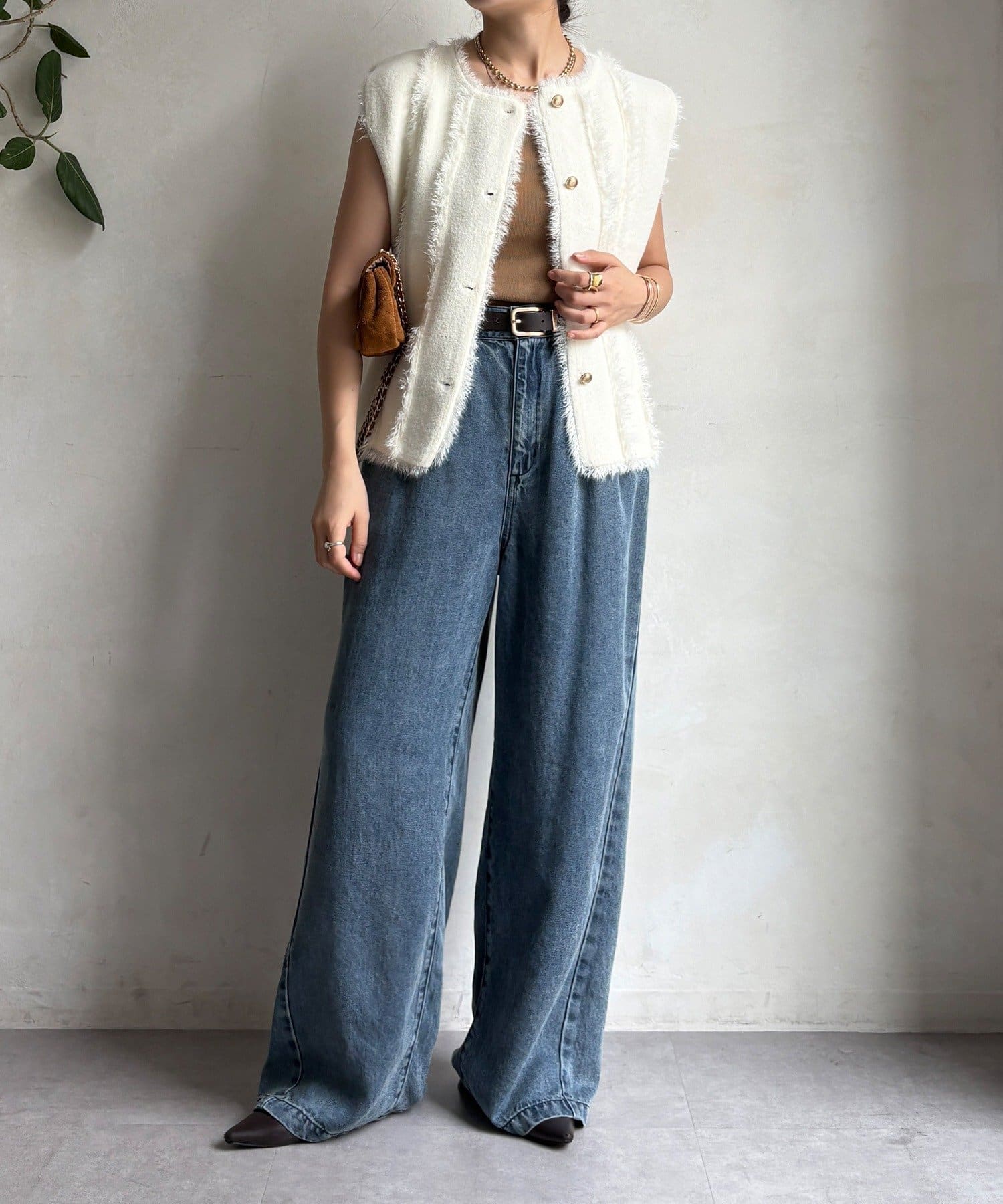 シンプルなスタイリングにさっと取り入れるだけでこなれ感をプラスします。