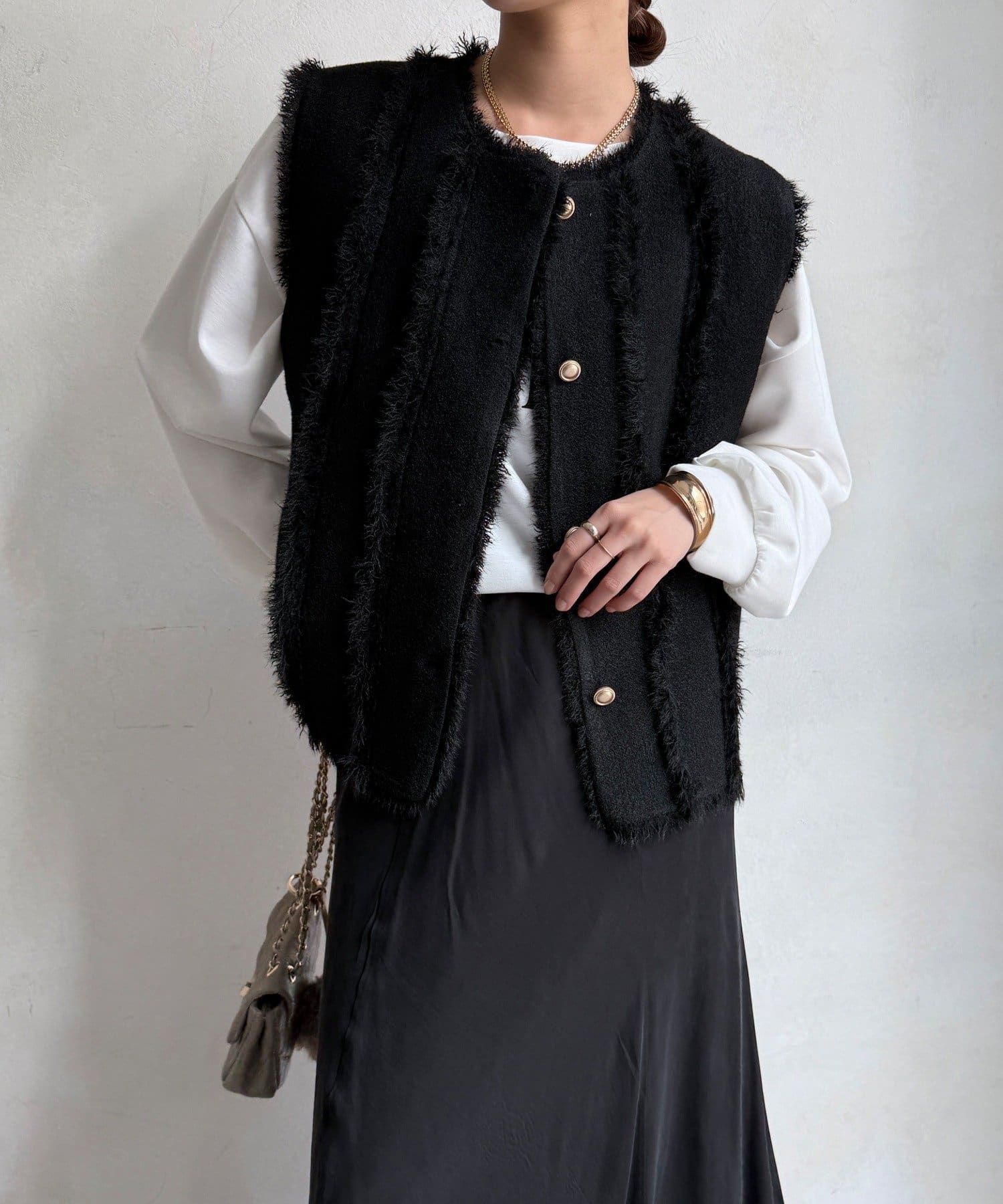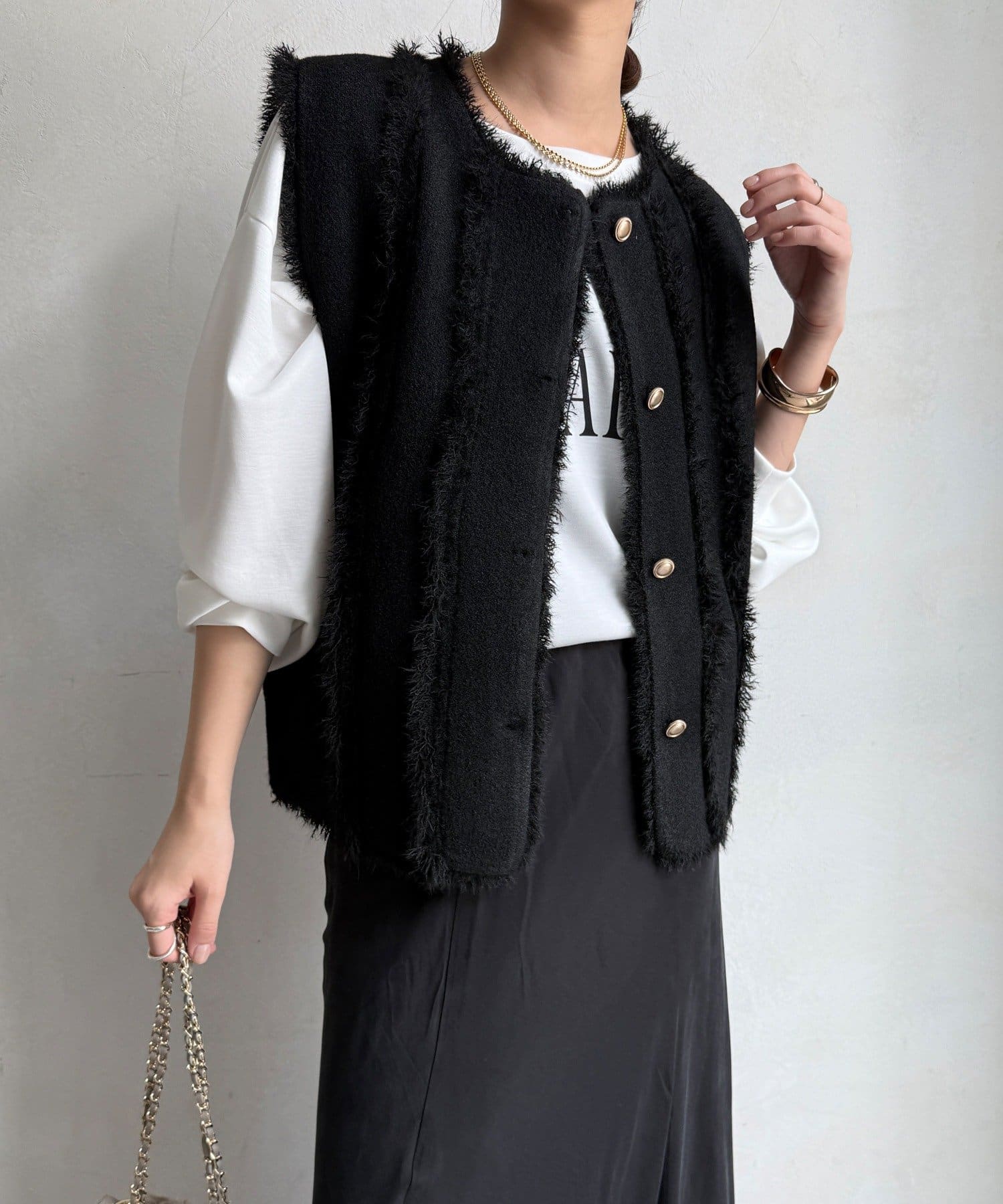 柔らかな素材にあしらったフリンジデザインがポイントで、