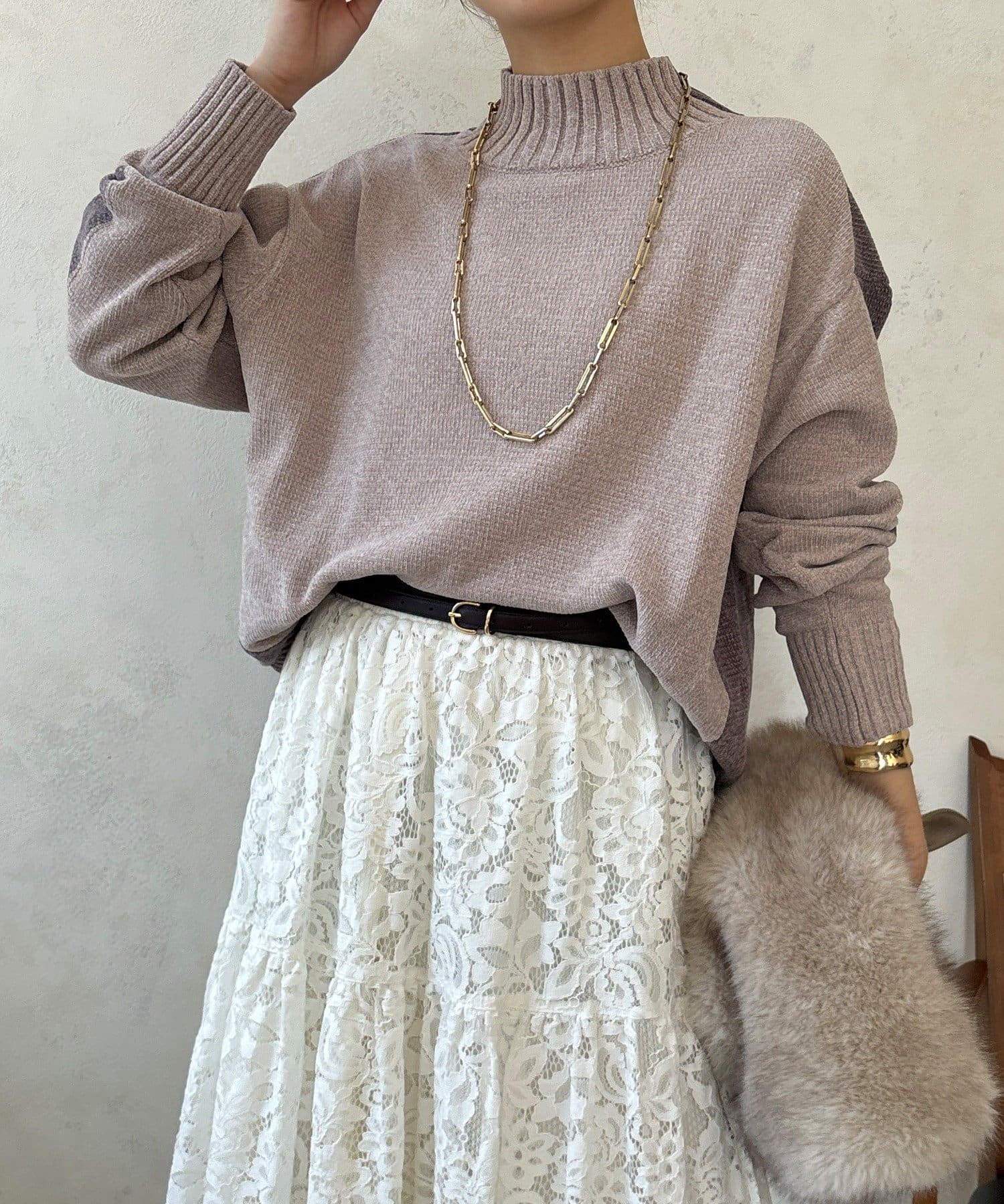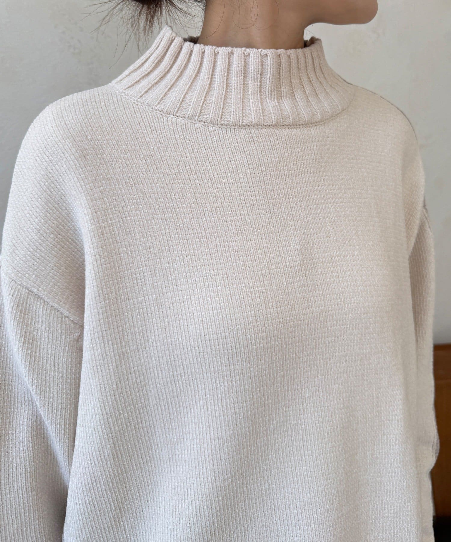 ふんわりとした肌触りが魅力のモール素材を贅沢に使用したハイネックプルオーバーが登場。