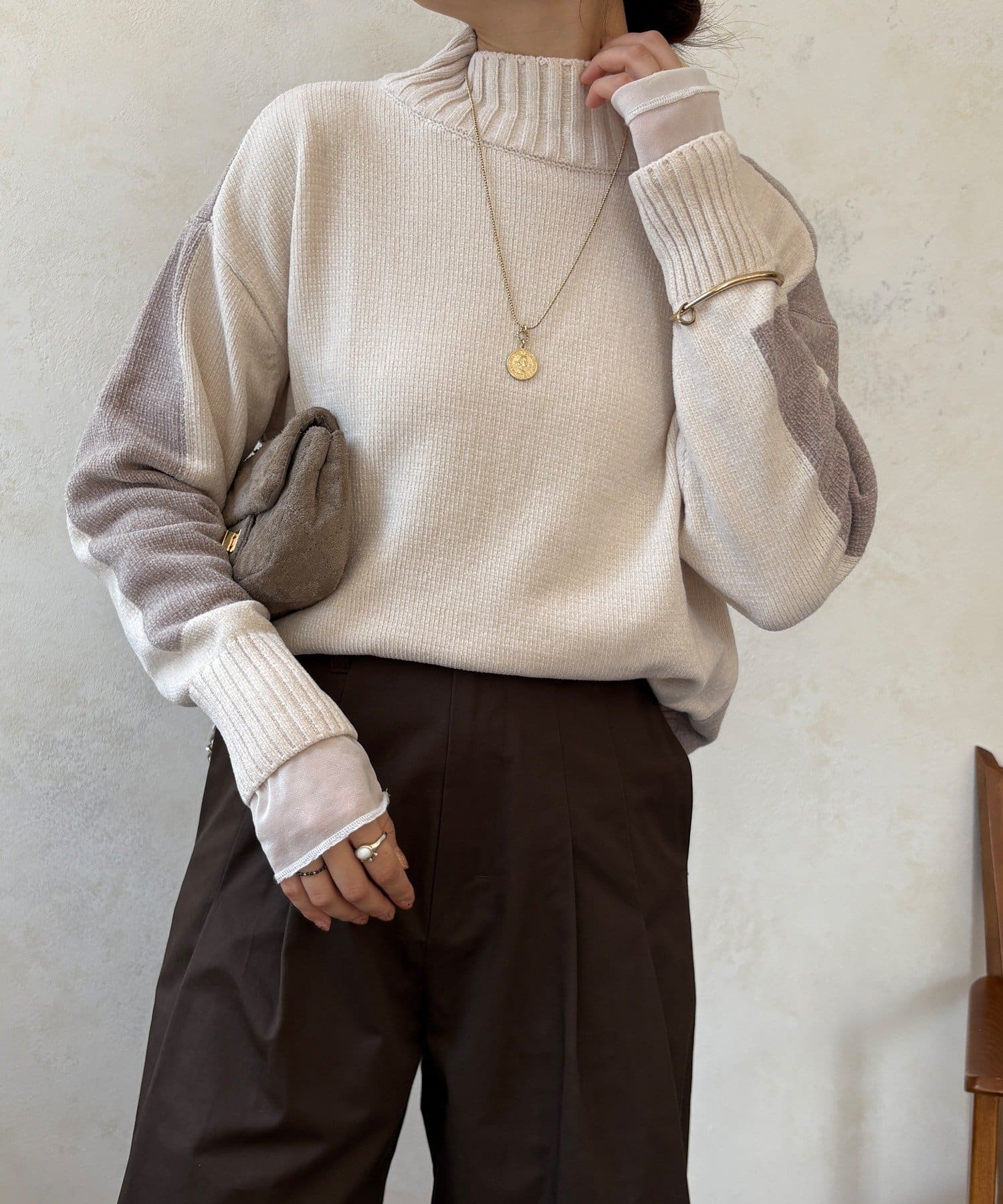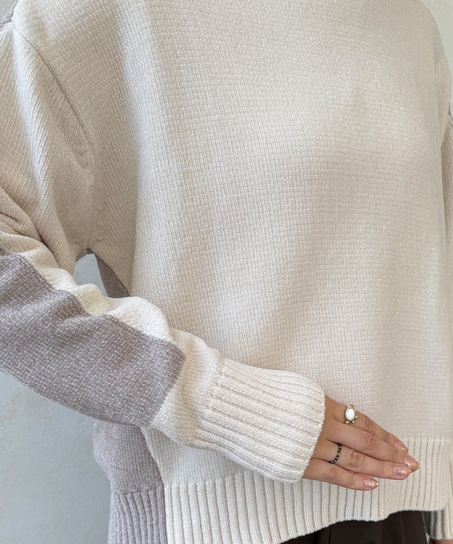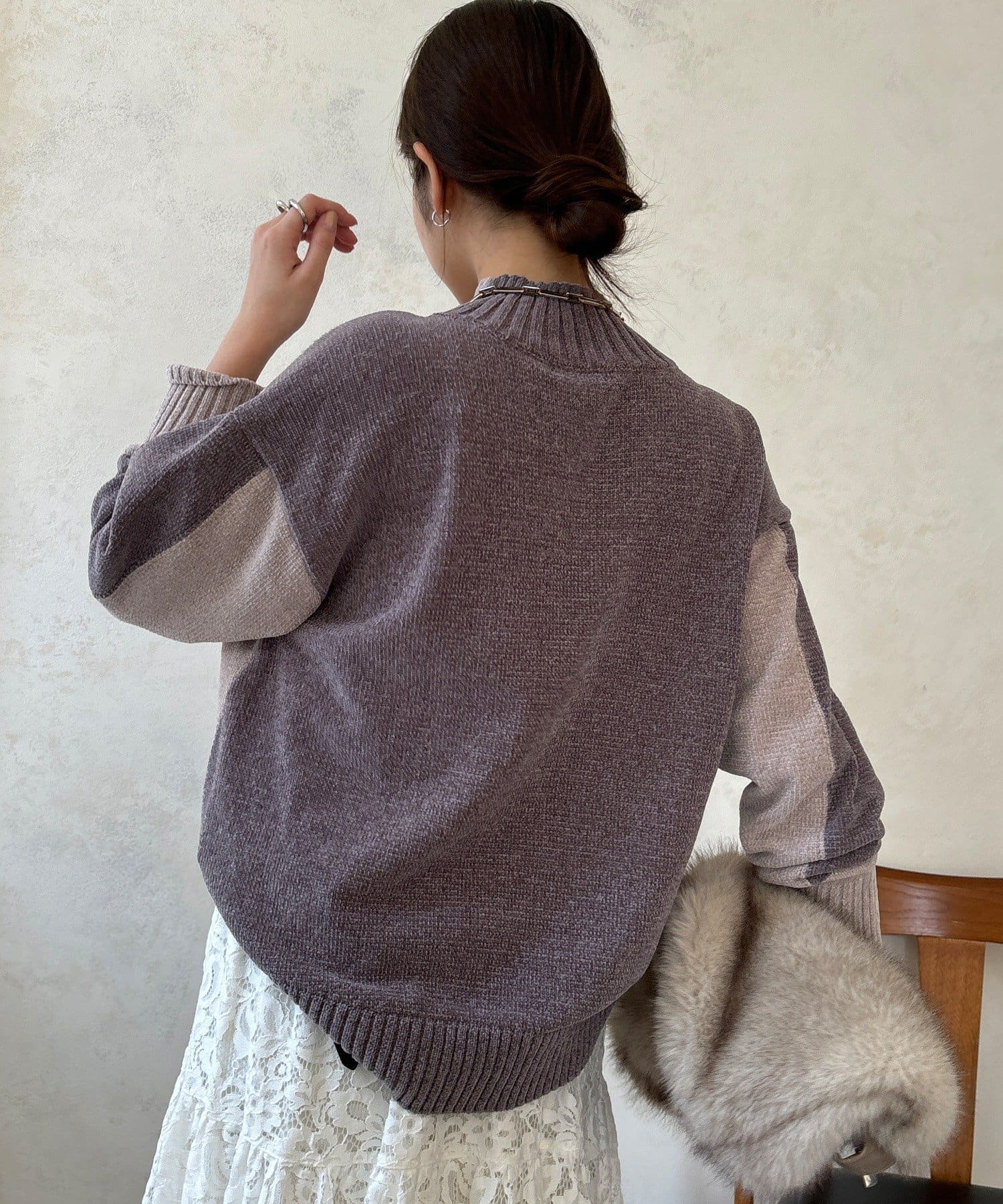 • DOUDOU(ドゥドゥ) 【WEB限定】モール配色ハイネックプルオーバー