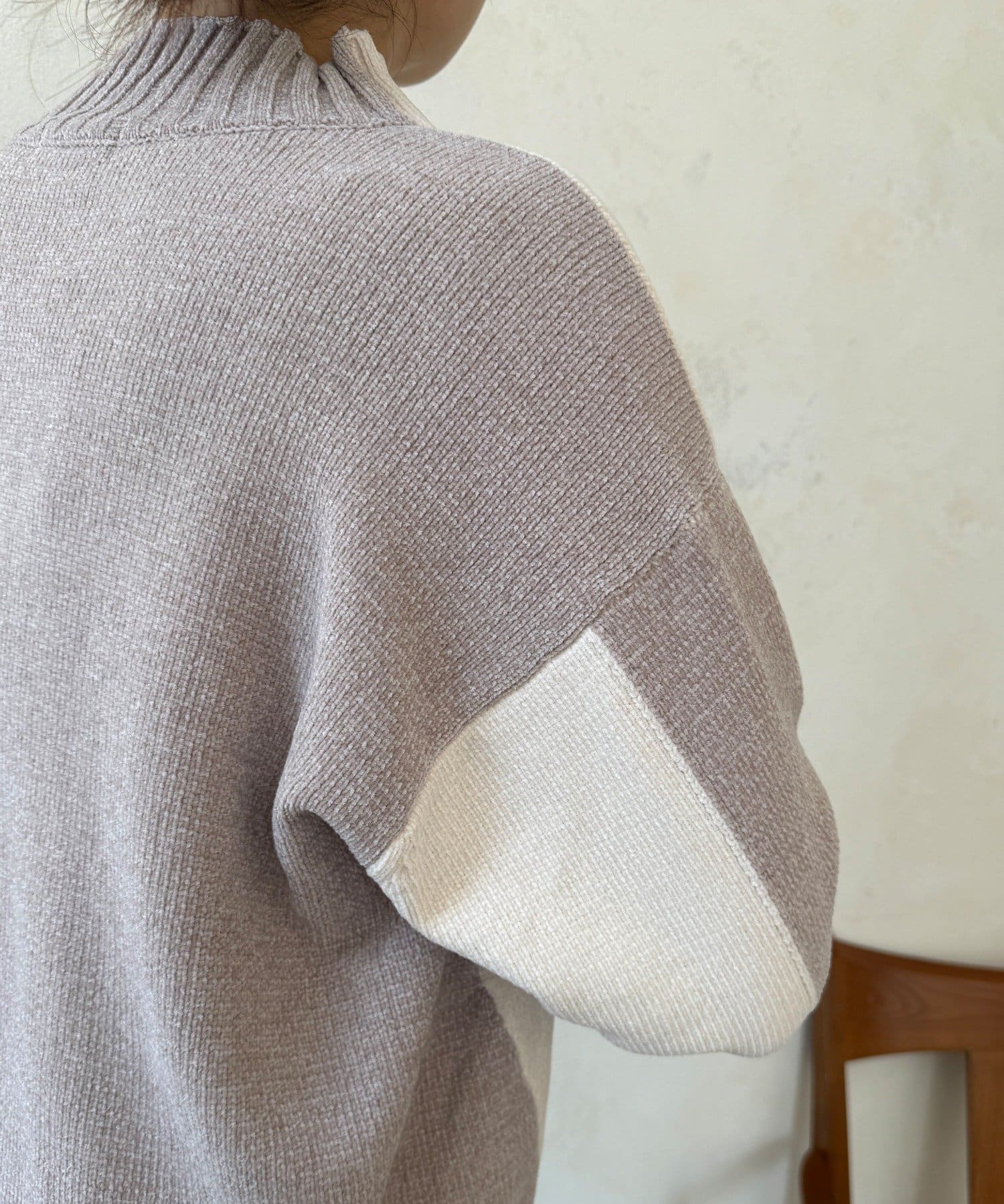 DOUDOU(ドゥドゥ) 【WEB限定】モール配色ハイネックプルオーバー