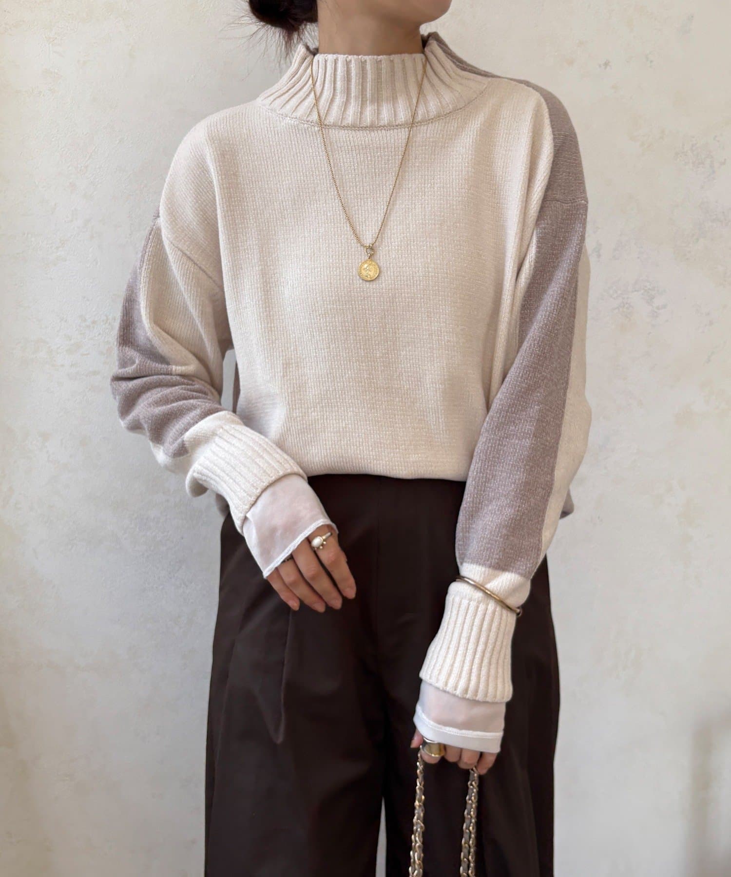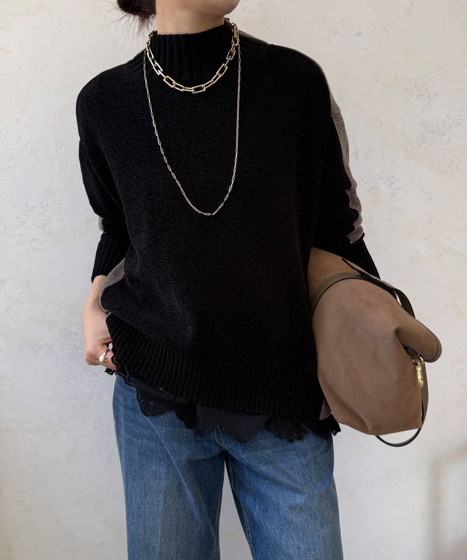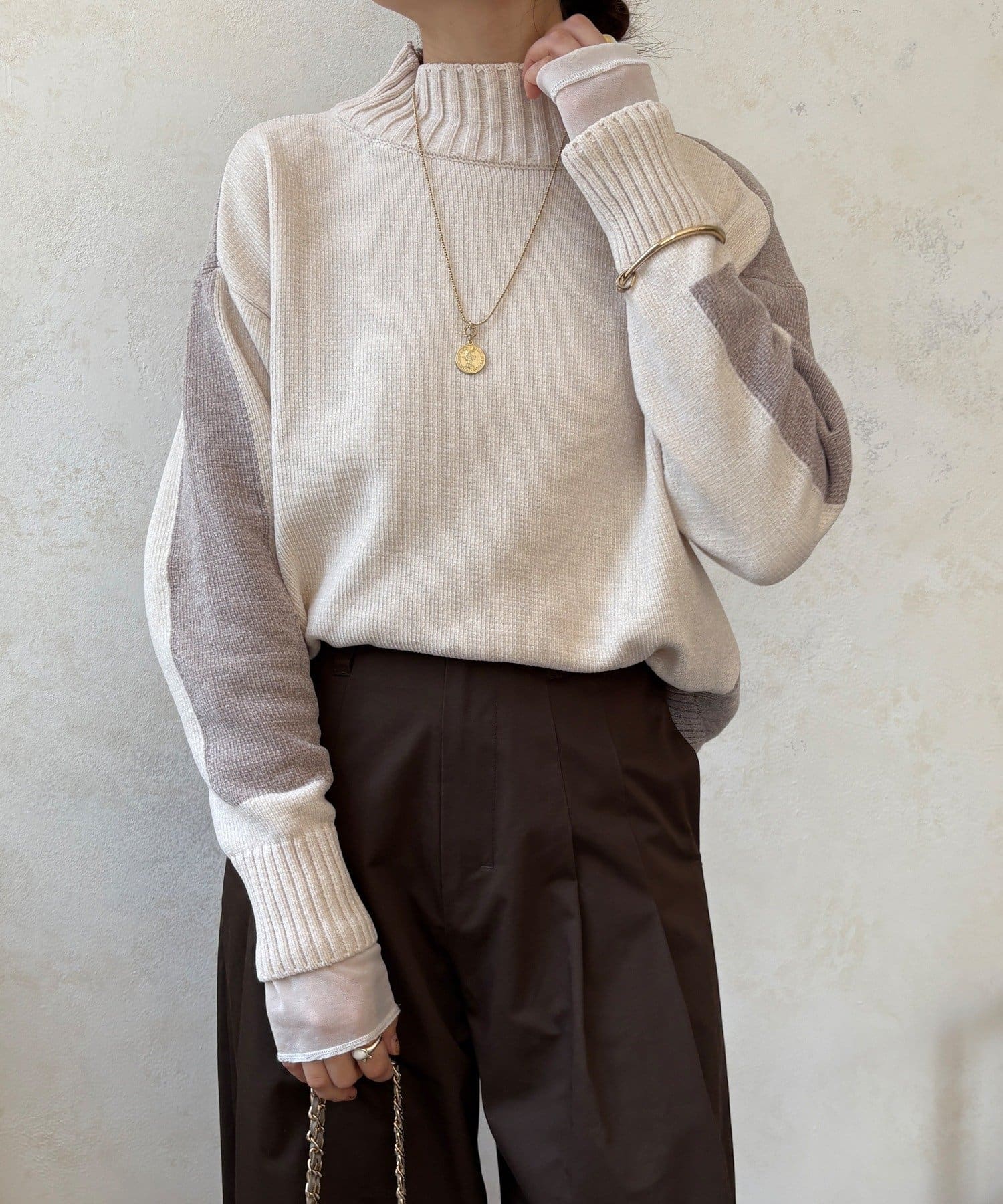 TOP > DOUDOU > レディース > トップス > ニット/セーター > 【WEB限定】モール配色ハイネックプルオーバー