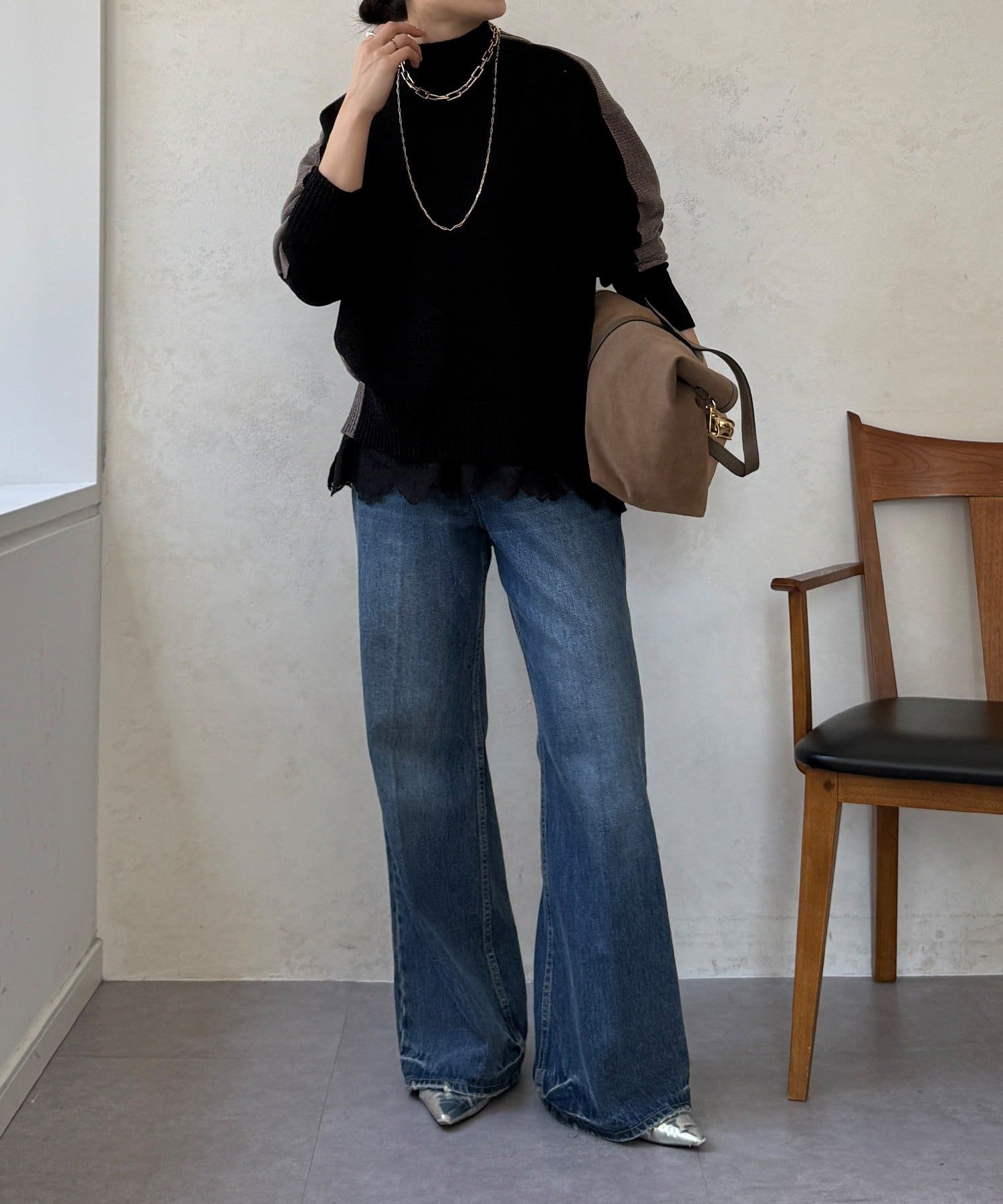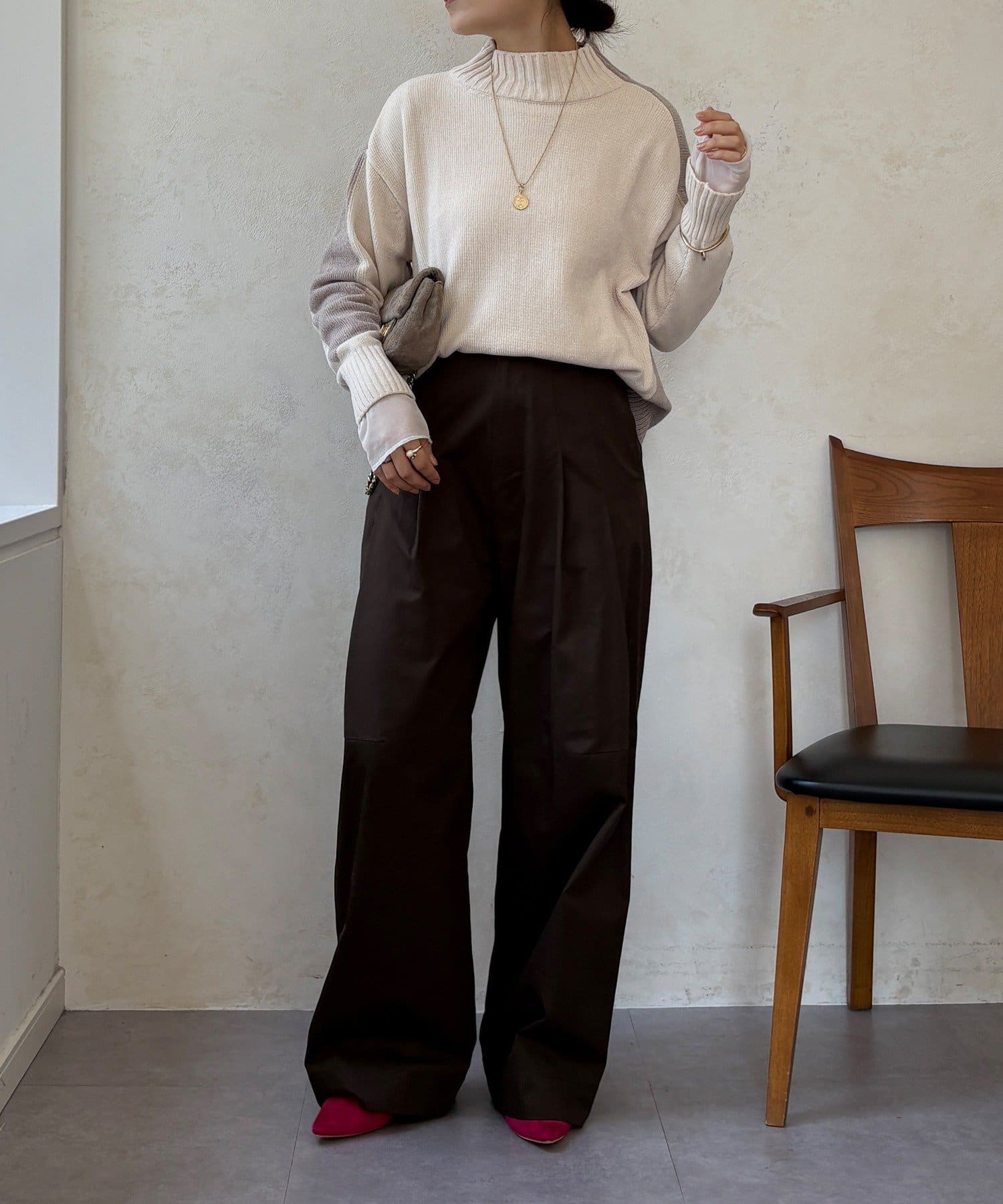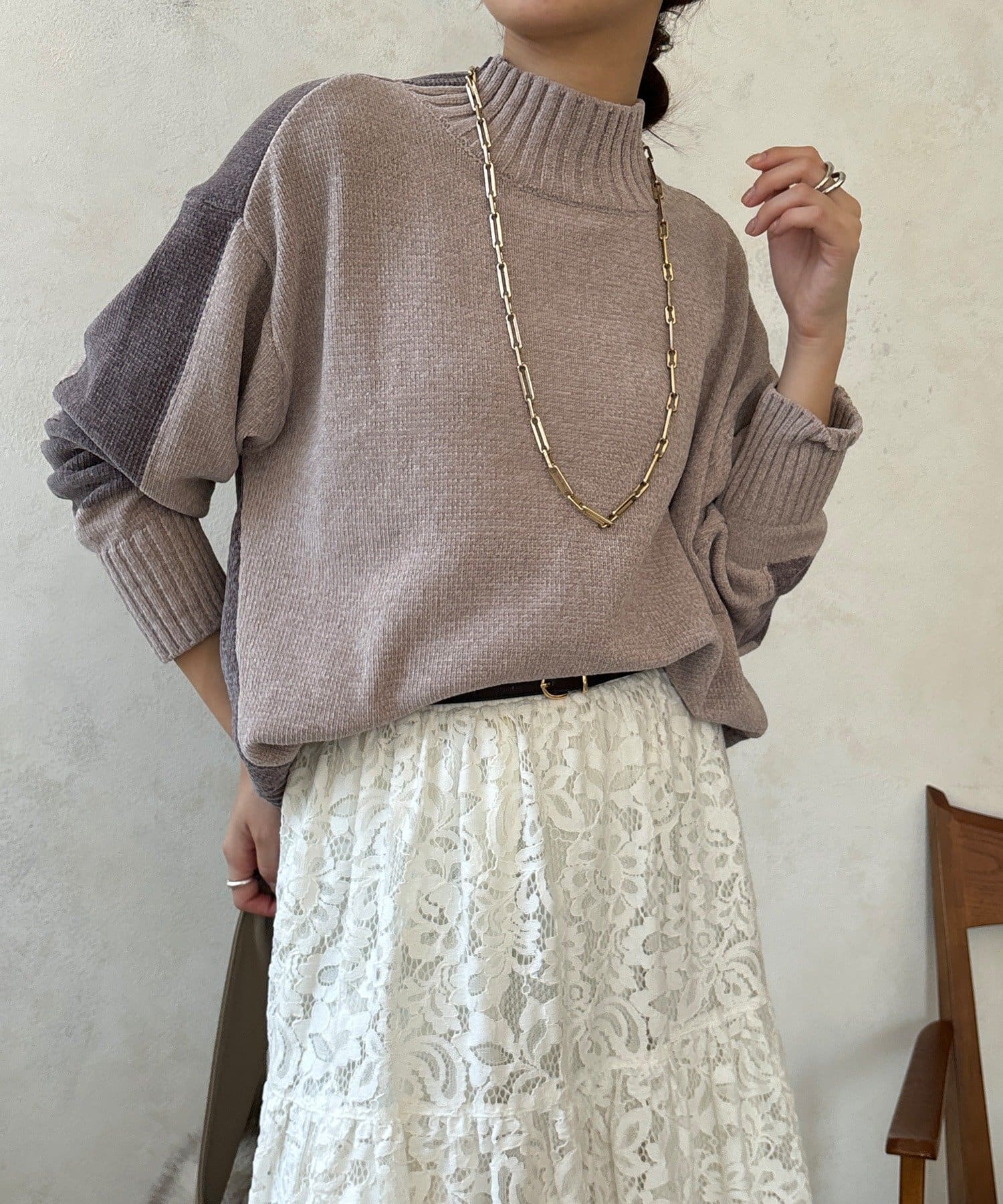 TOP > DOUDOU > レディース > トップス > ニット/セーター > 【WEB限定】モール配色ハイネックプルオーバー