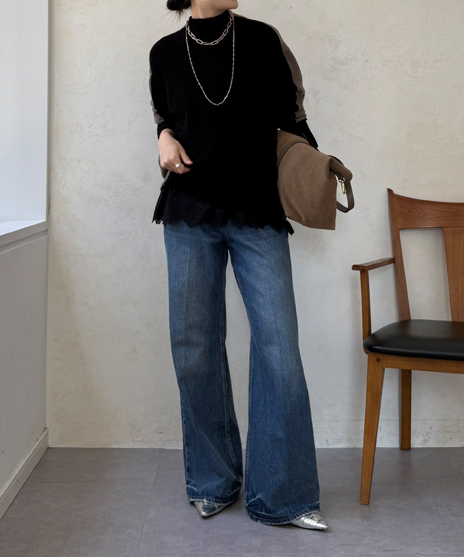 ゆったりとしたシルエットで、リラックスしながらも上品な印象をキープ◎