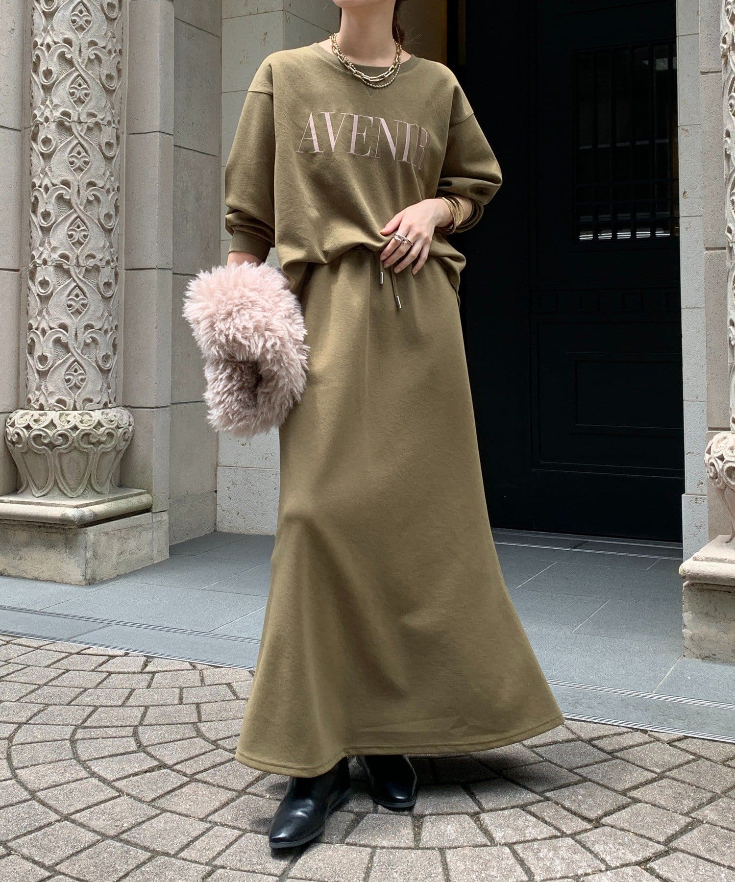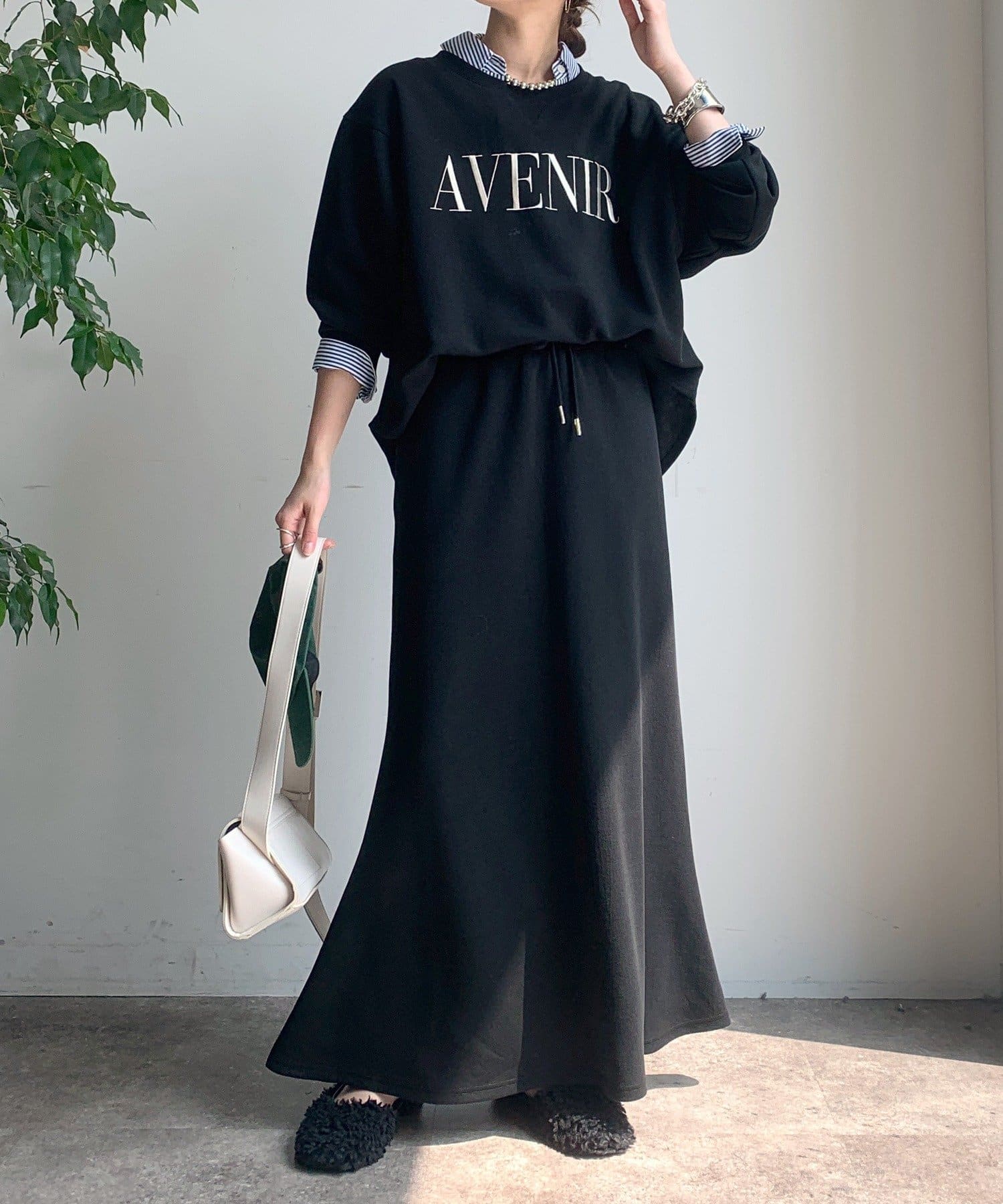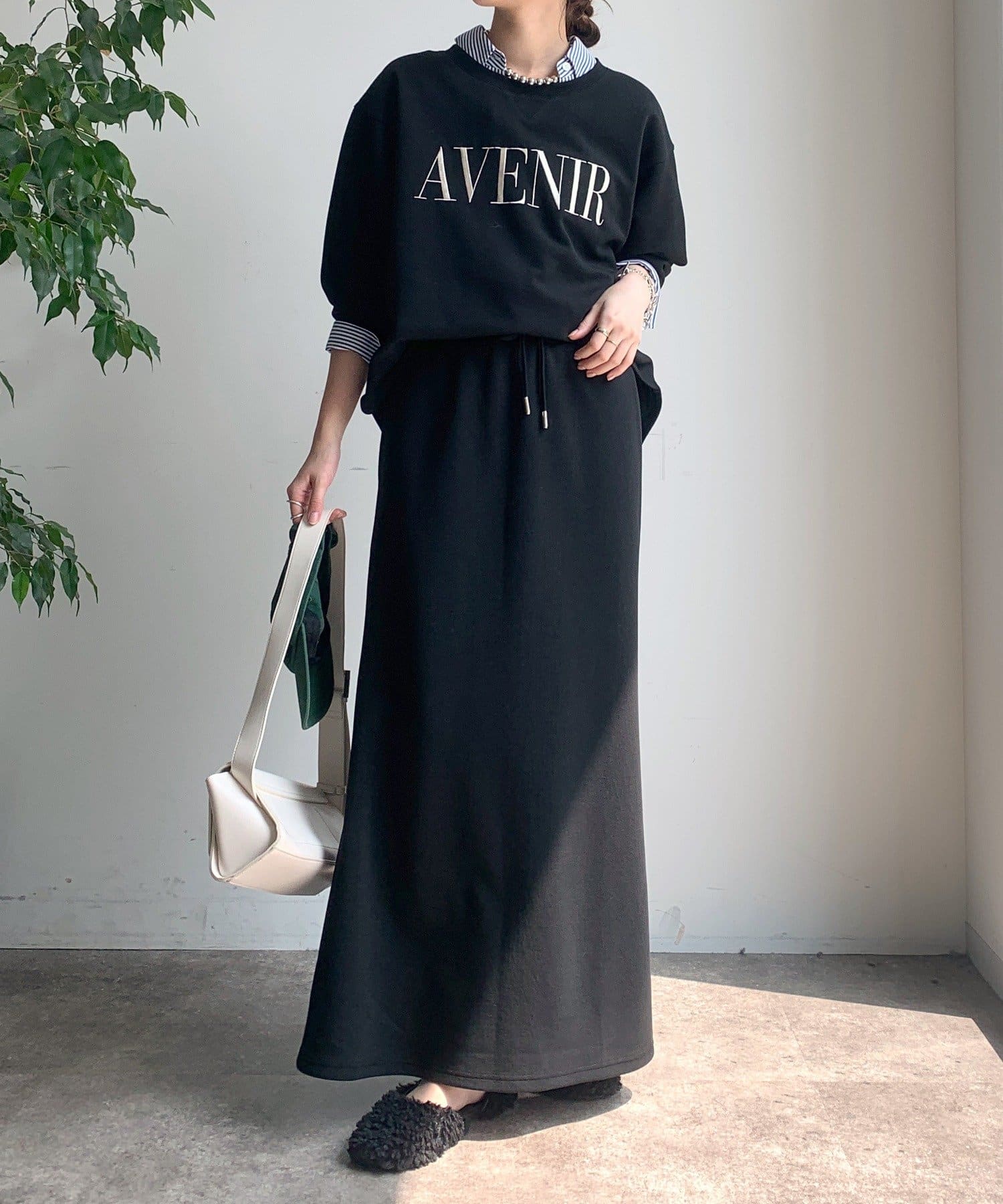 同素材の DDZ1052201A0003 / セットアップドロストスカート とセットアップでの着用がおすすめですよ。