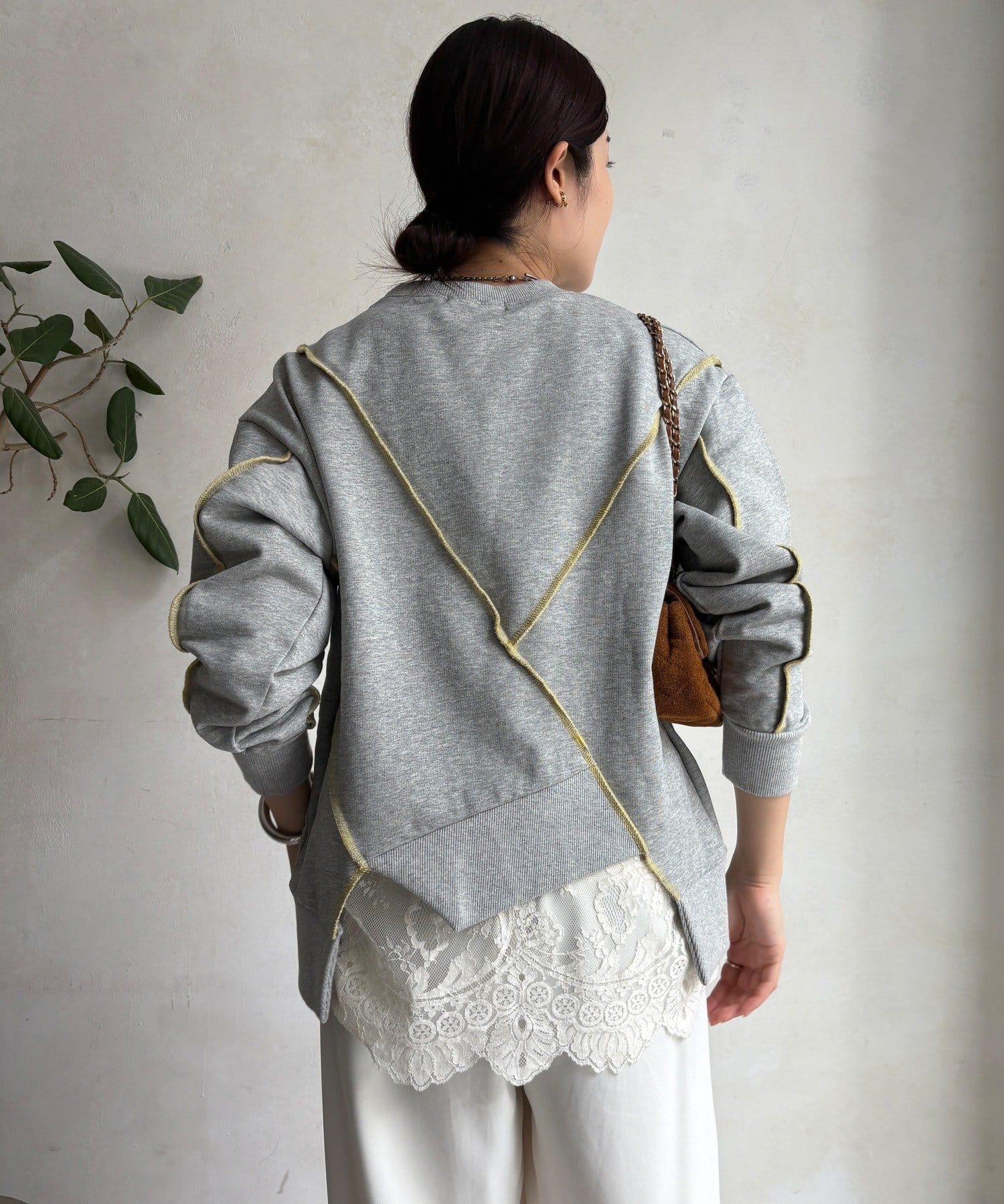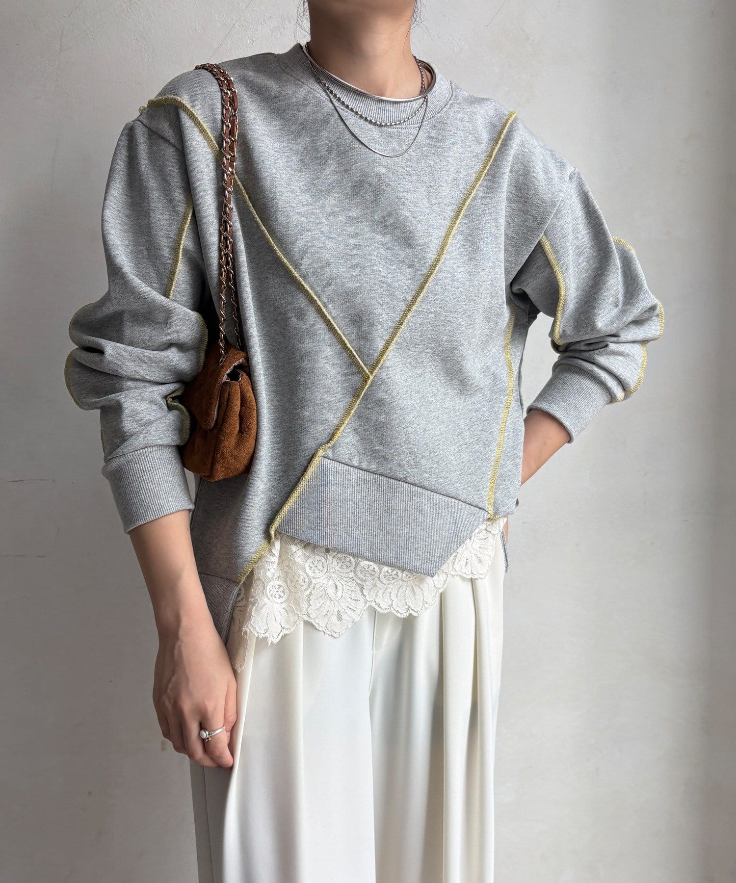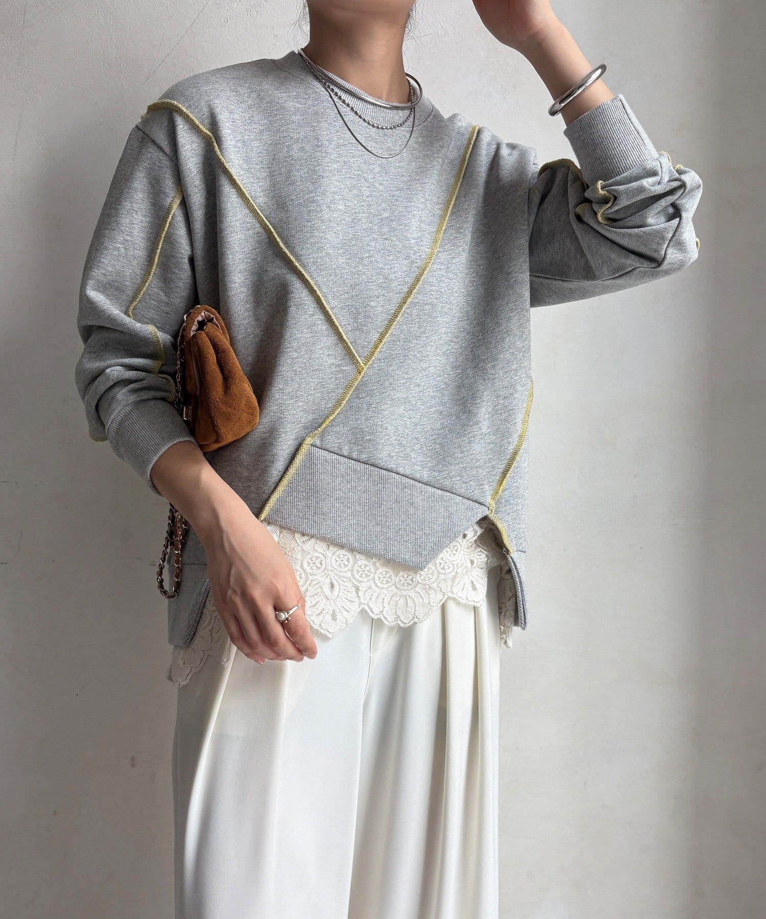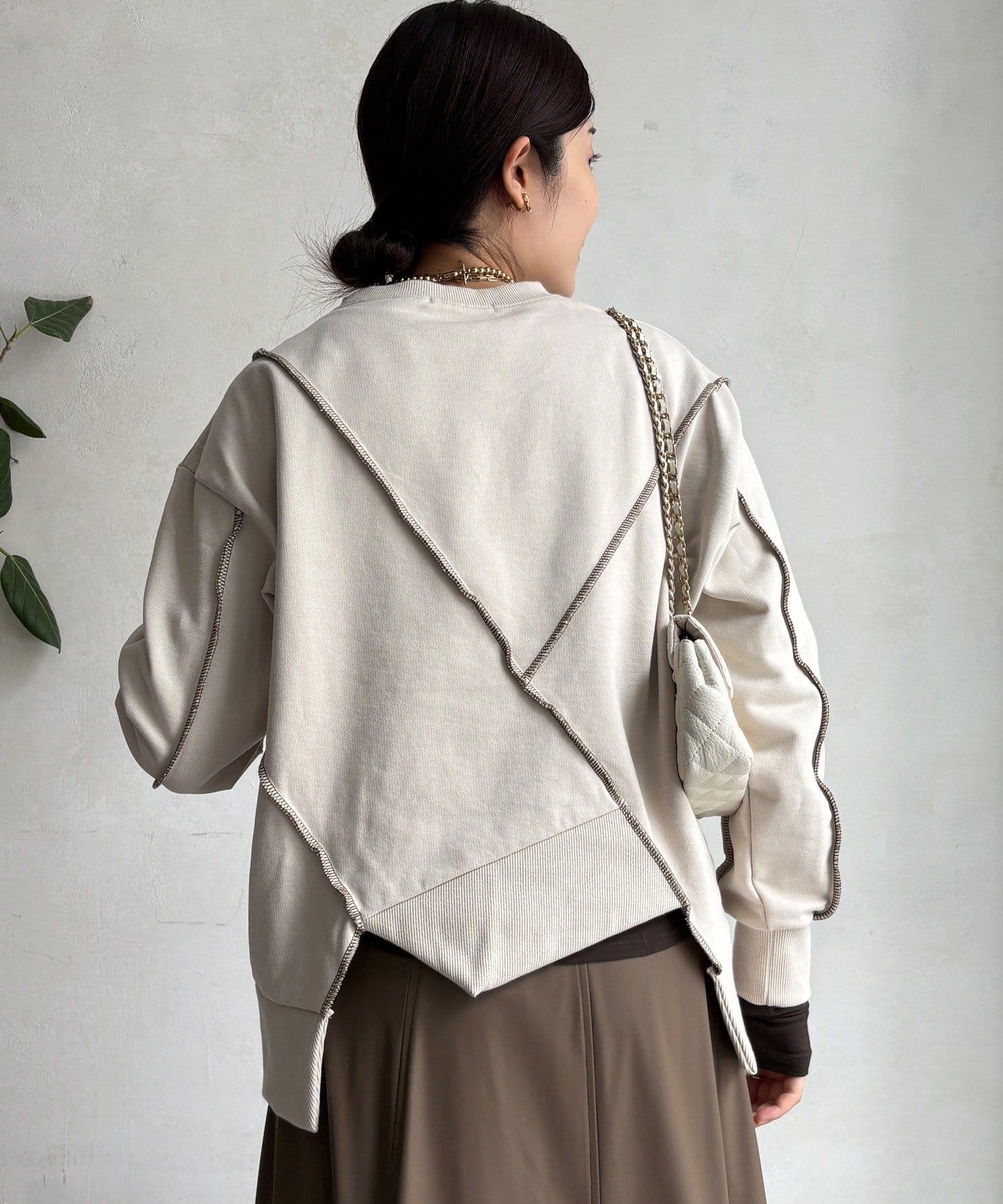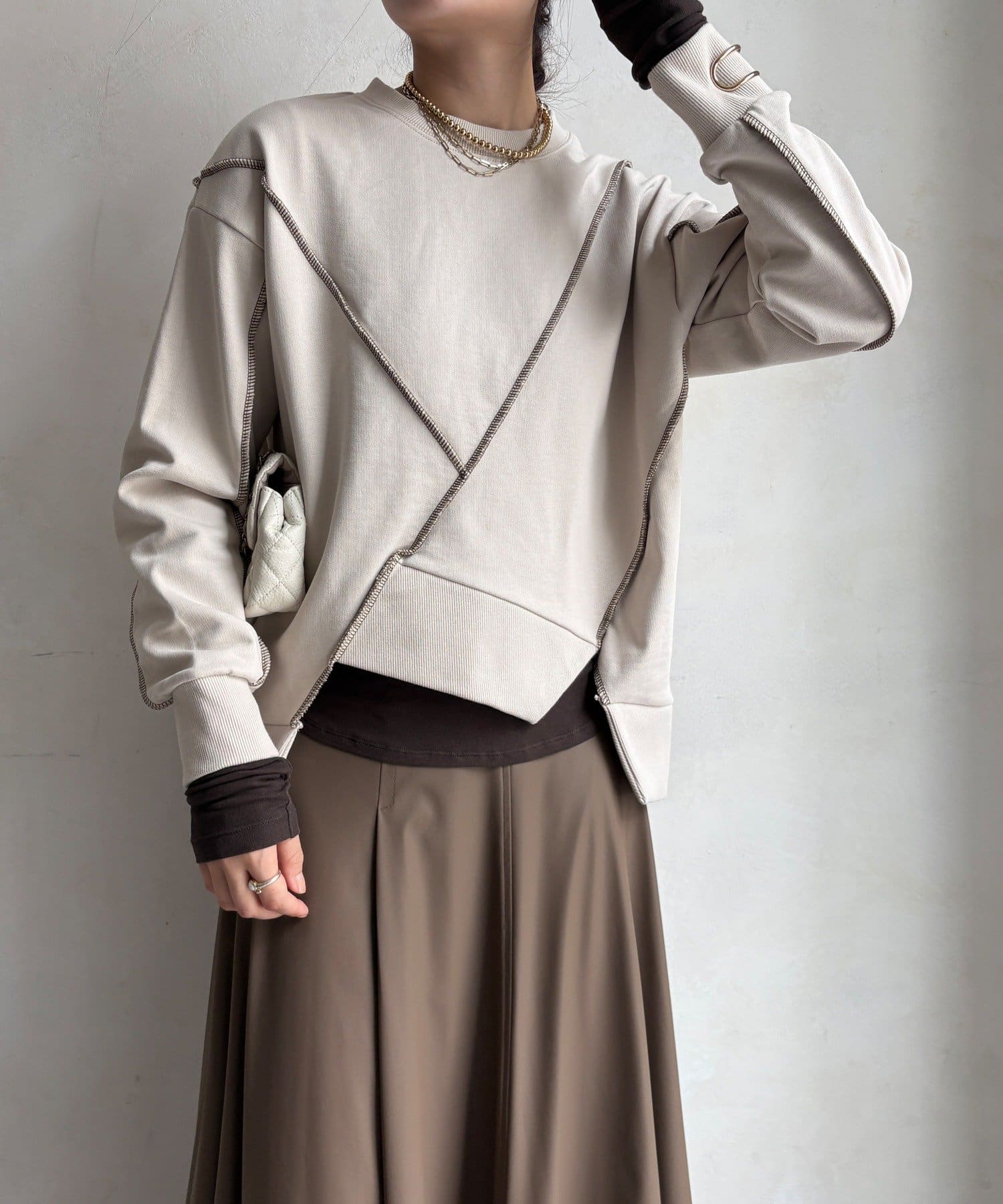 切り替えデザインが立体的なシルエットを生み出し、他にはない個性を演出するトップス。
