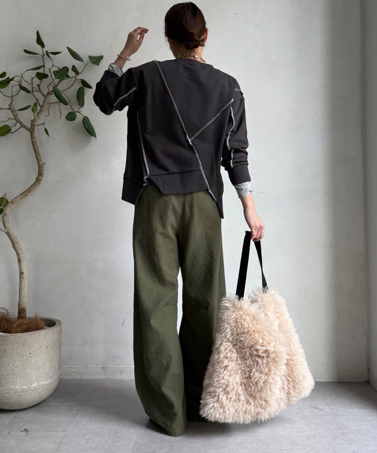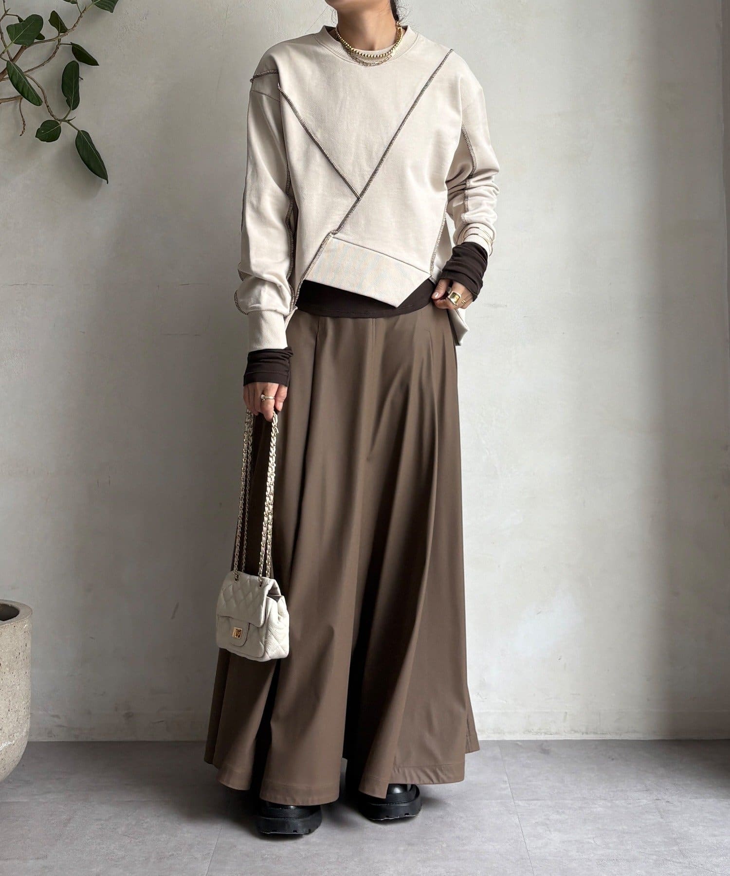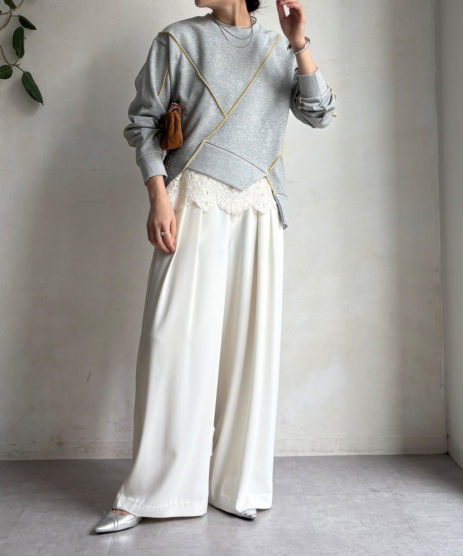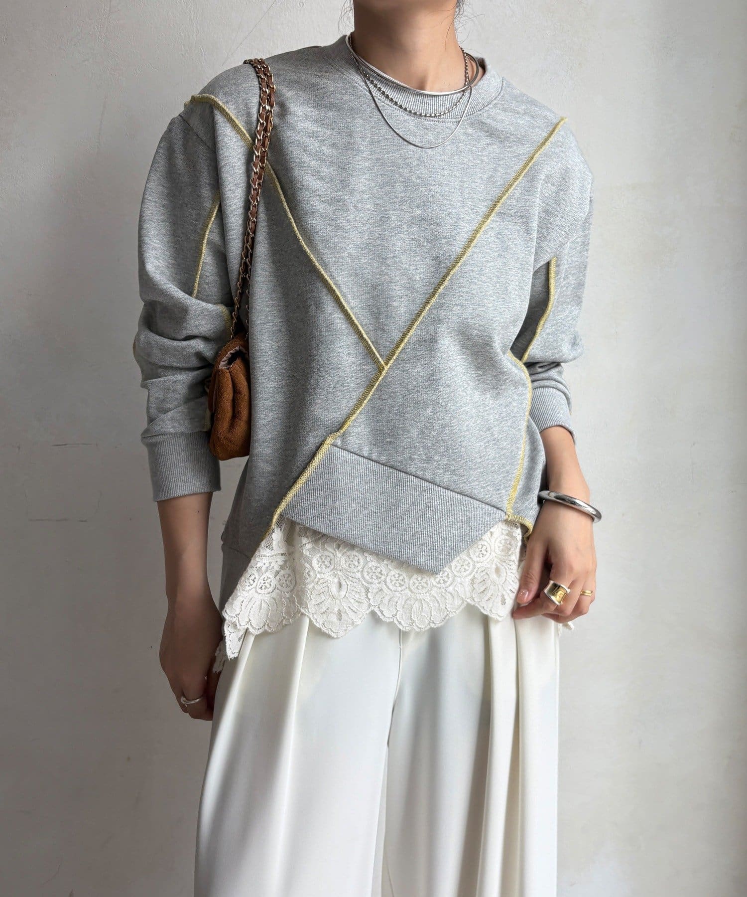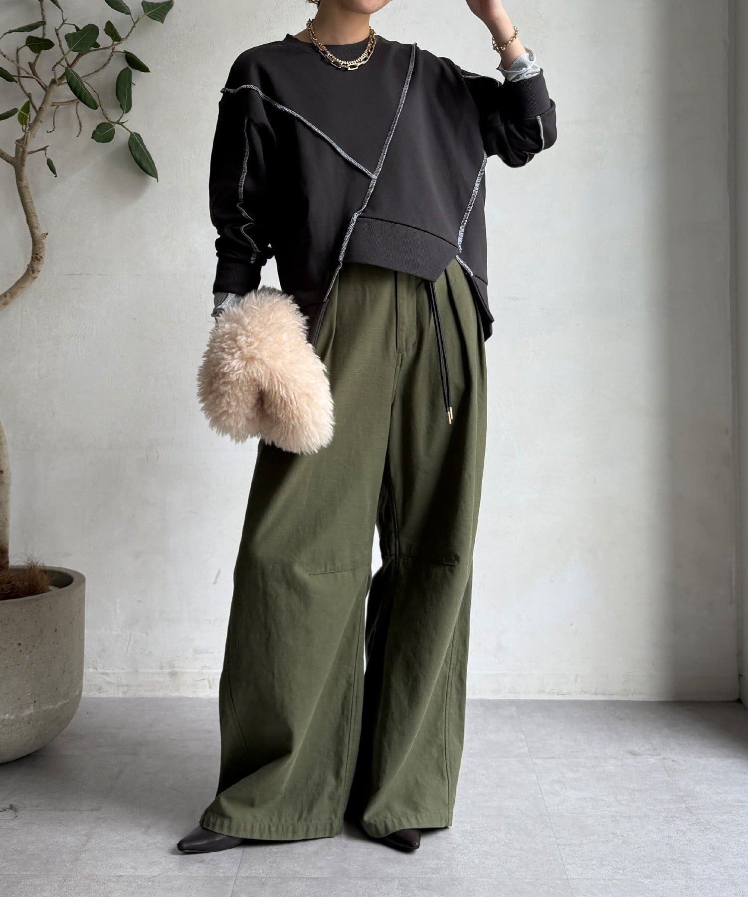 切り替えデザインが立体的なシルエットを生み出し、他にはない個性を演出するトップス。
