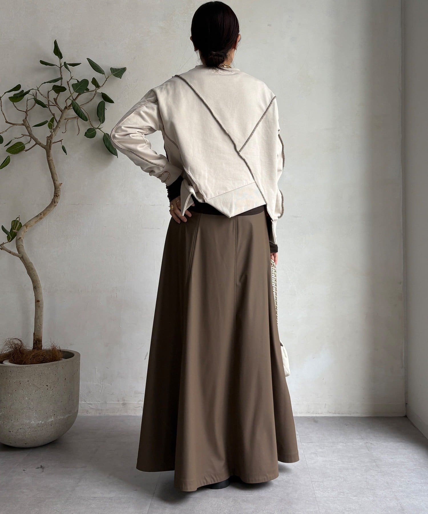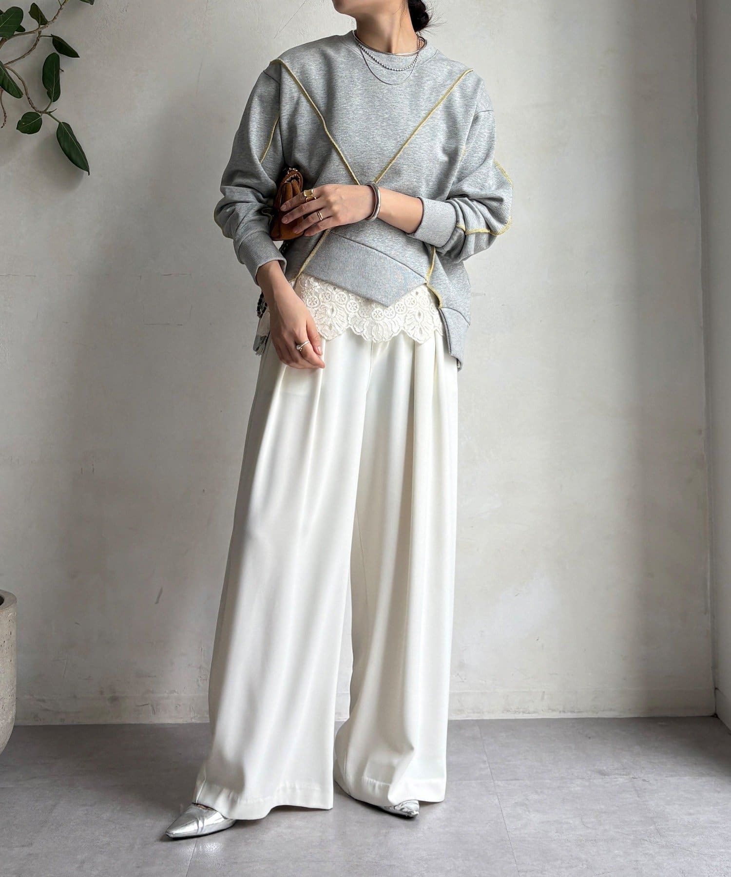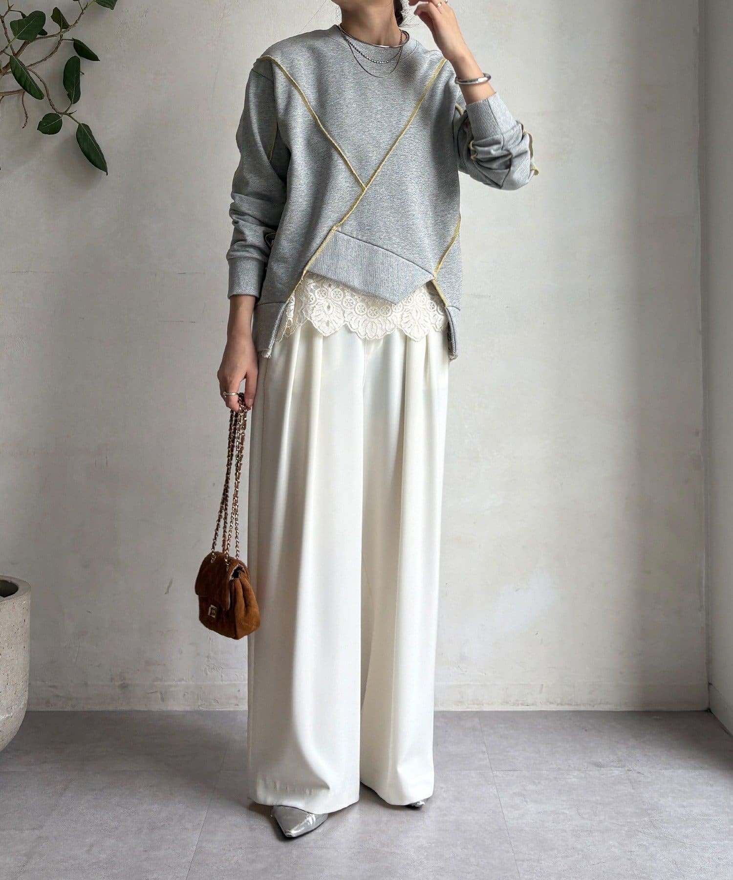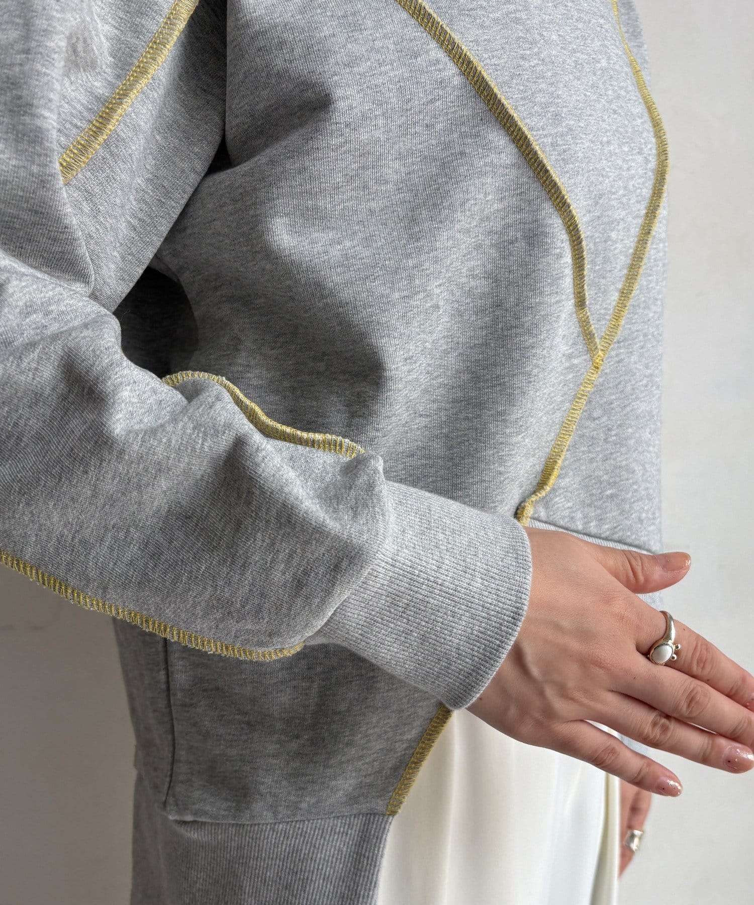 切り替えデザインが立体的なシルエットを生み出し、他にはない個性を演出するトップス。