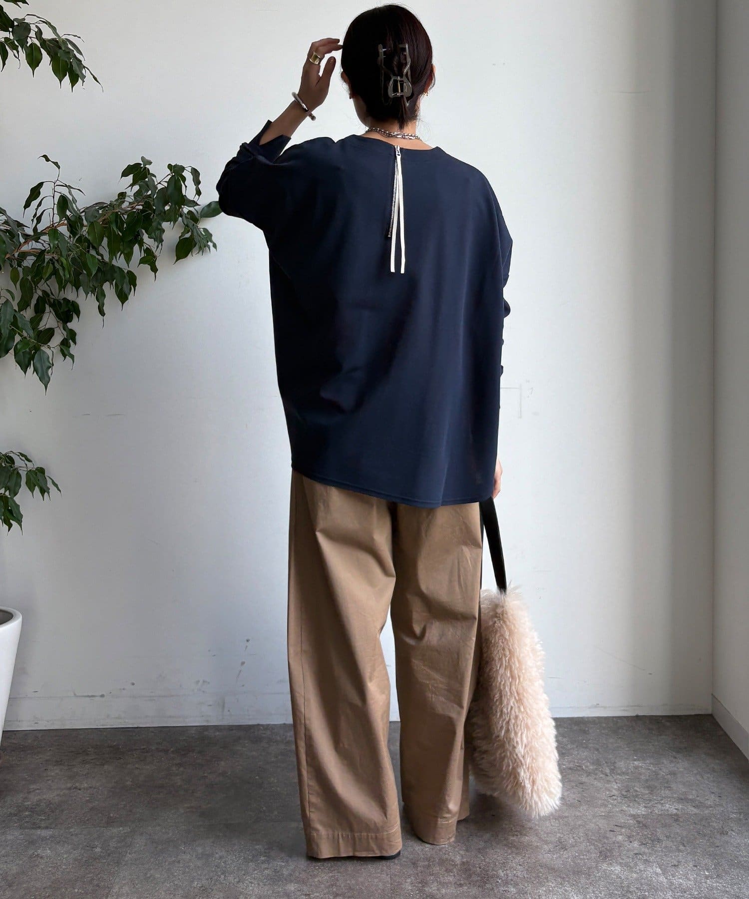 身体のラインを拾わずに着られるポンチョのデザインなので、リラクシーに着ていただけます。