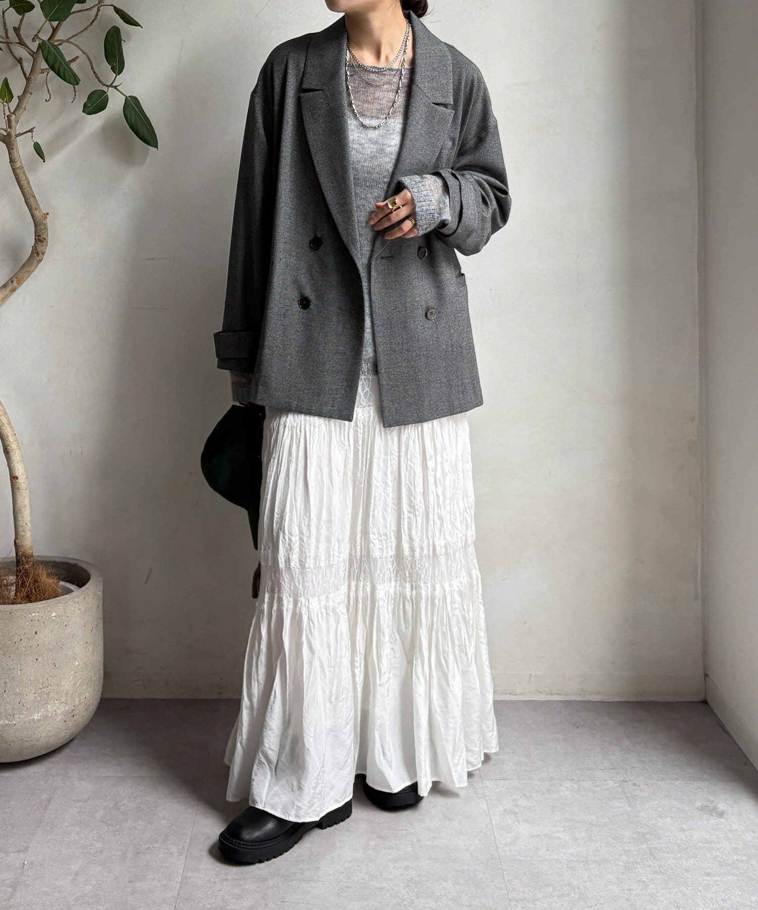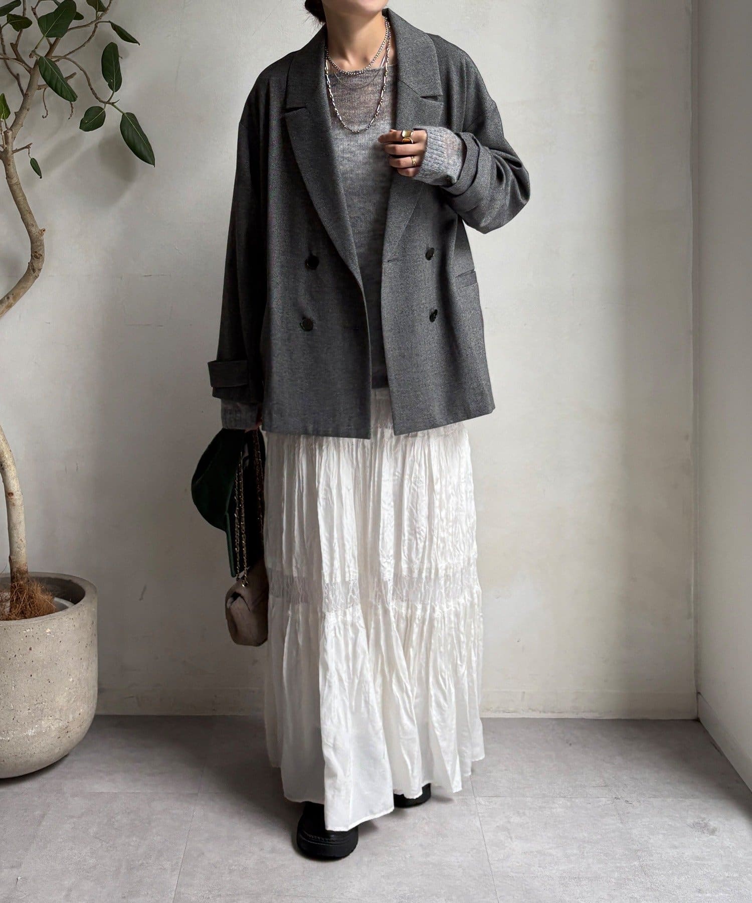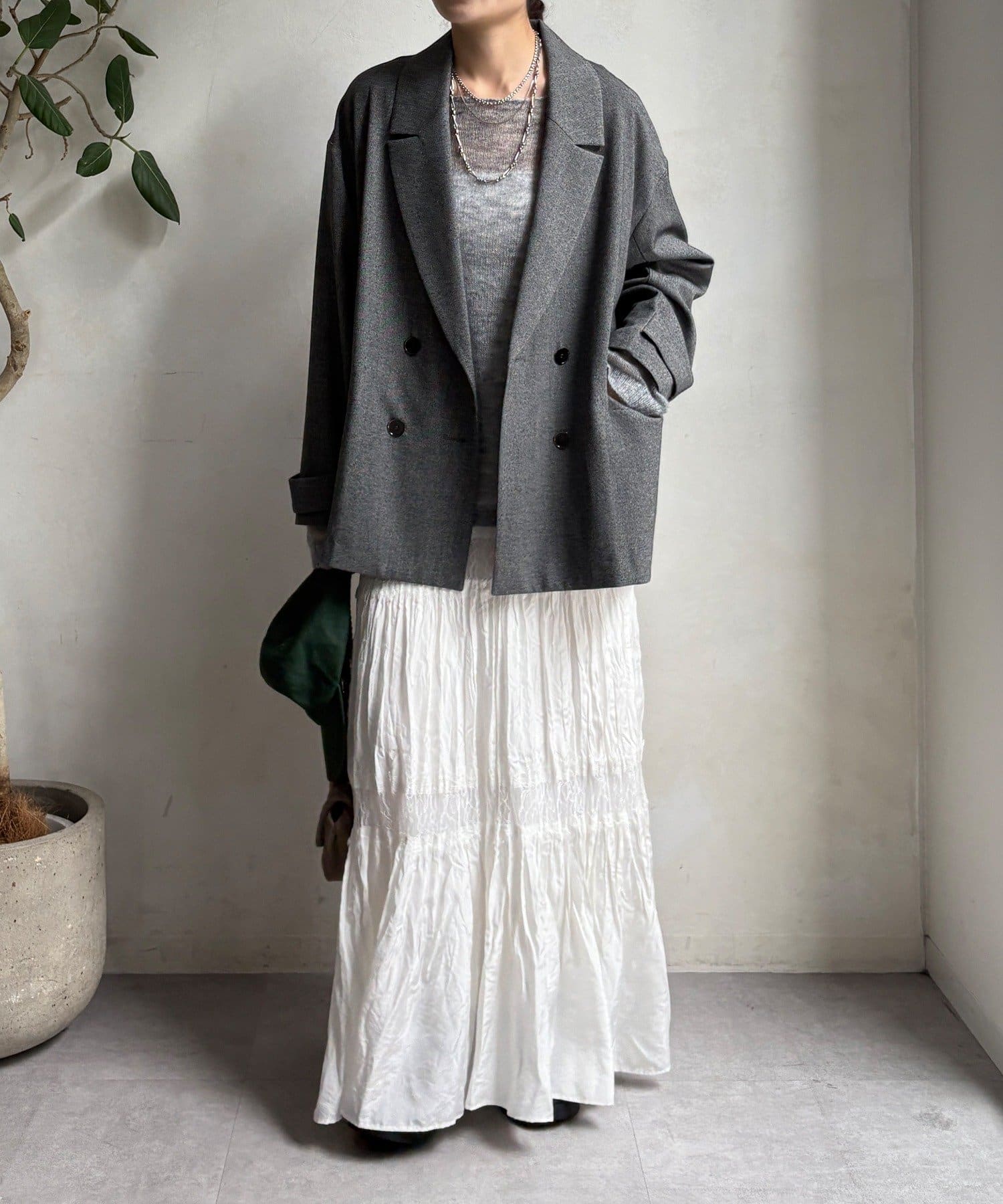 ※着用、お取り扱いの際は、商品についている品質表示とアテンションタグを必ずご確認下さい。シンプルなTシャツやタンクトップに合わせるだけで、こなれたレイヤードスタイルが完成。