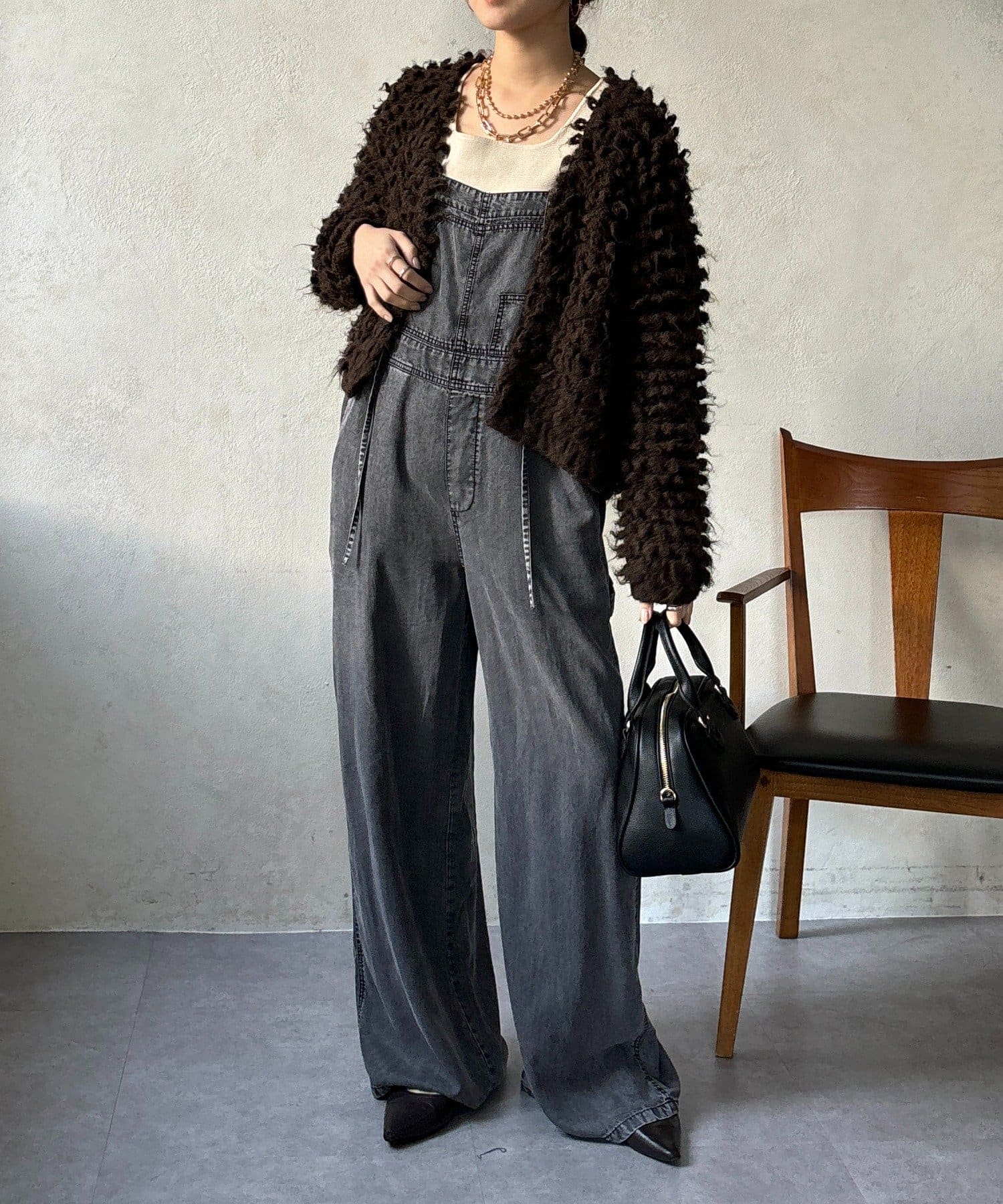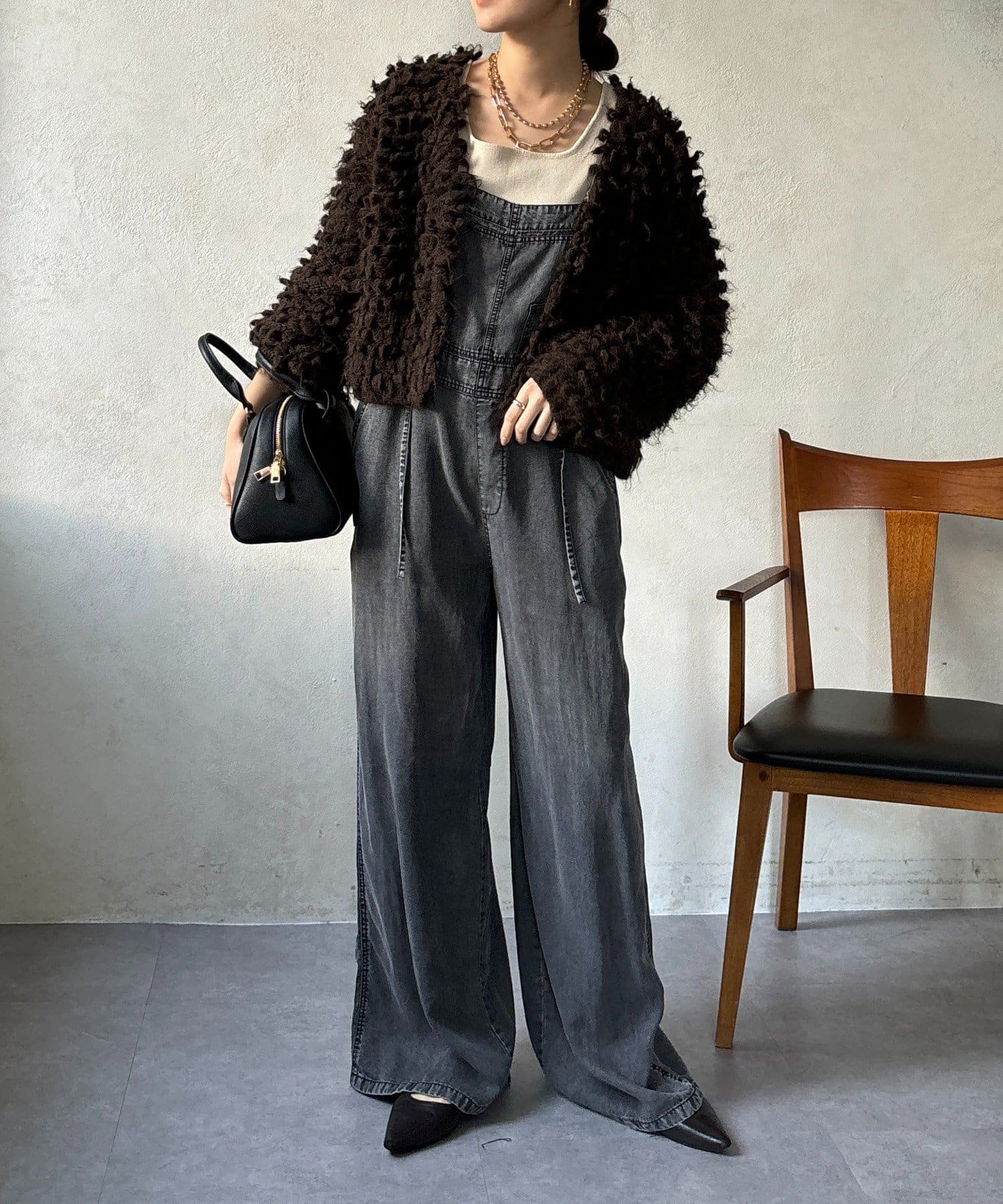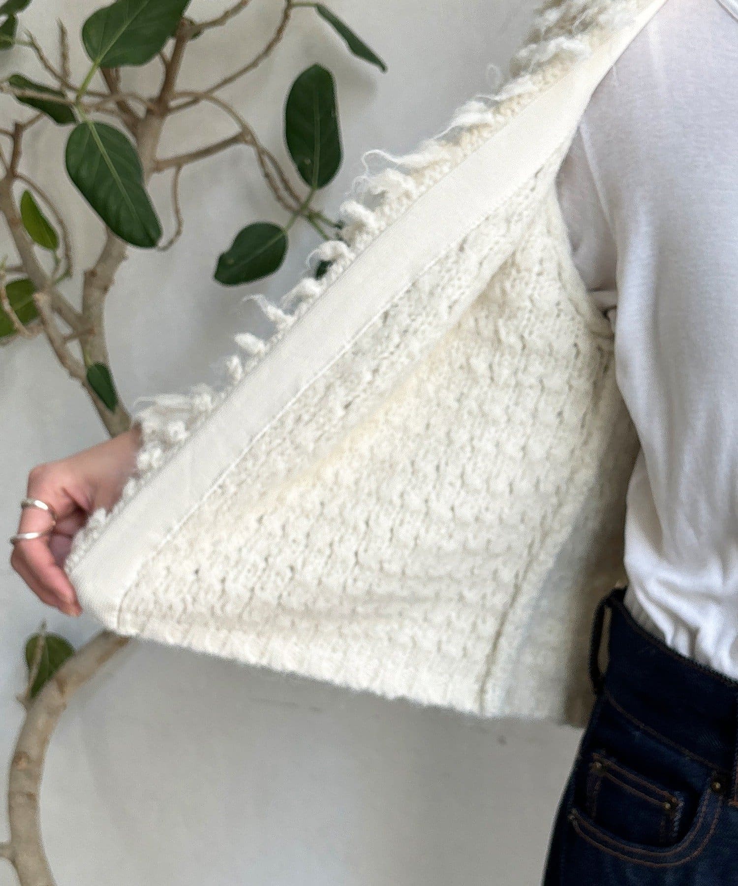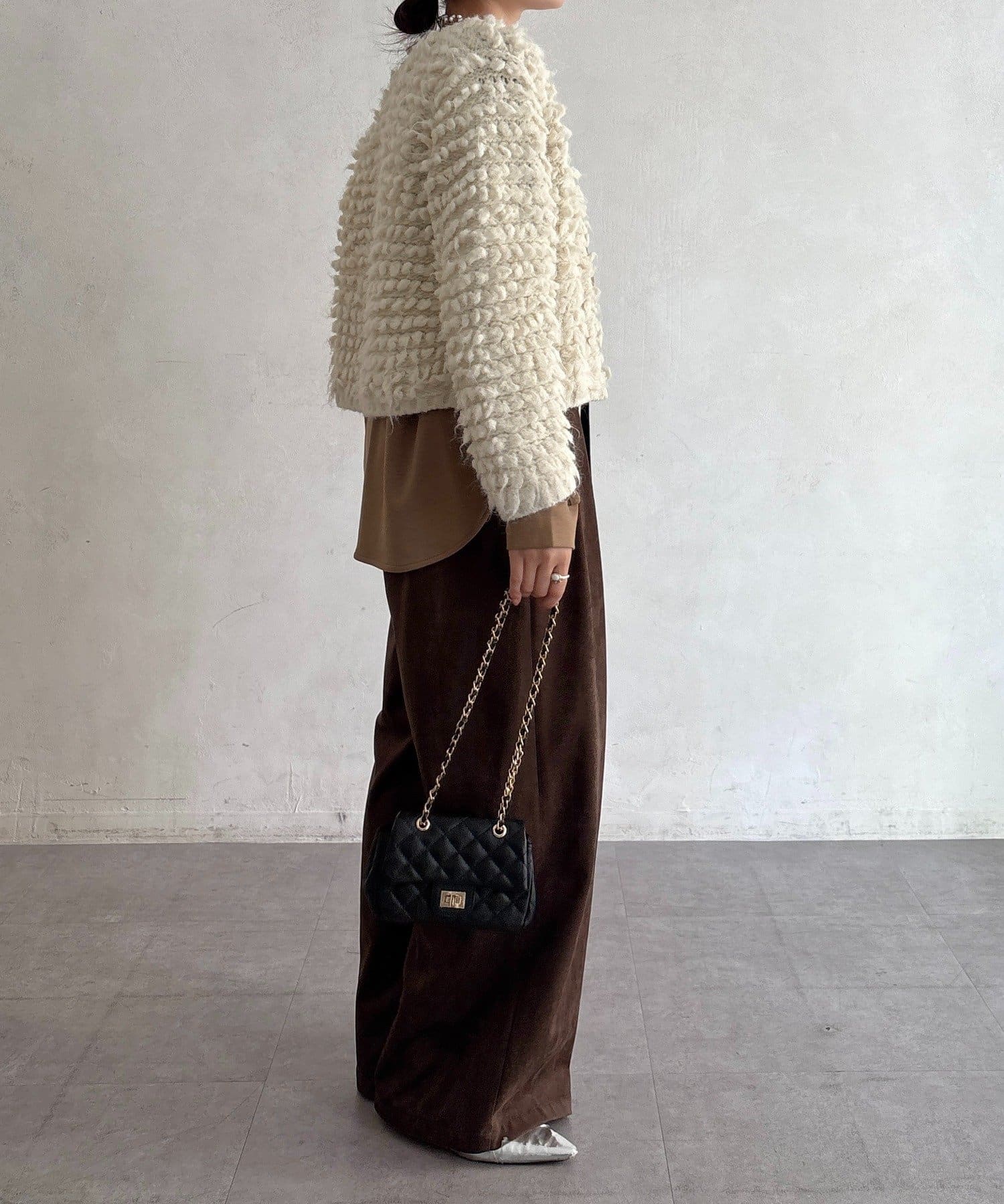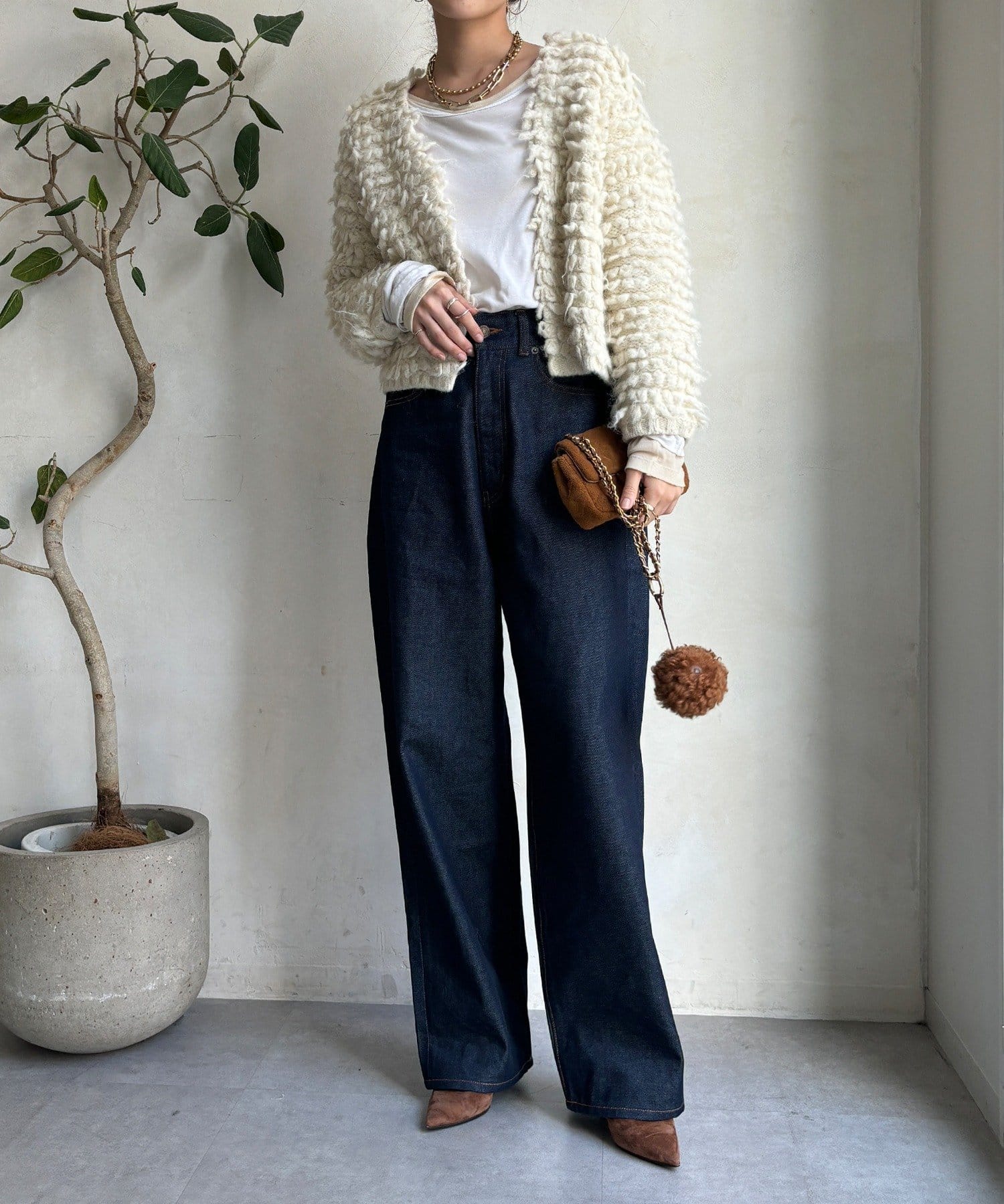 もこもこと愛らしい表面感がポイントのニットジャケット。