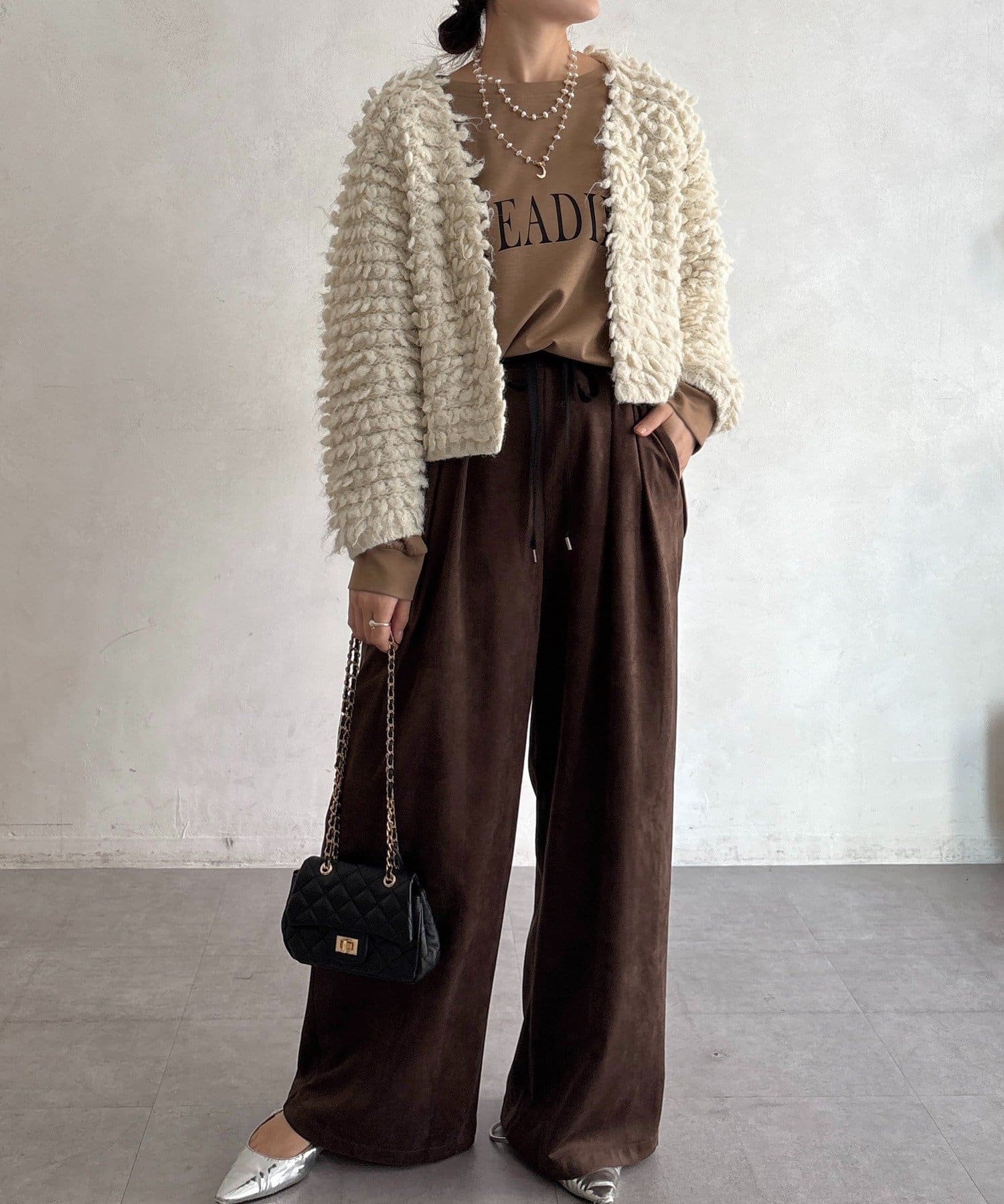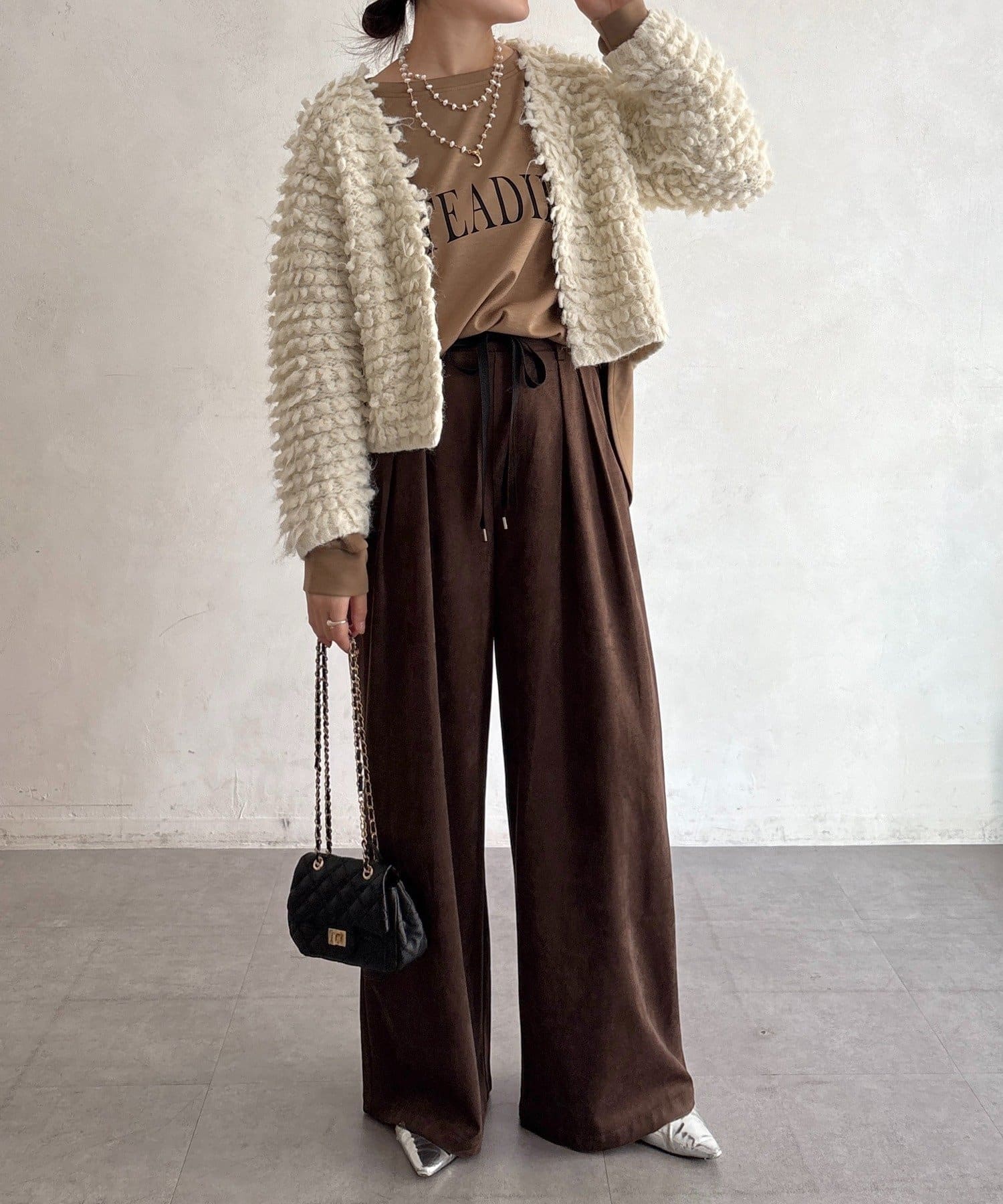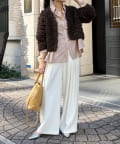 カジュアルなパンツからすこしキレイ見えするボトムとも幅広く合わせていただけますよ。