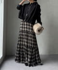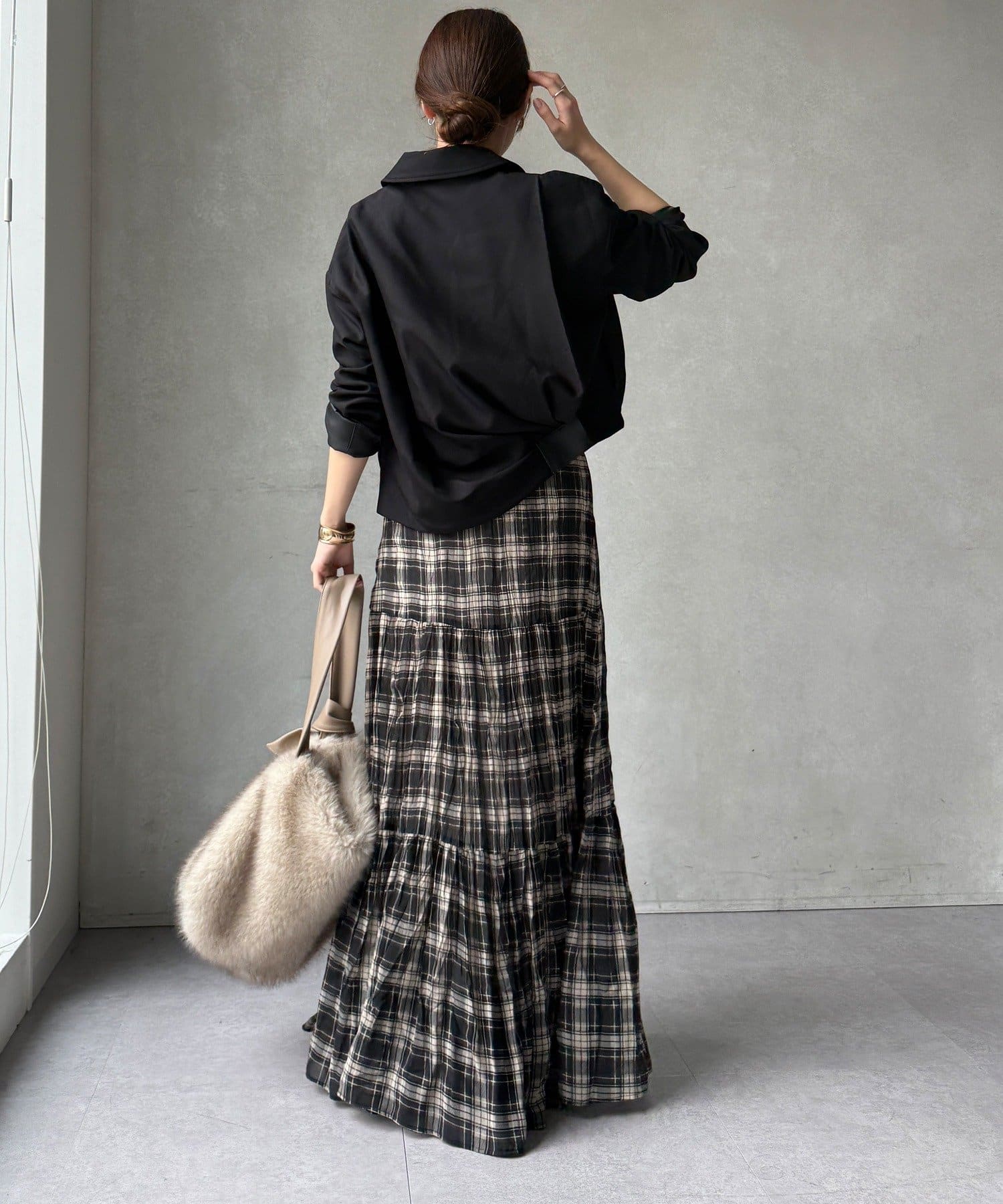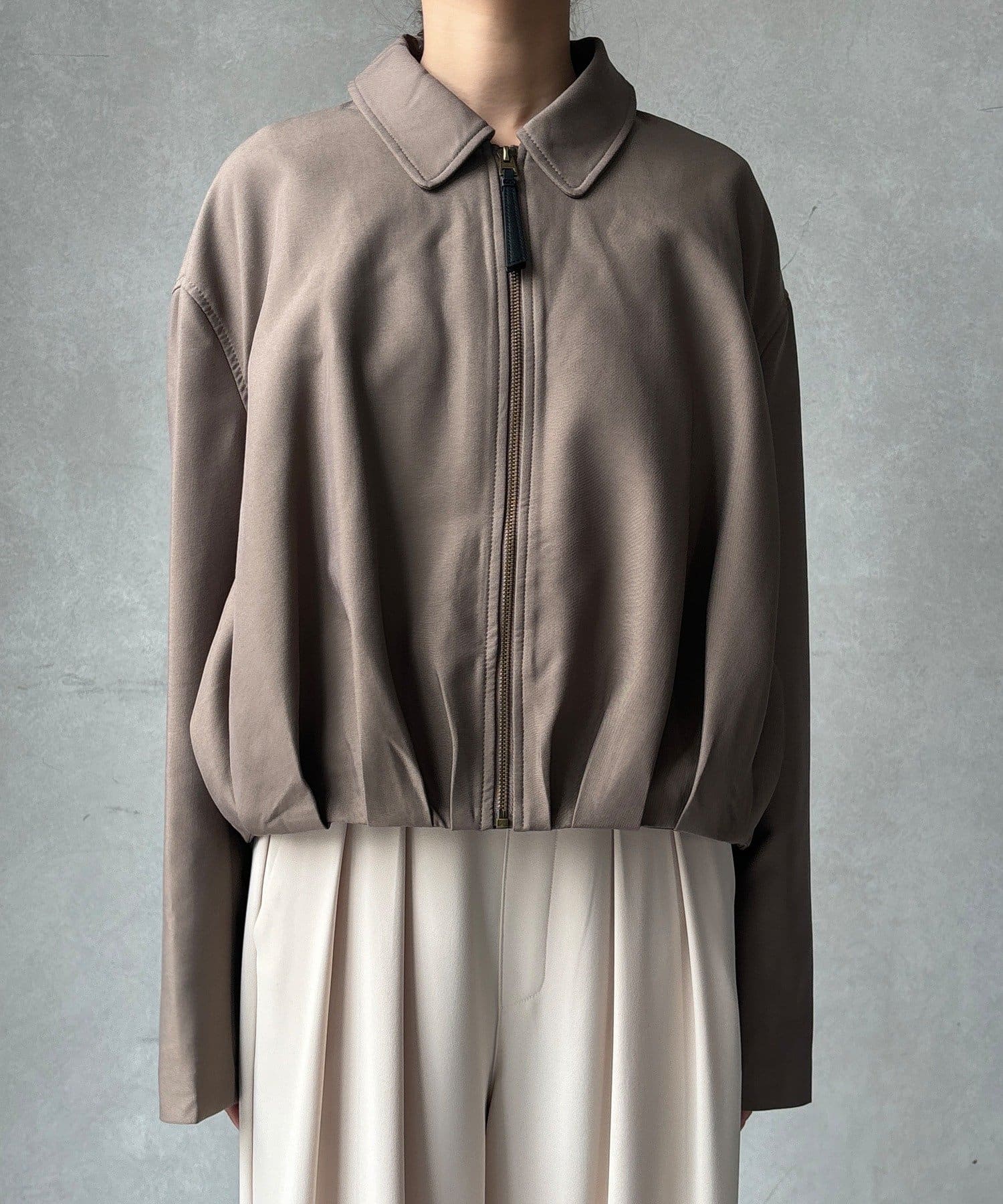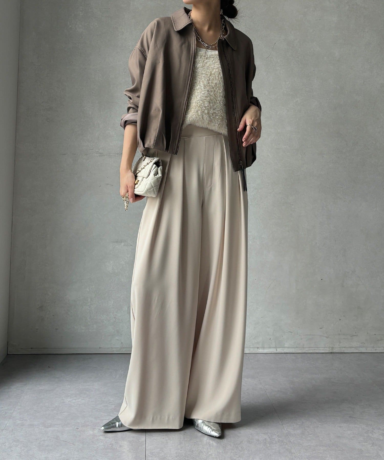 深めのタックを入れることで、ふんわりとしたバルーンシルエットを生み出し、女性らしい丸みをプラスしています。