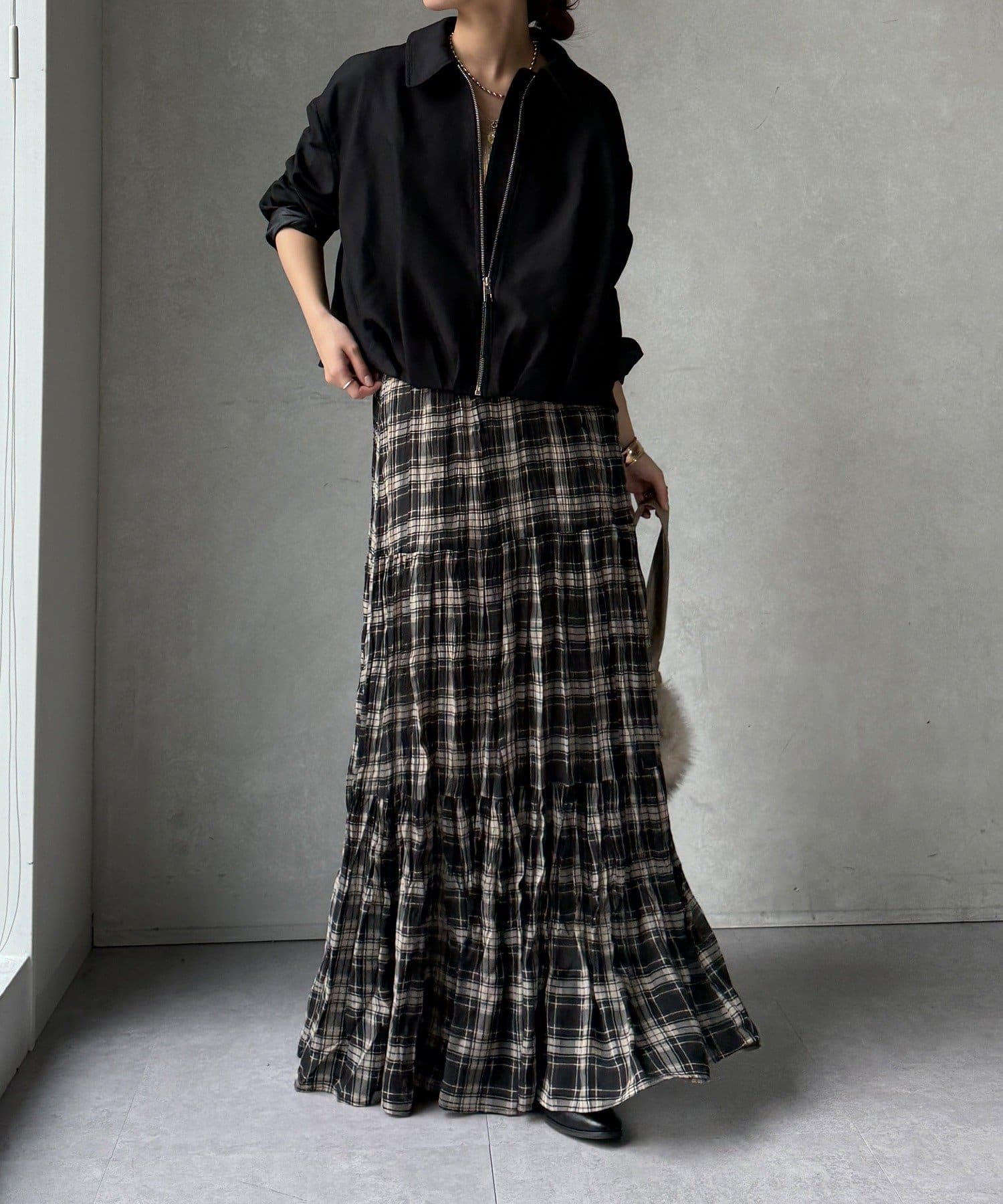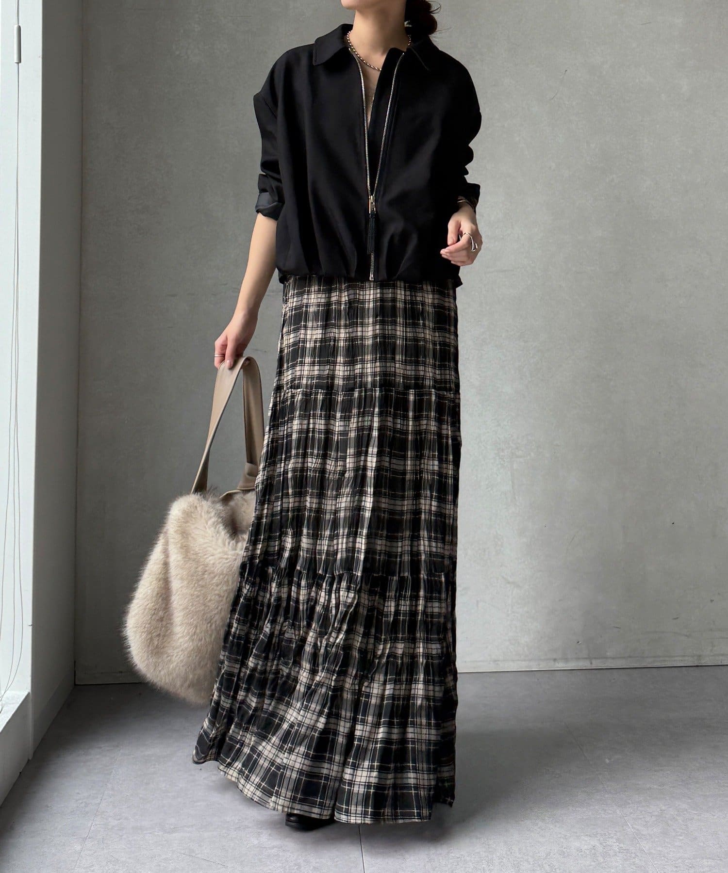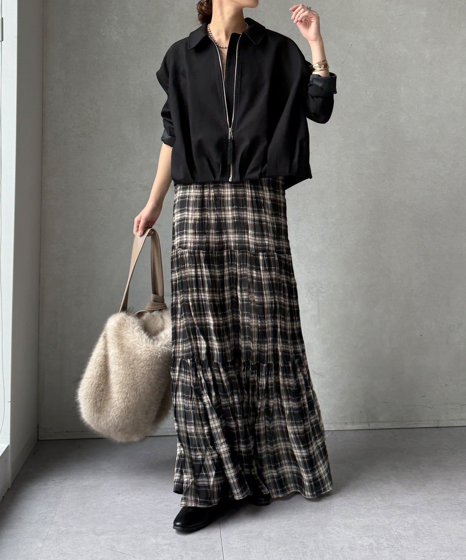 スカートやワンピースと合わせて、フェミニンに着こなすのもおすすめです。