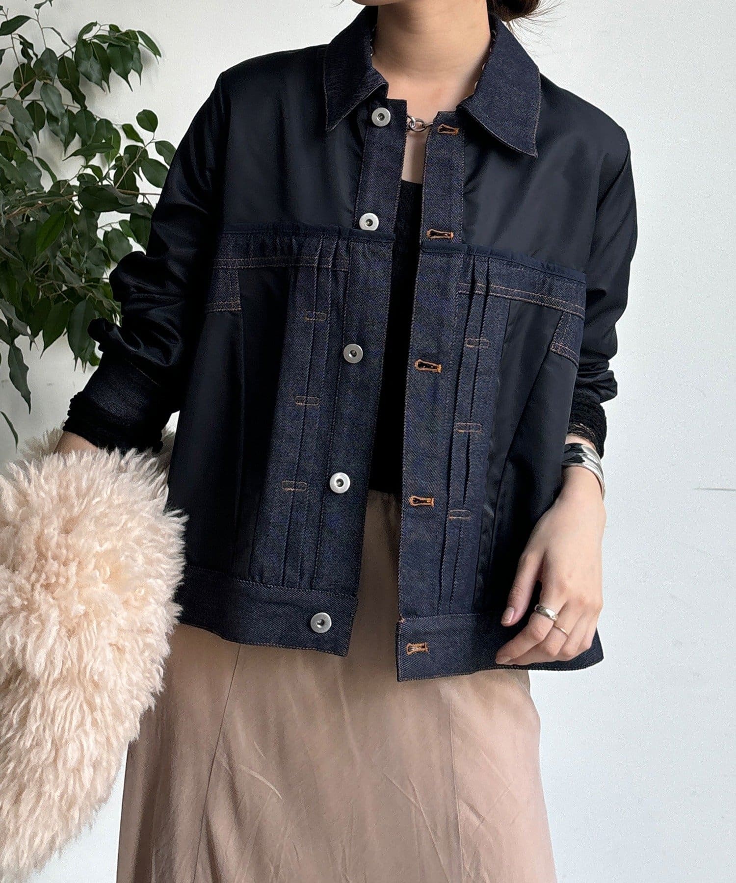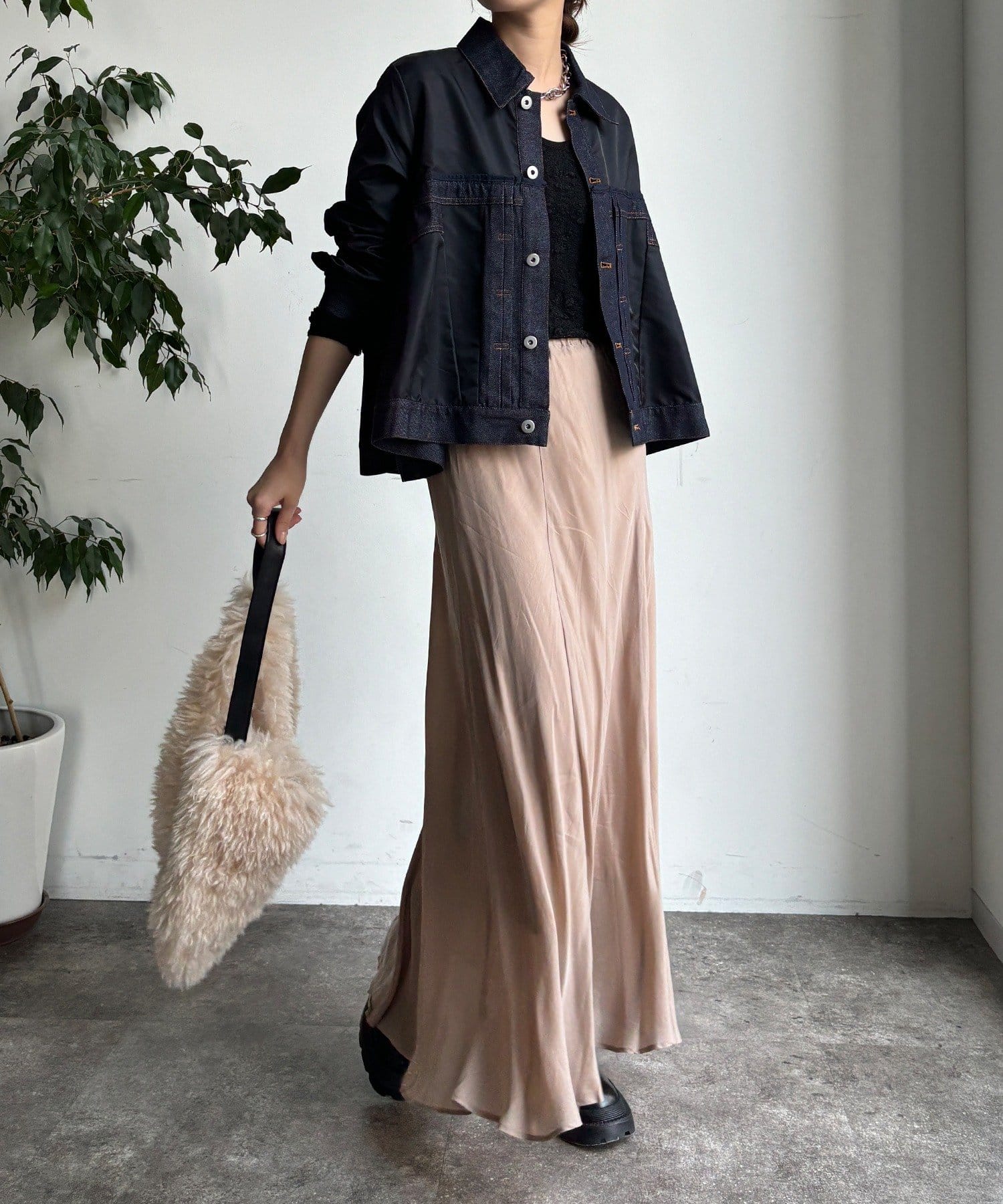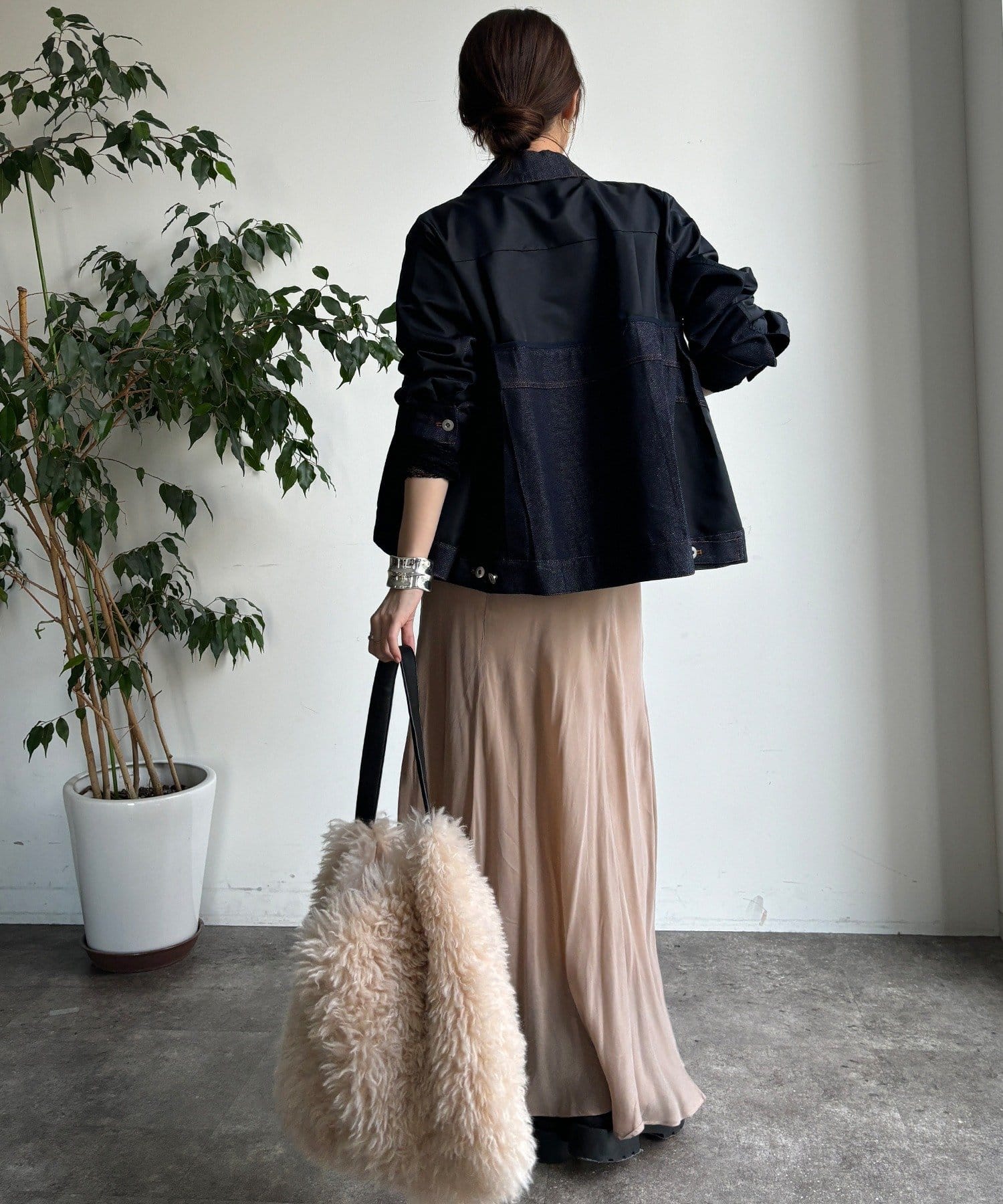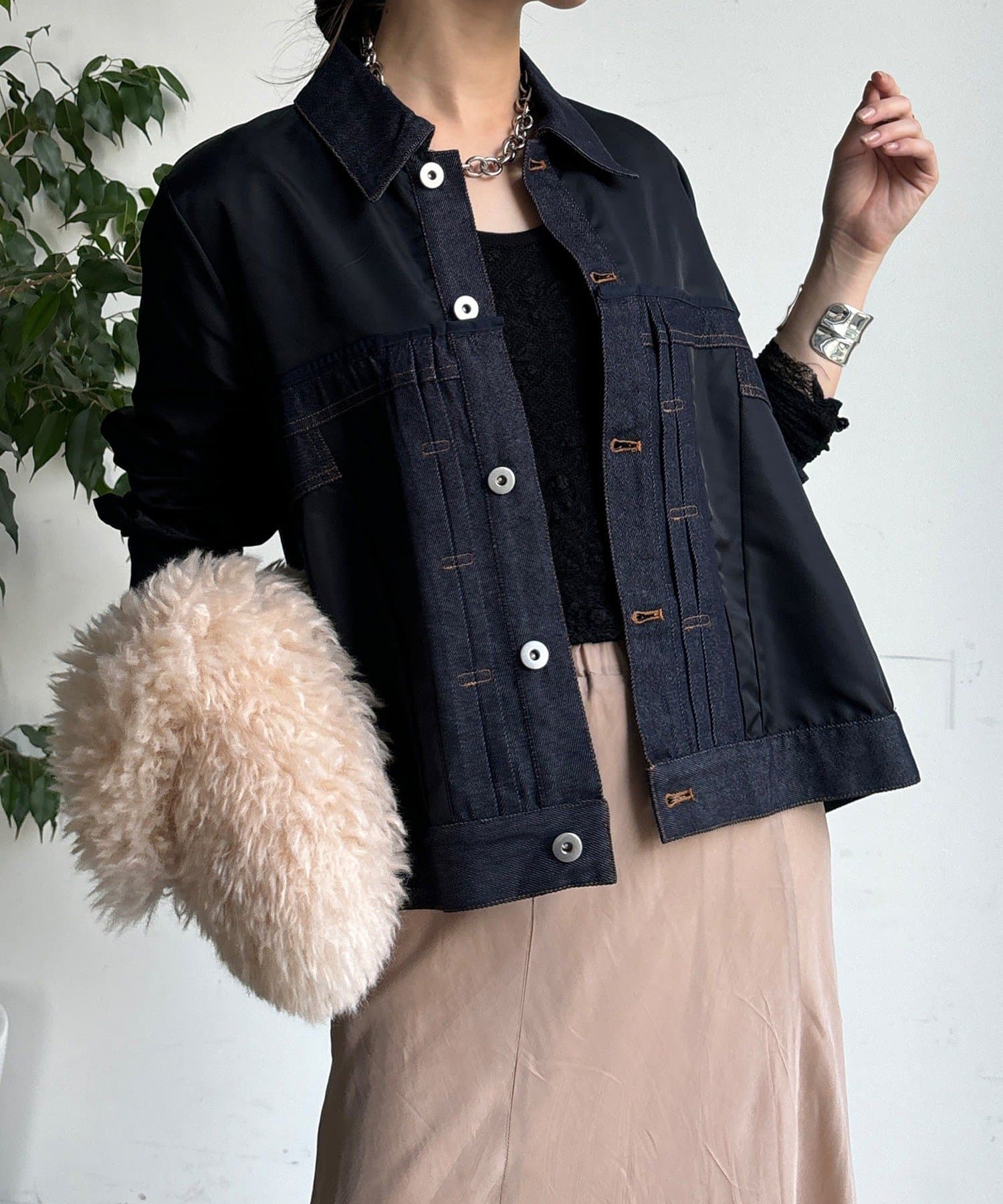デニム素材のカジュアルさと、異素材の持つ上品さを絶妙なバランスで組み合わせました。