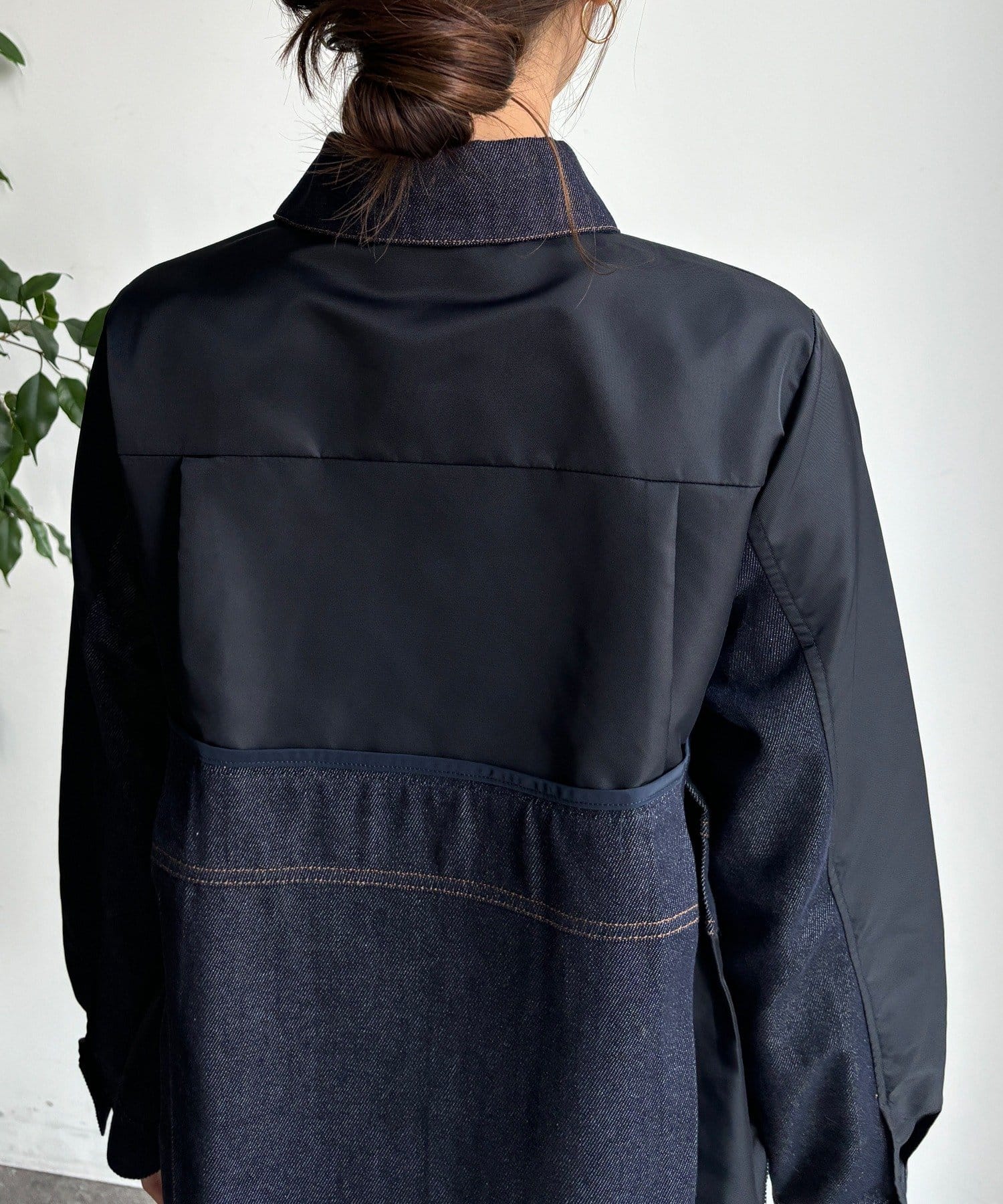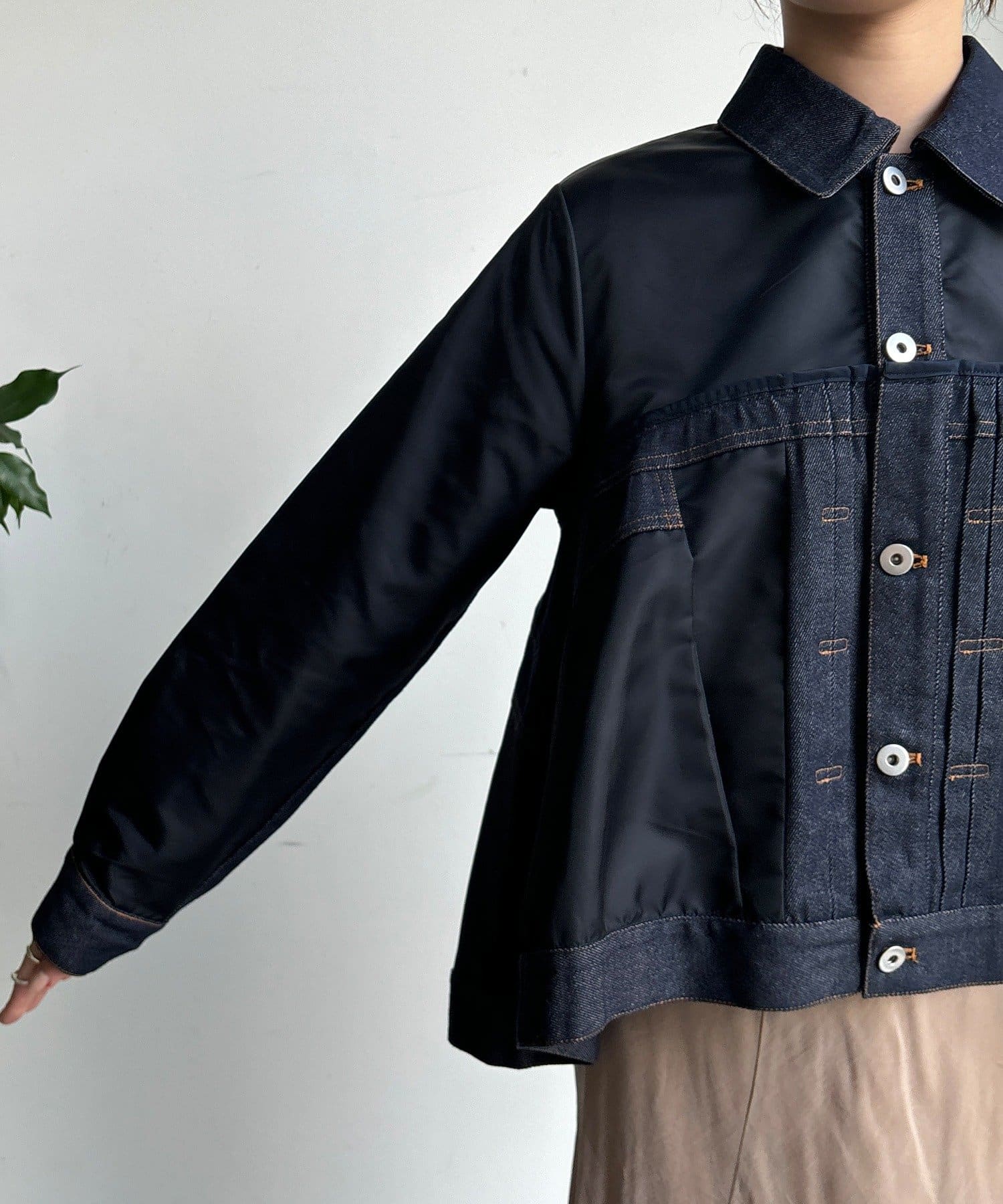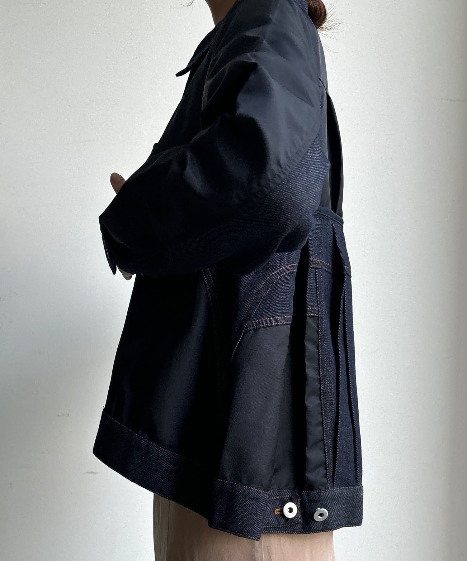 デニム素材のカジュアルさと、異素材の持つ上品さを絶妙なバランスで組み合わせました。