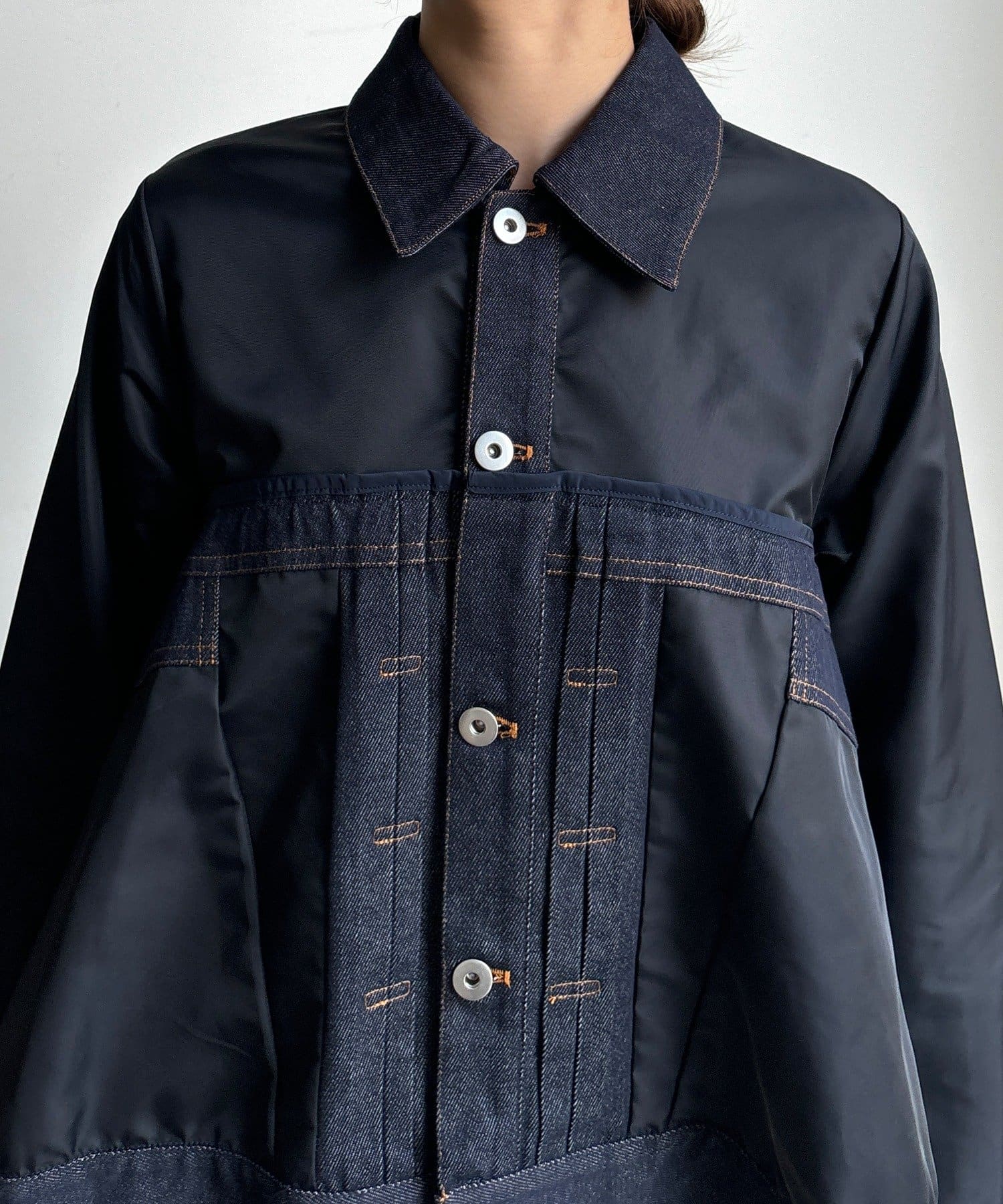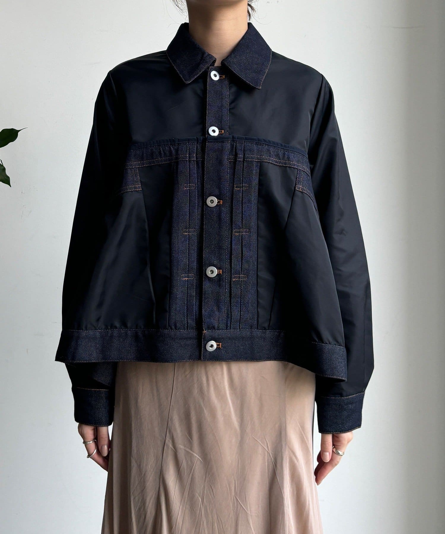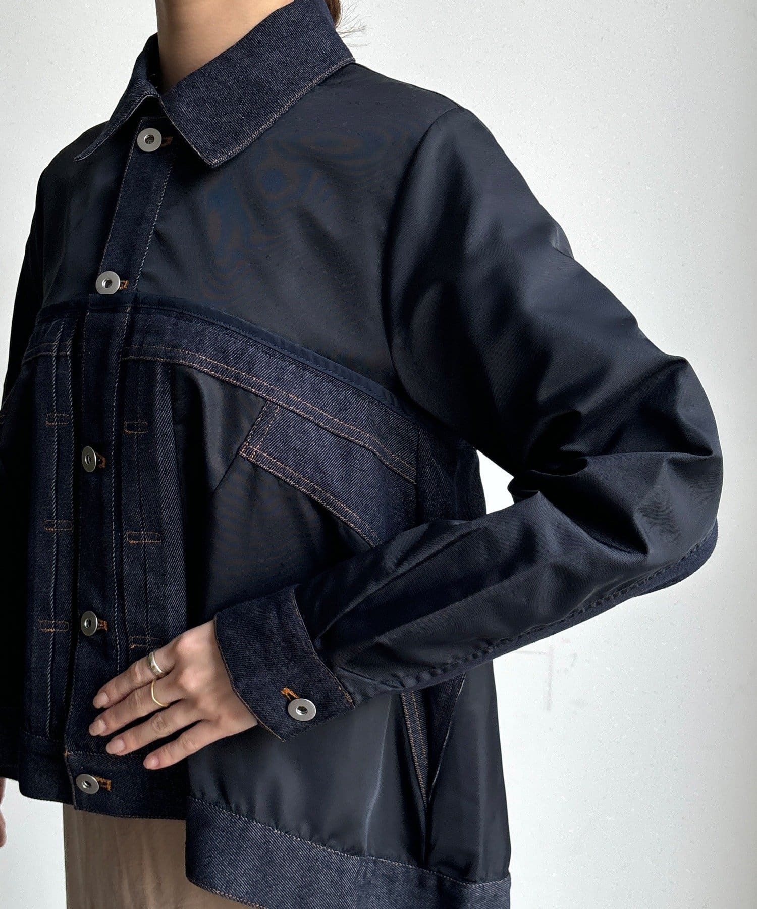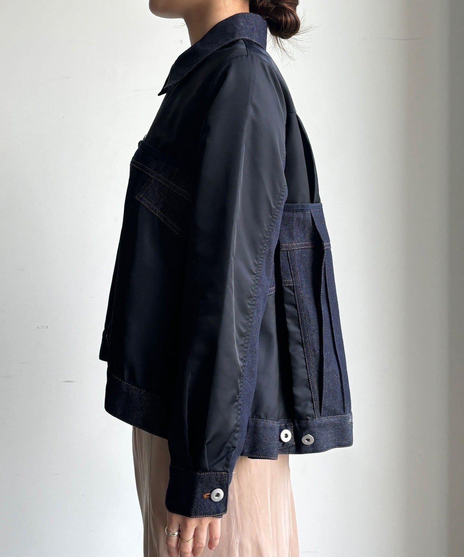 デニム素材のカジュアルさと、異素材の持つ上品さを絶妙なバランスで組み合わせました。