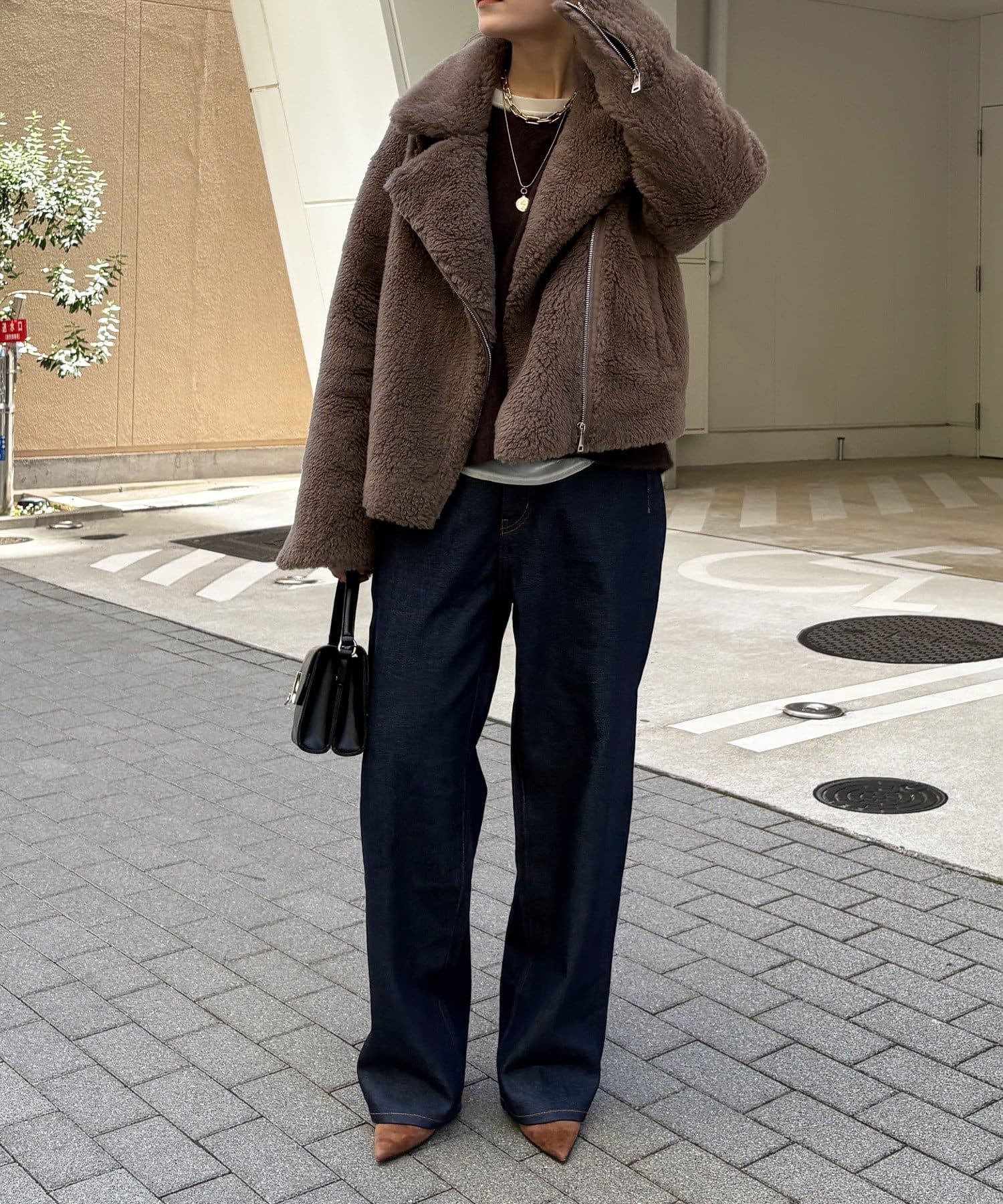 前を閉じても開けてもバランスよくキマるジップ仕様で、防寒性とデザイン性の両立も◎
