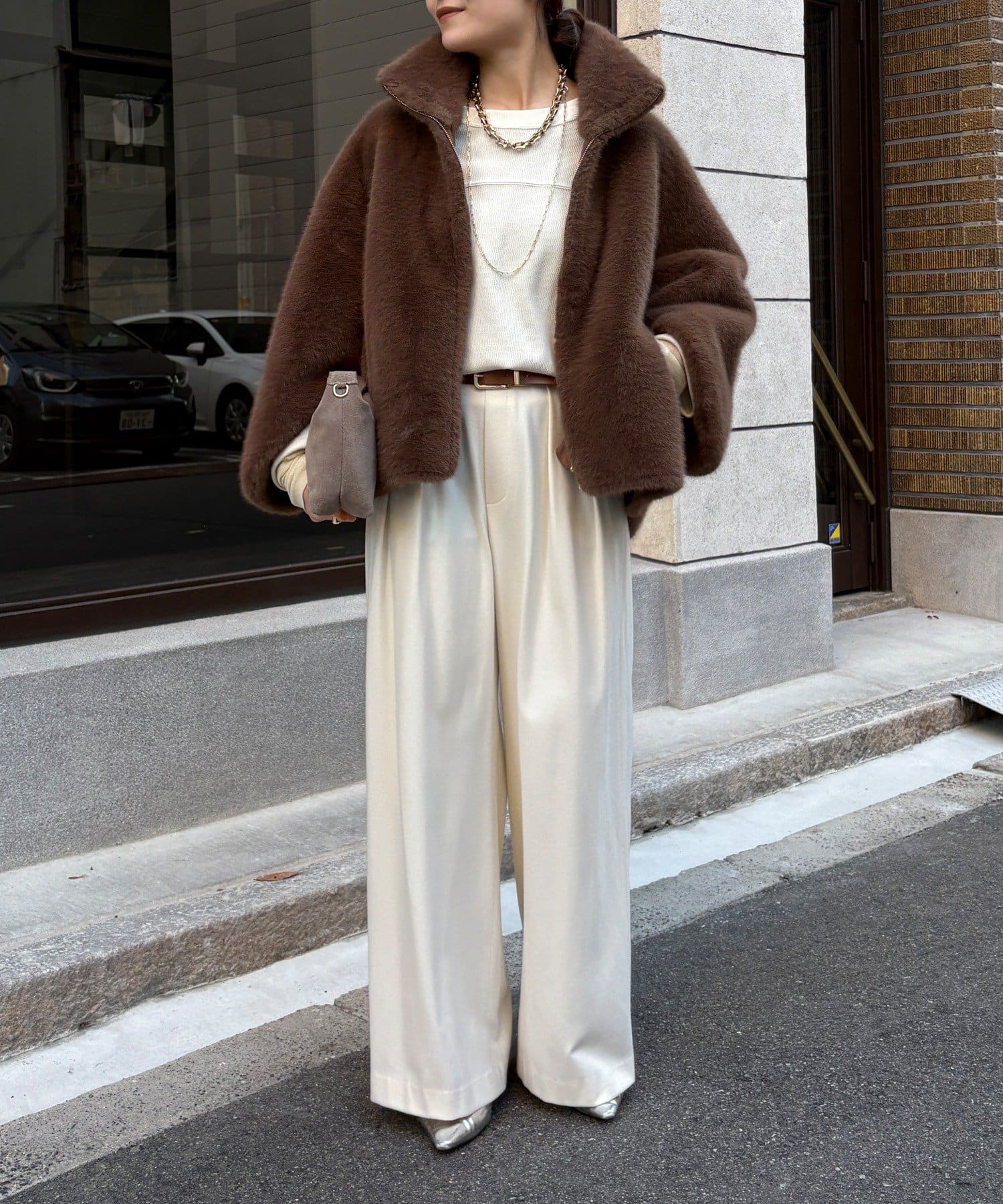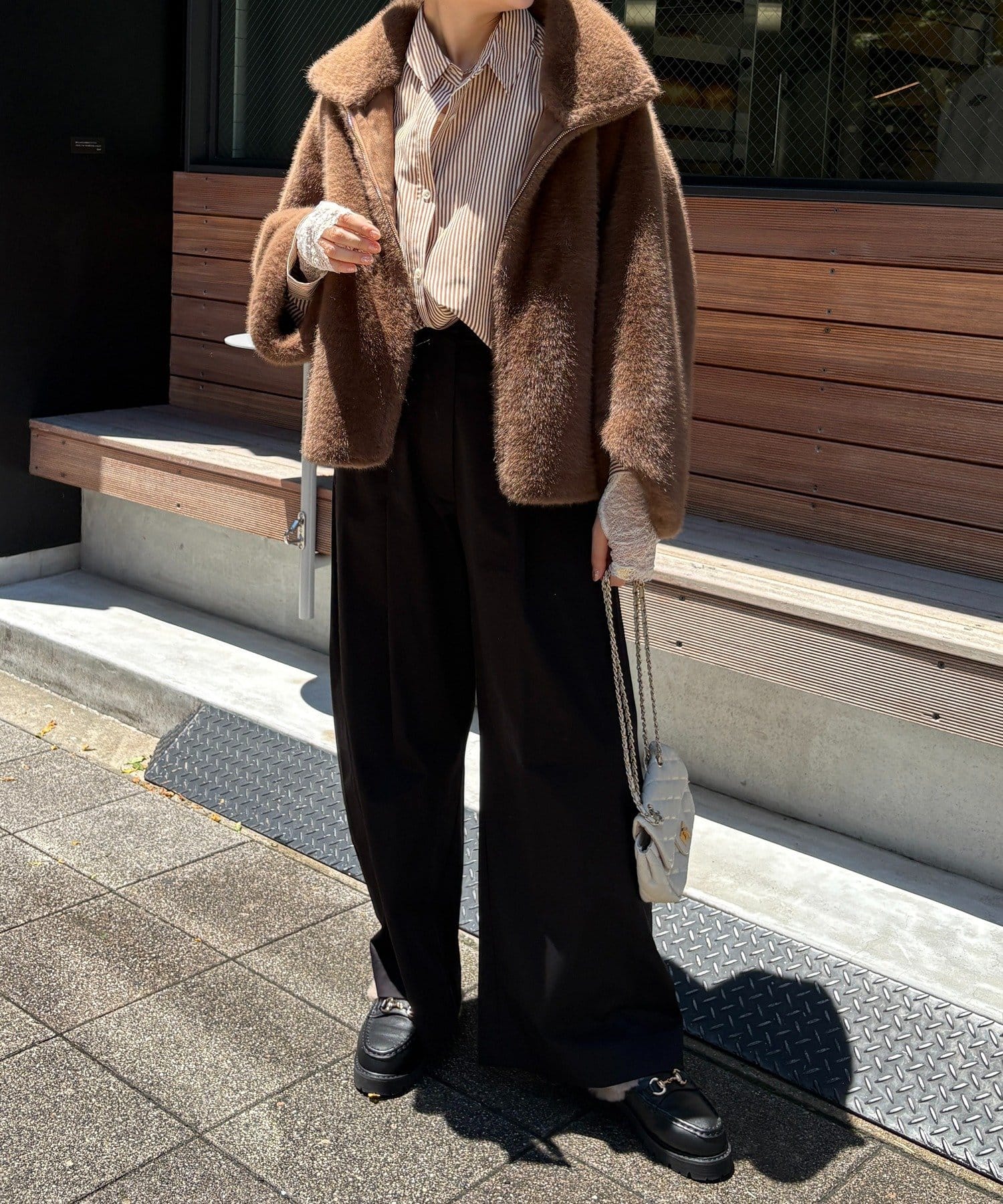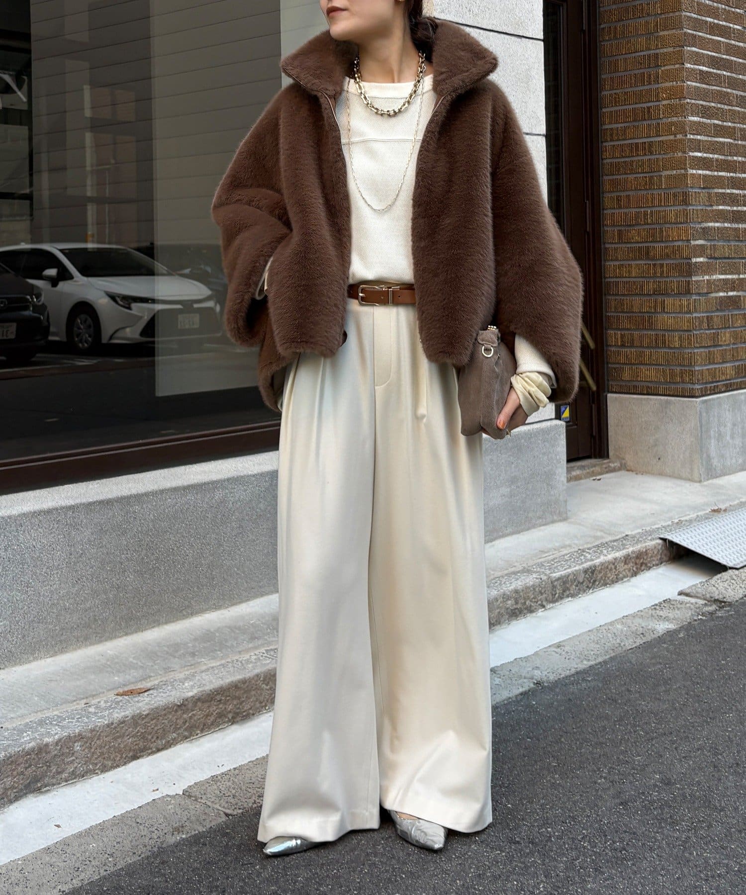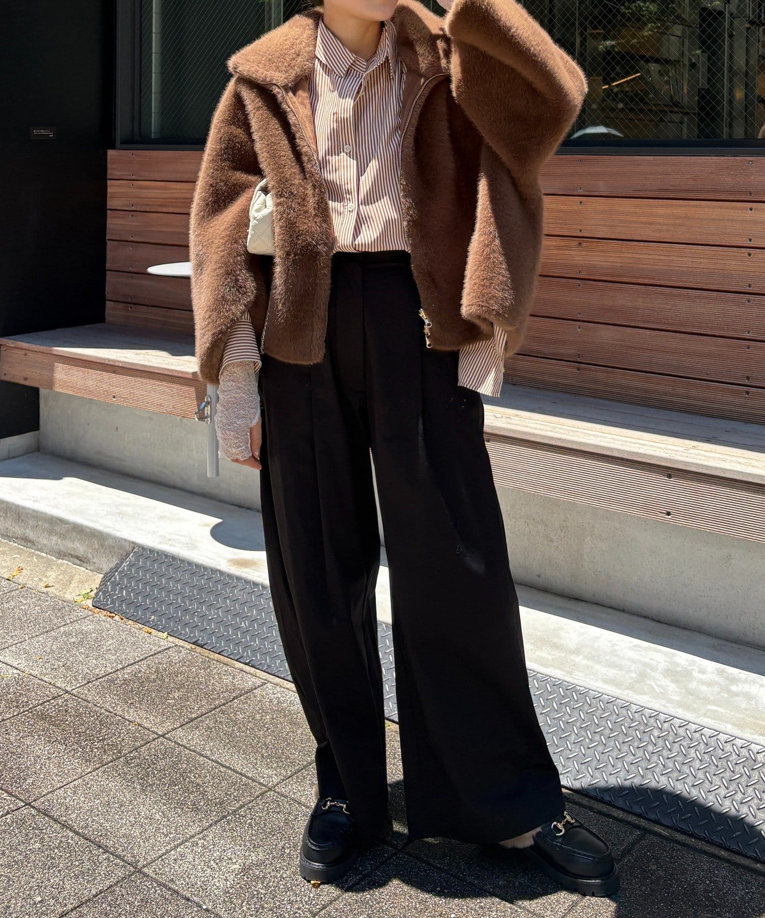 身幅がゆったりとしたシルエットなので、厚手のニットにも合わせやすく真冬にも大活躍間違いなしです!