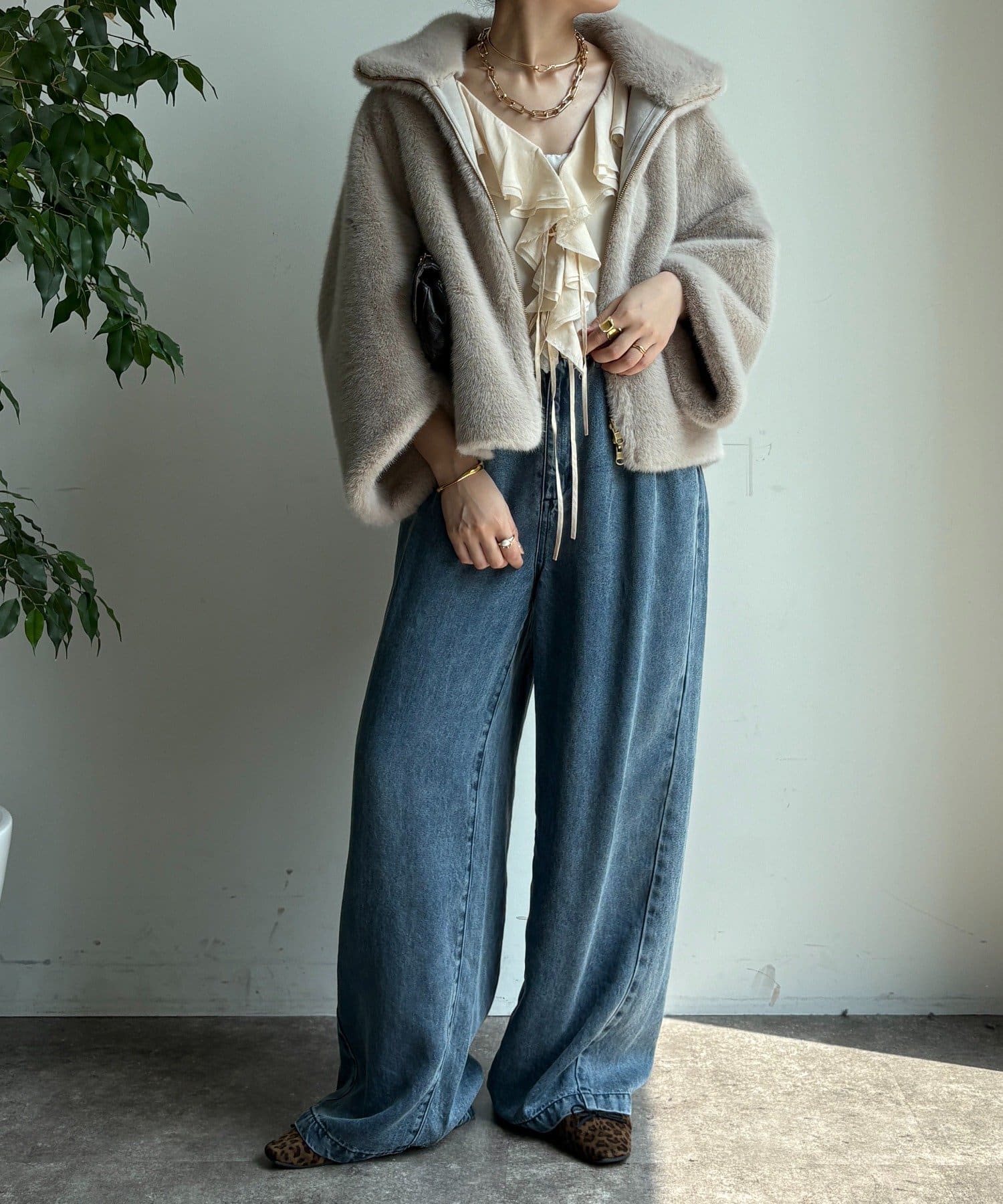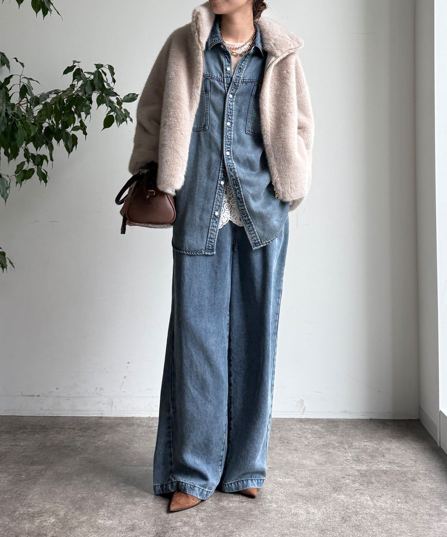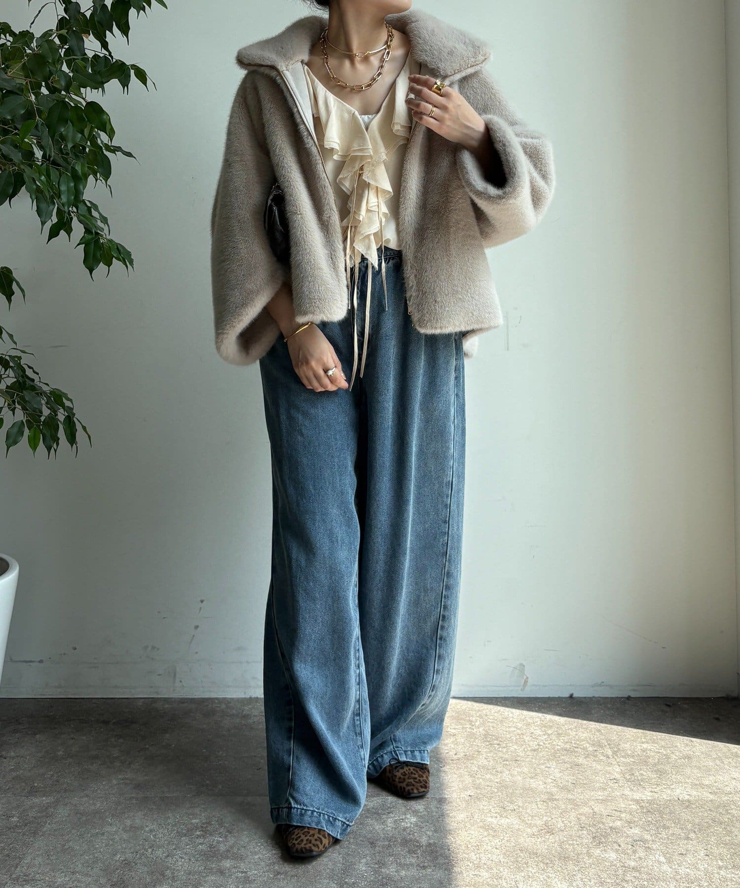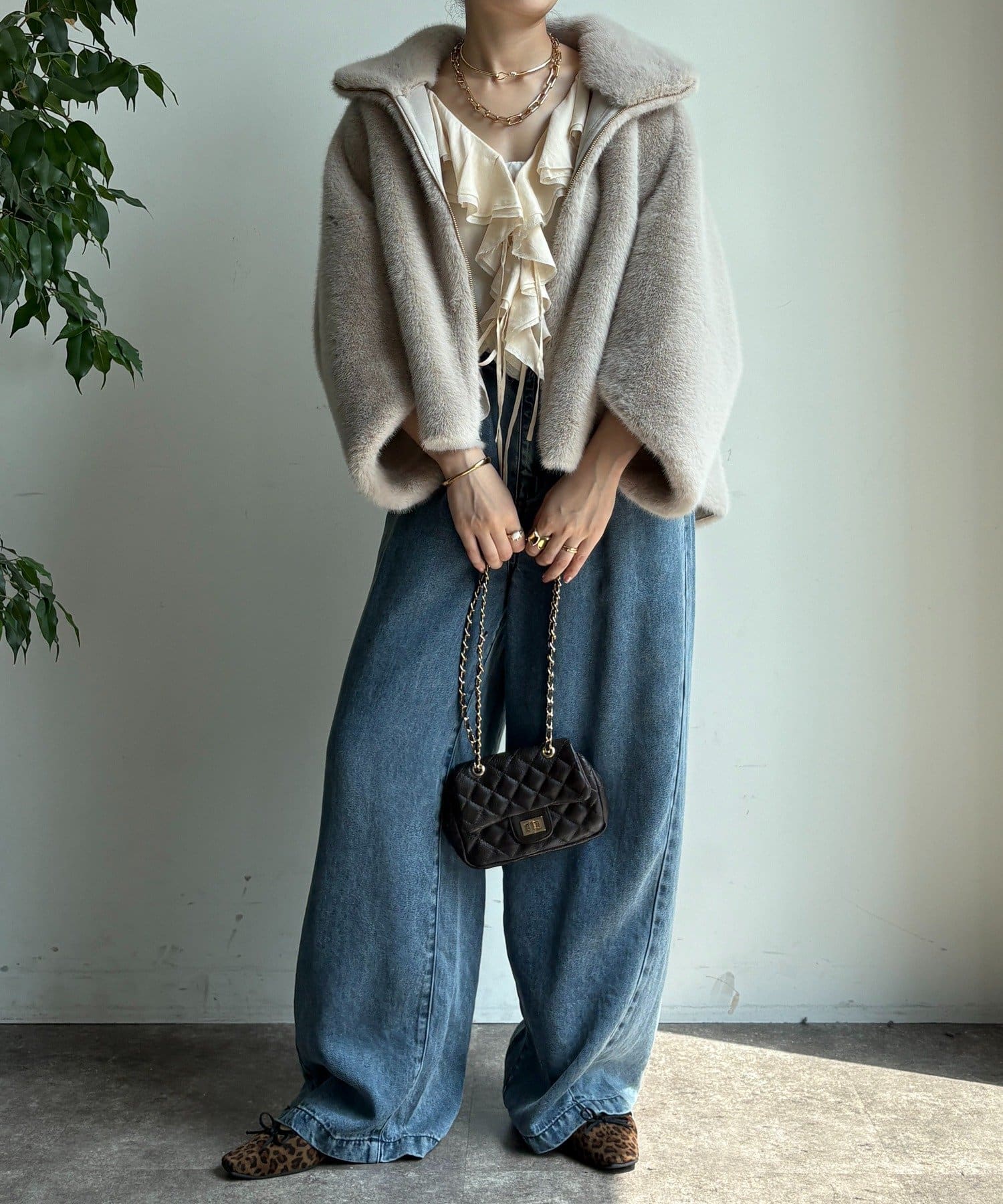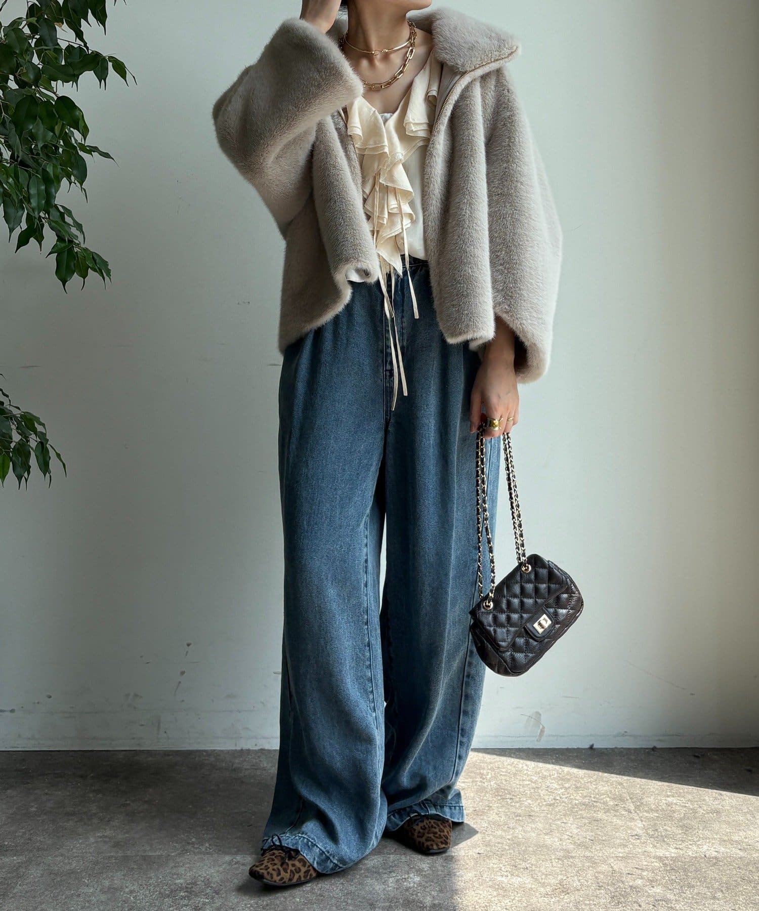身幅がゆったりとしたシルエットなので、厚手のニットにも合わせやすく真冬にも大活躍間違いなしです!