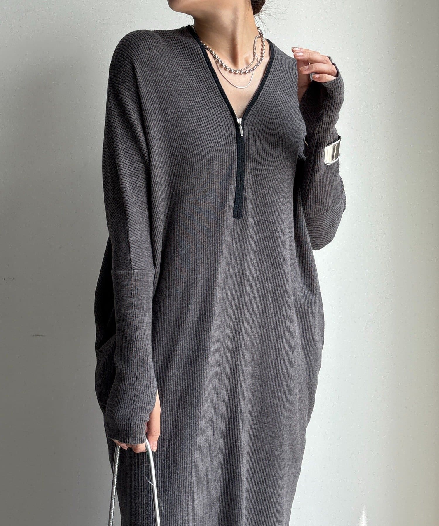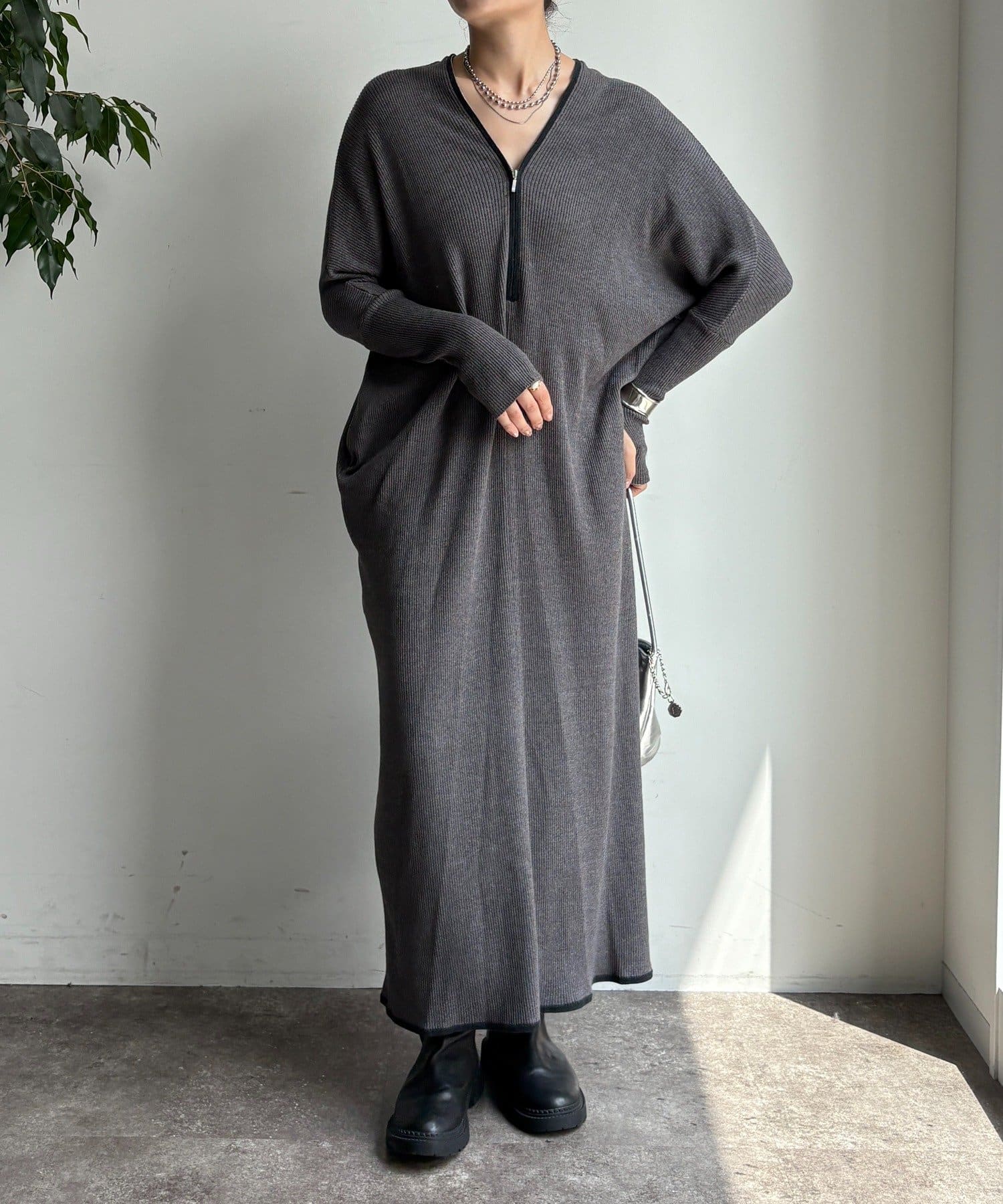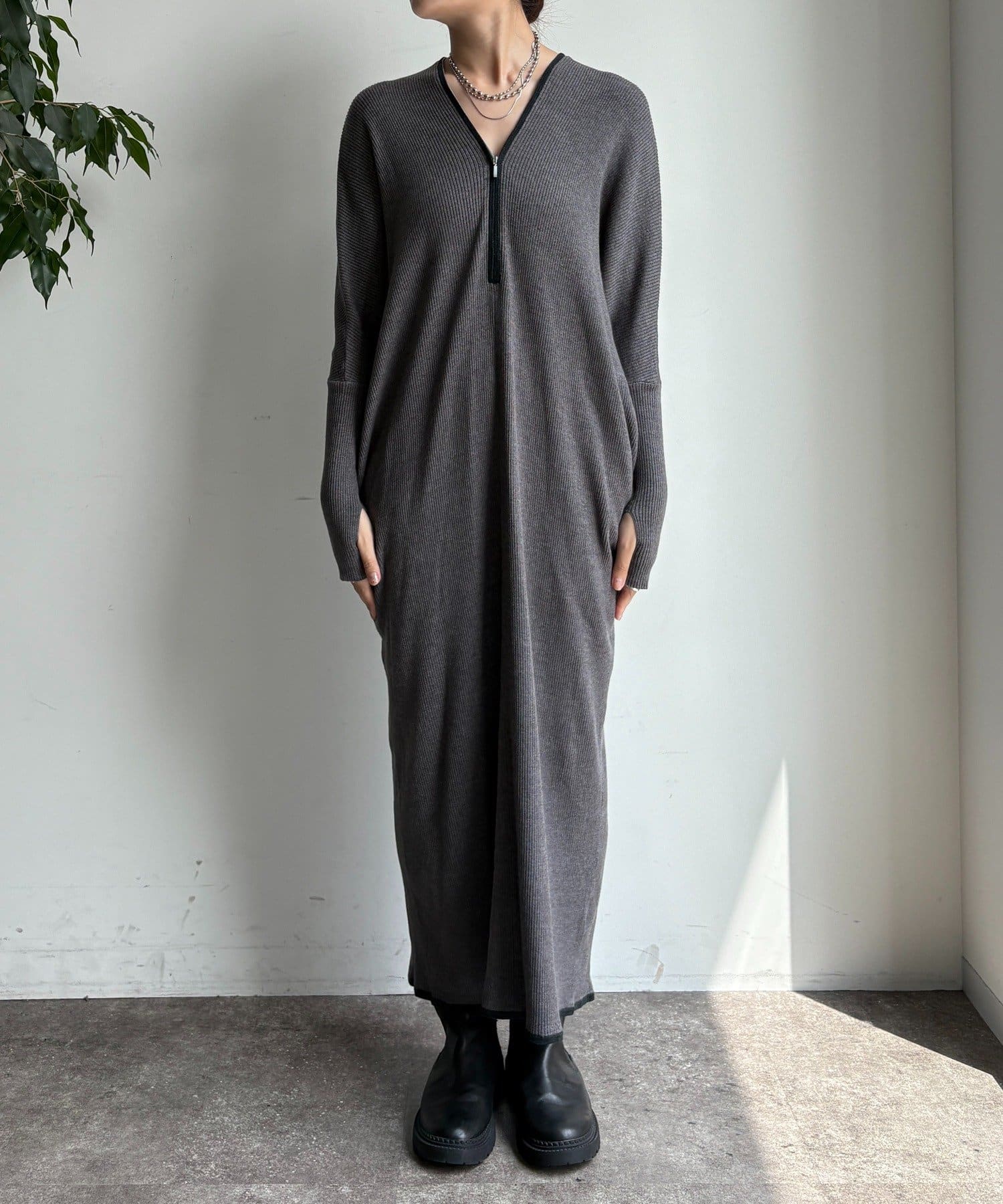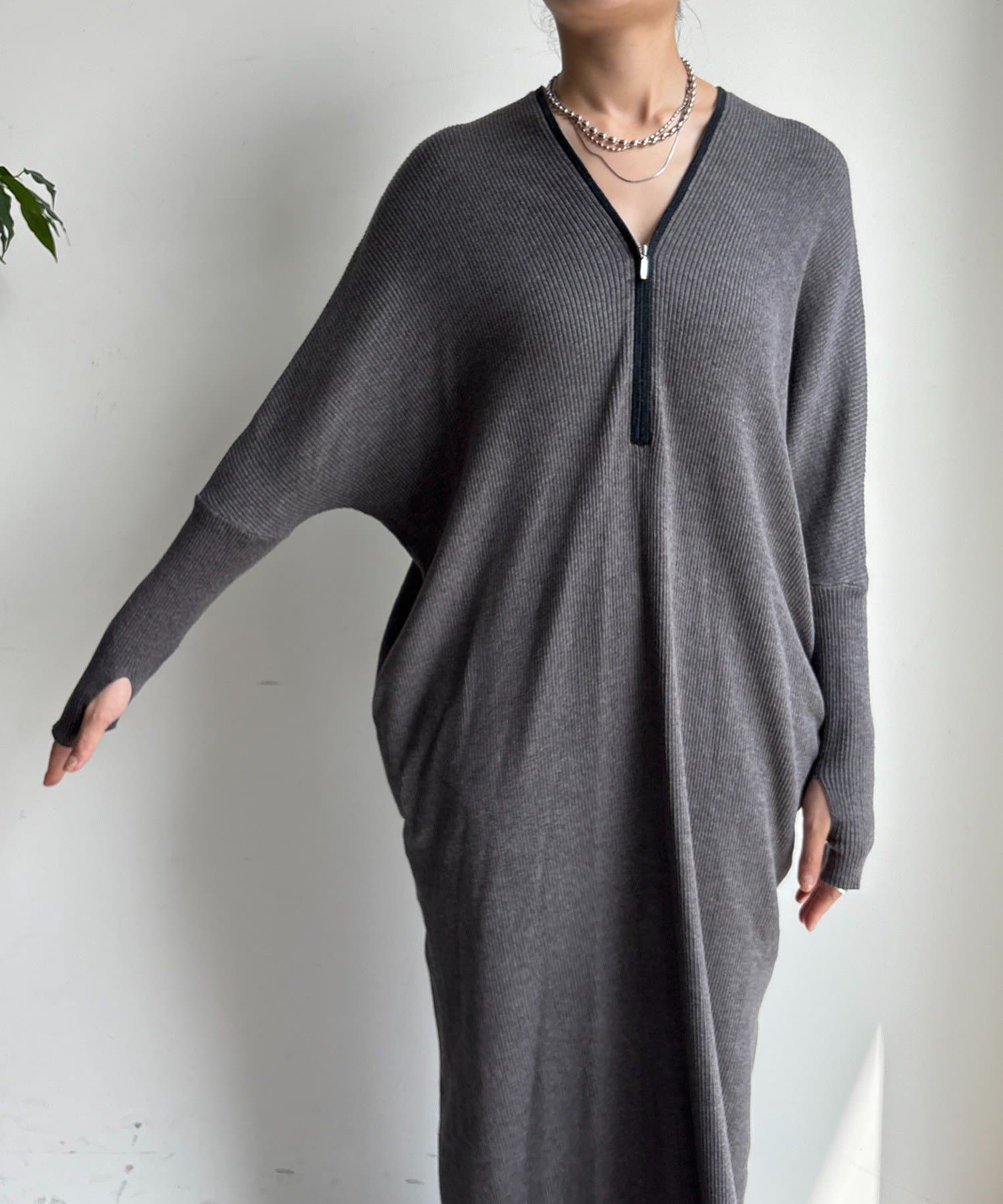 【WEB限定】フロントジップリブニットワンピース