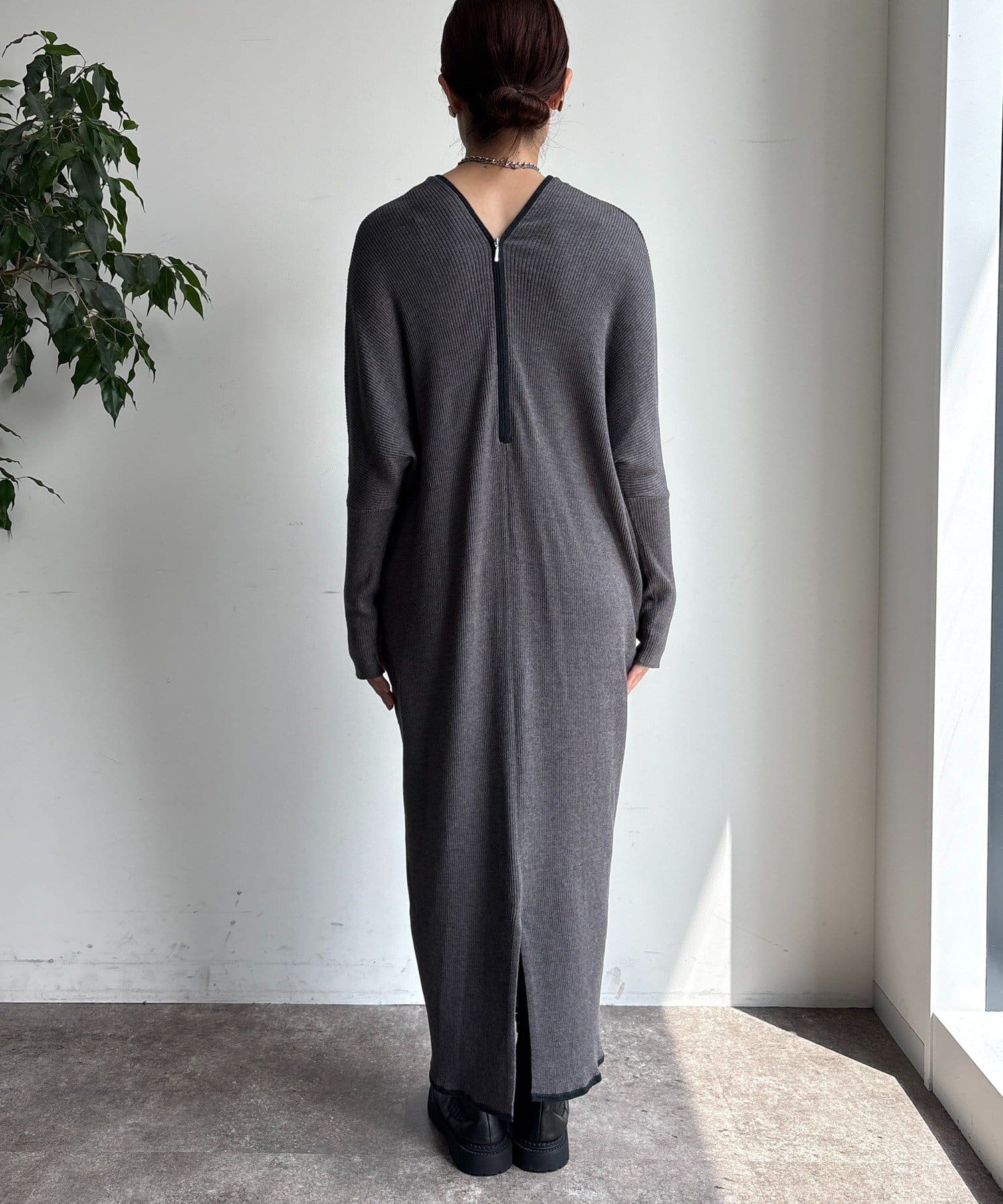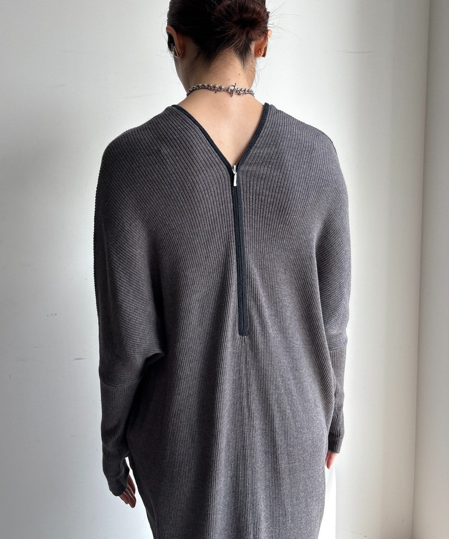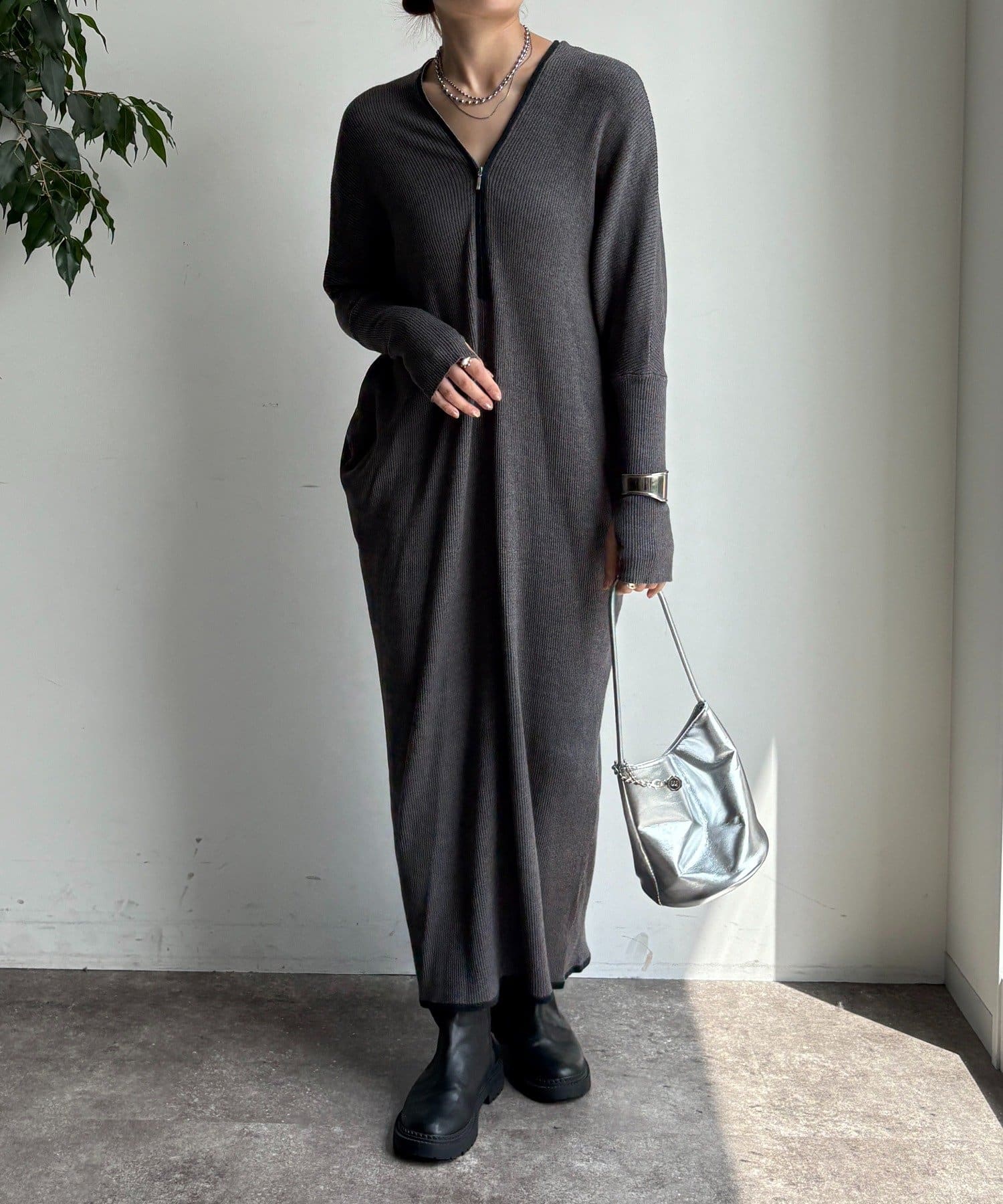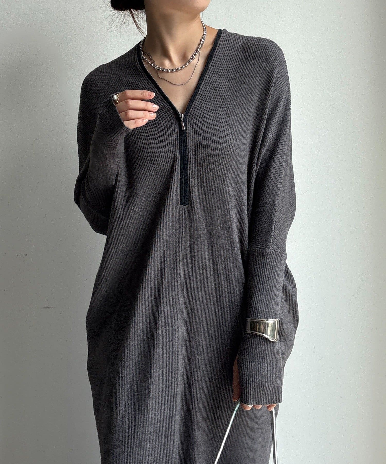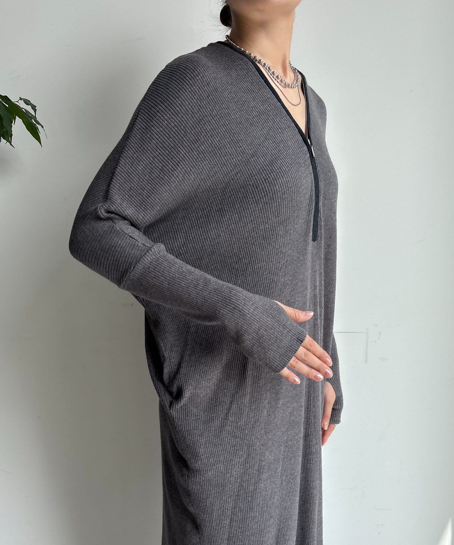 【WEB限定】フロントジップリブニットワンピース
