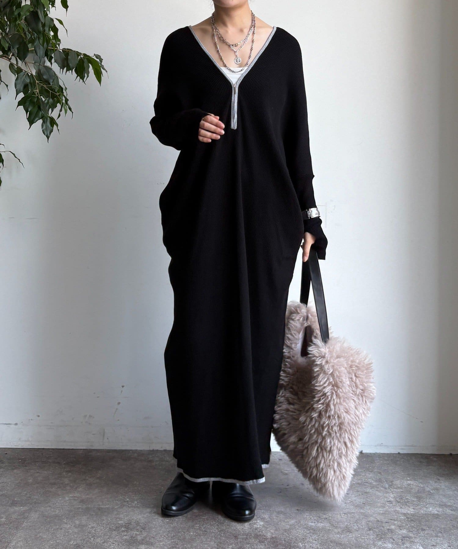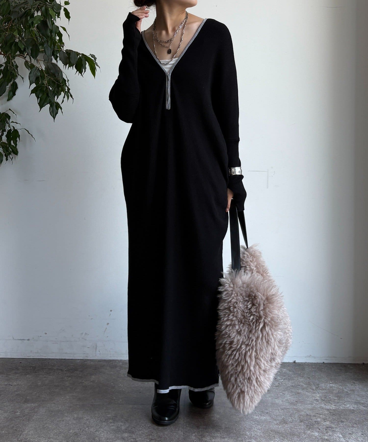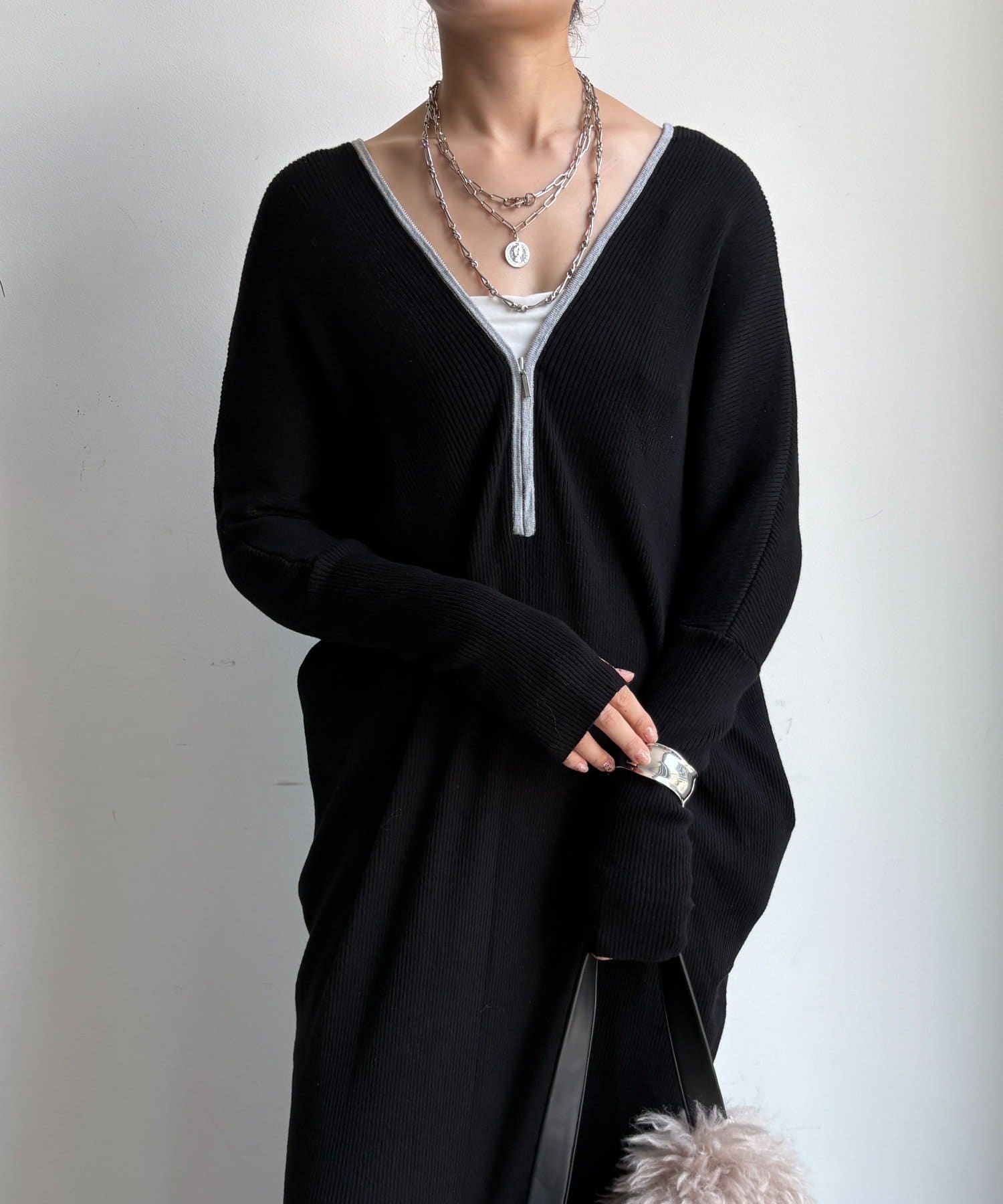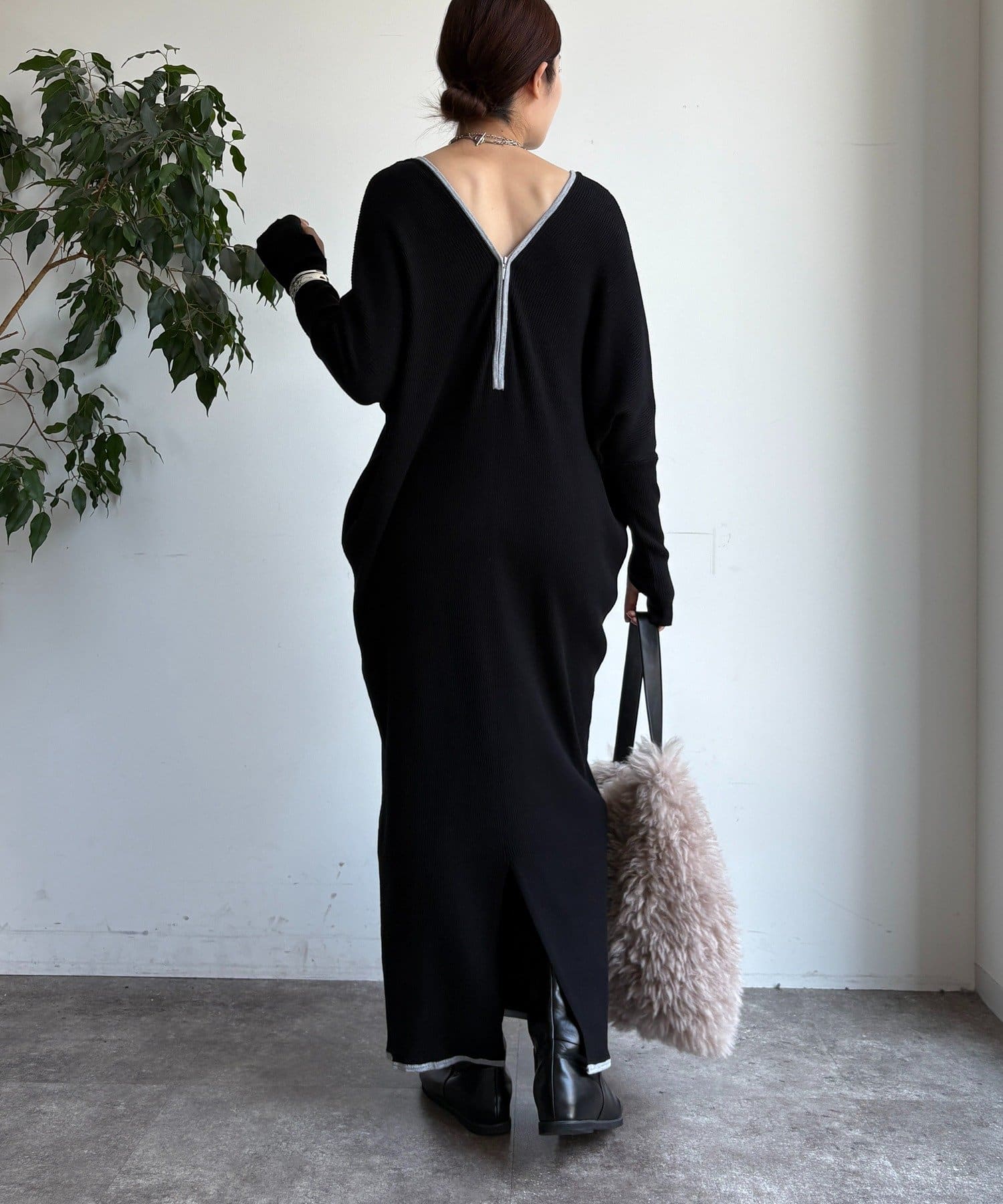 【WEB限定】フロントジップリブニットワンピース