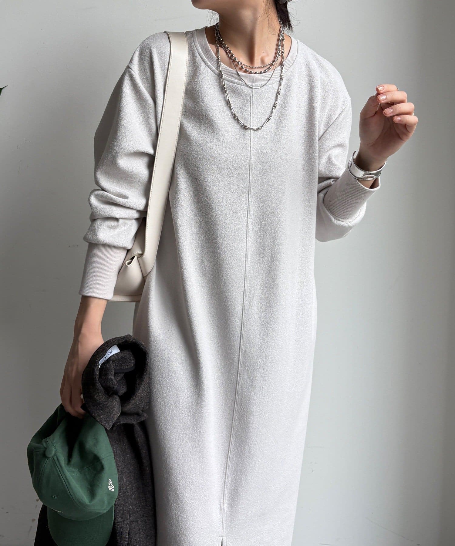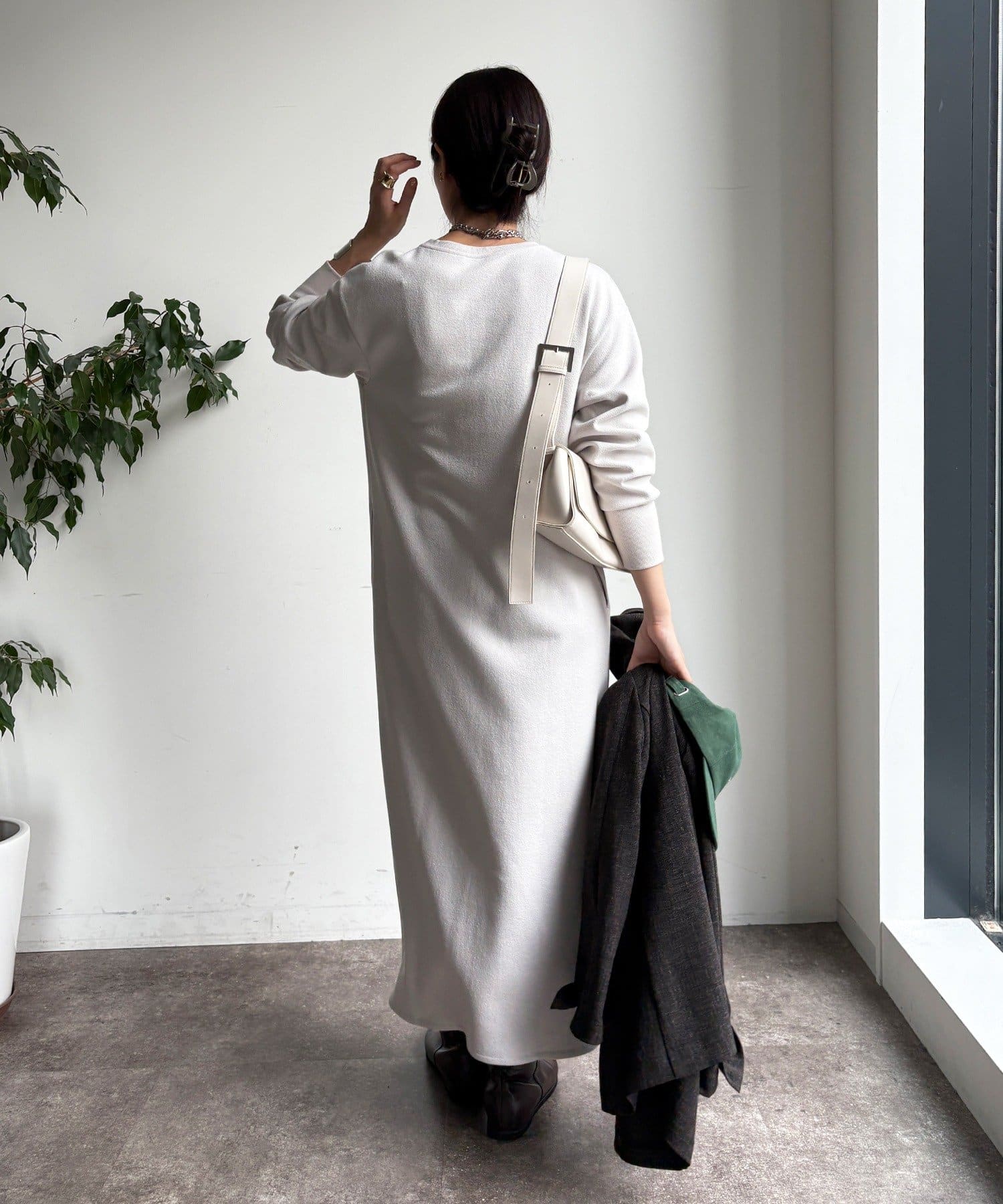 アクセサリー合わせや小物合わせで雰囲気を変えられるシンプルなワンピースは、ロングシーズン頼れる1着になってくれること間違いなし!