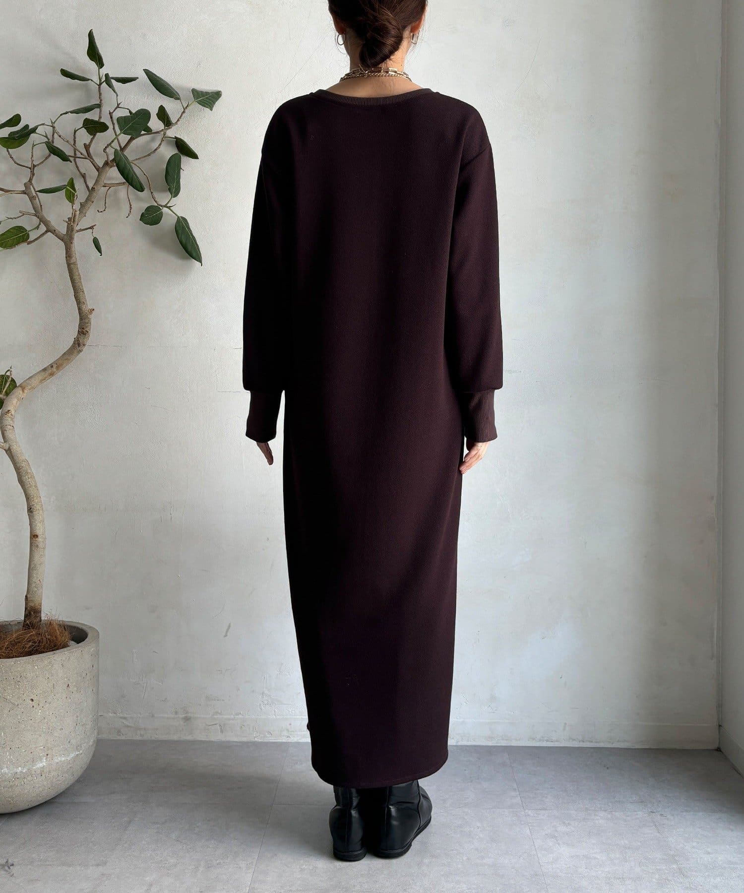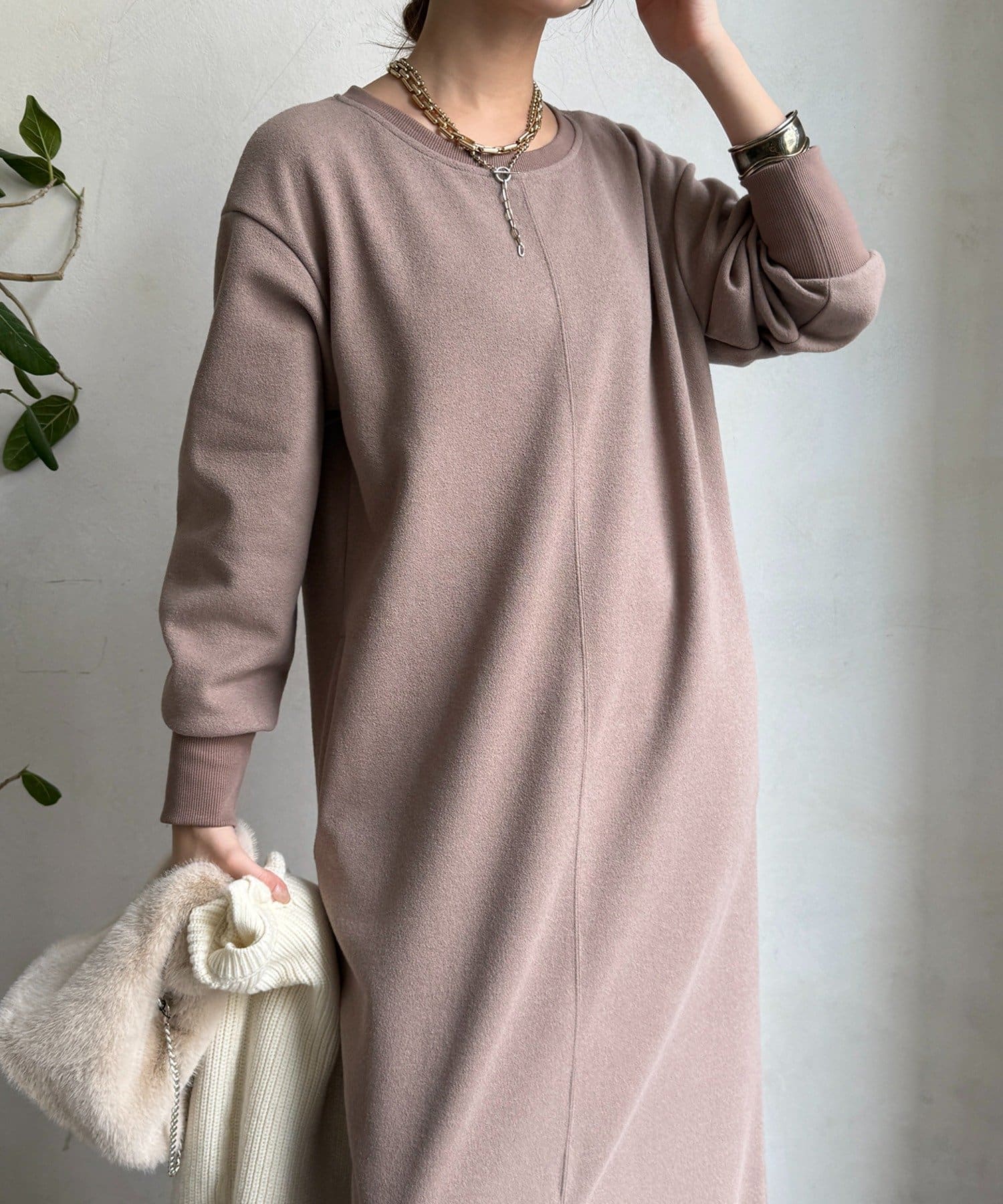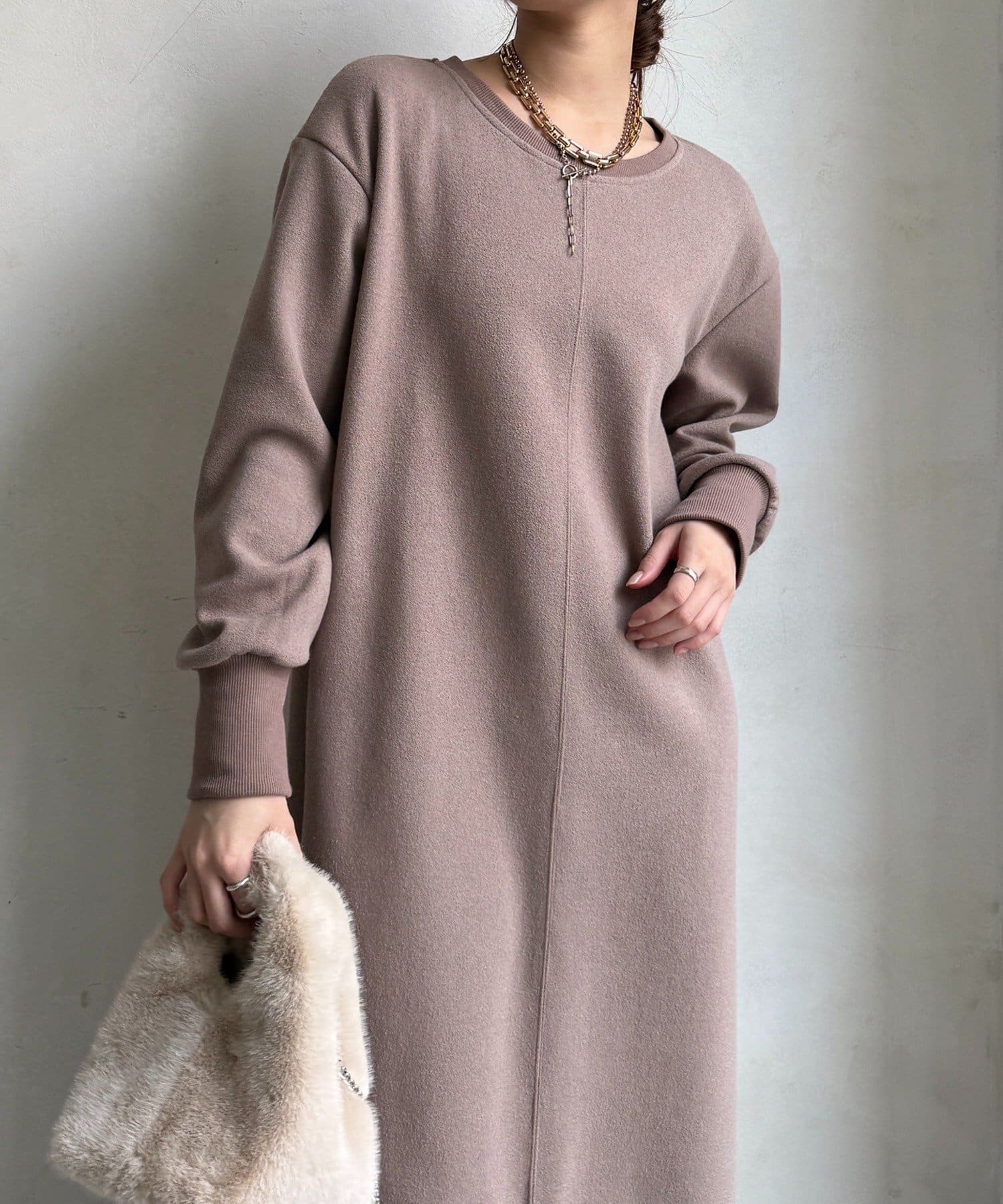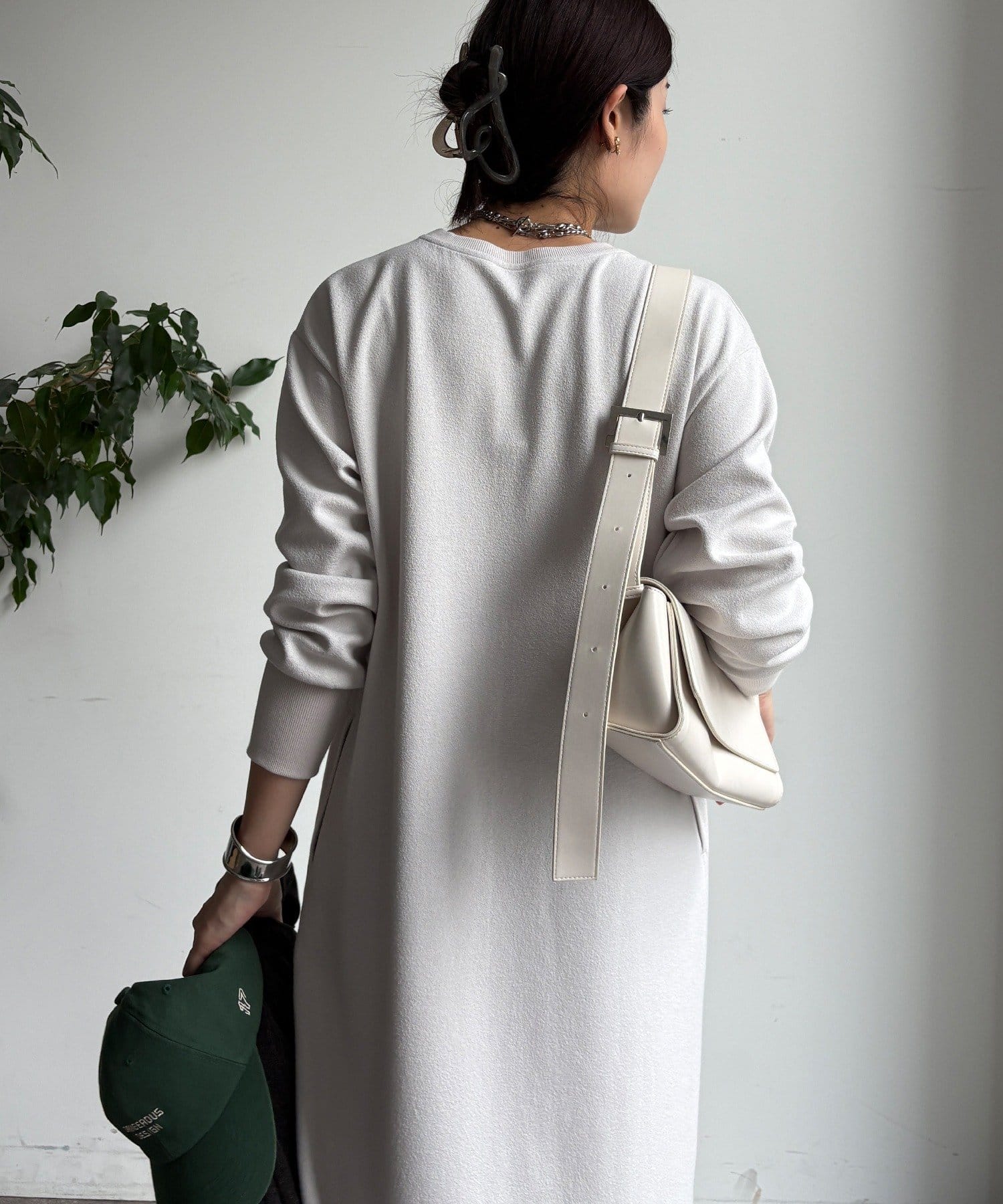 DOUDOUで人気のブークレー素材のワンピースに長袖バージョンが登場。