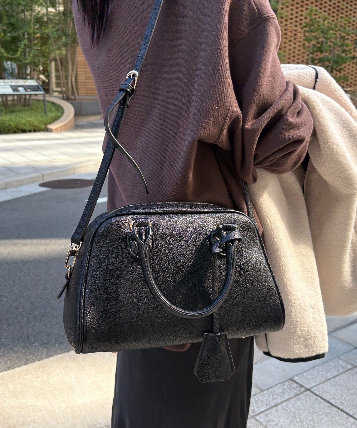 オンオフで大活躍!シボフェイクレザーボストンバッグ