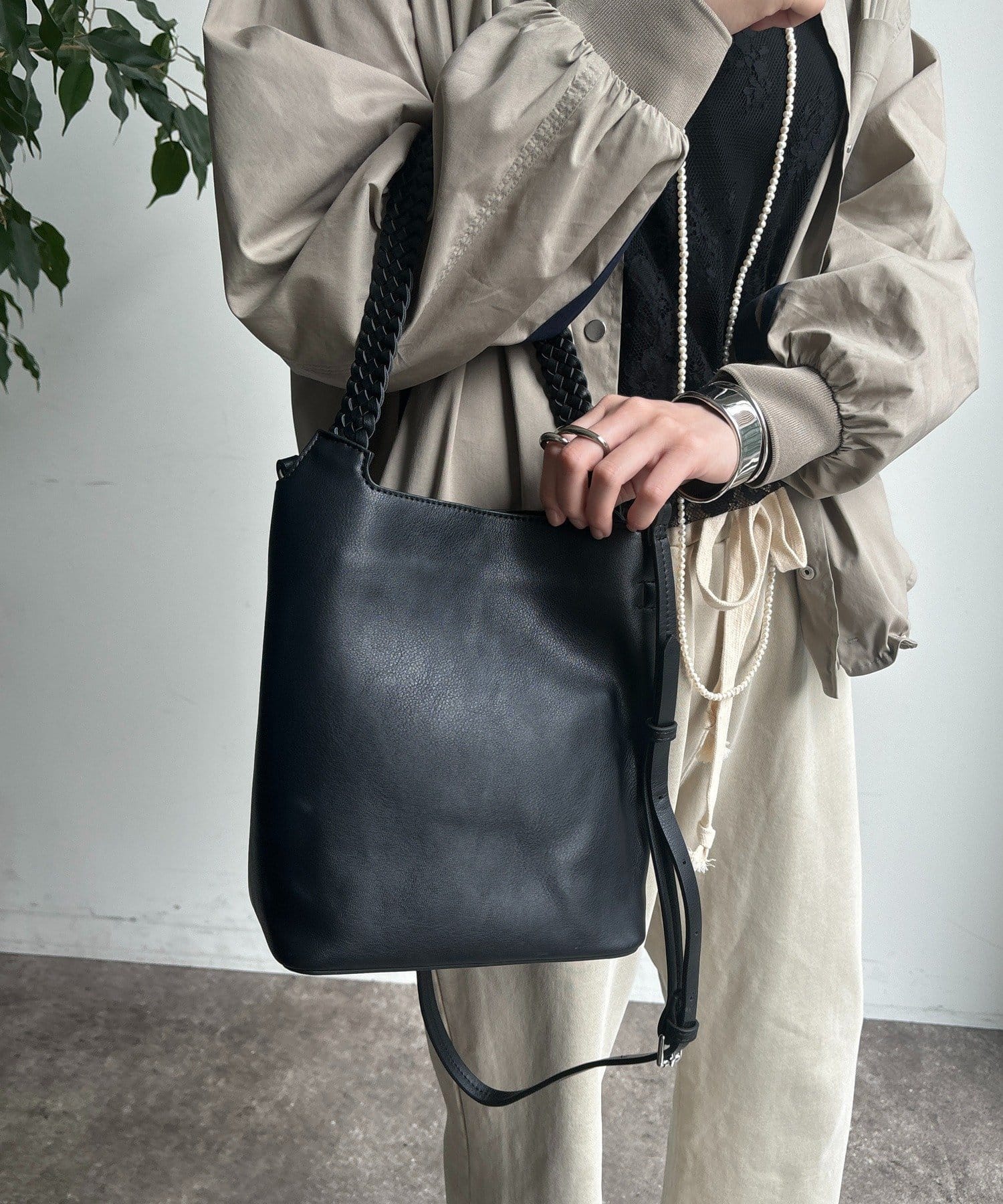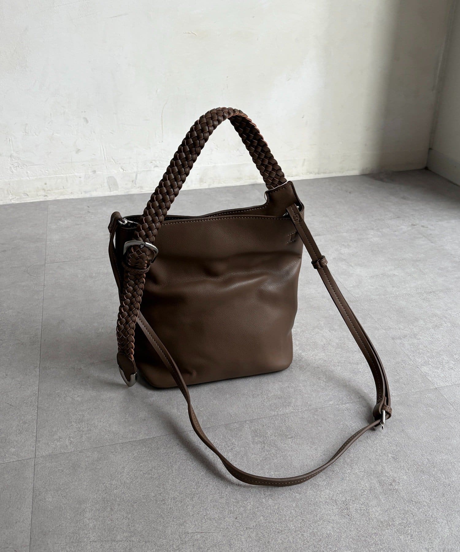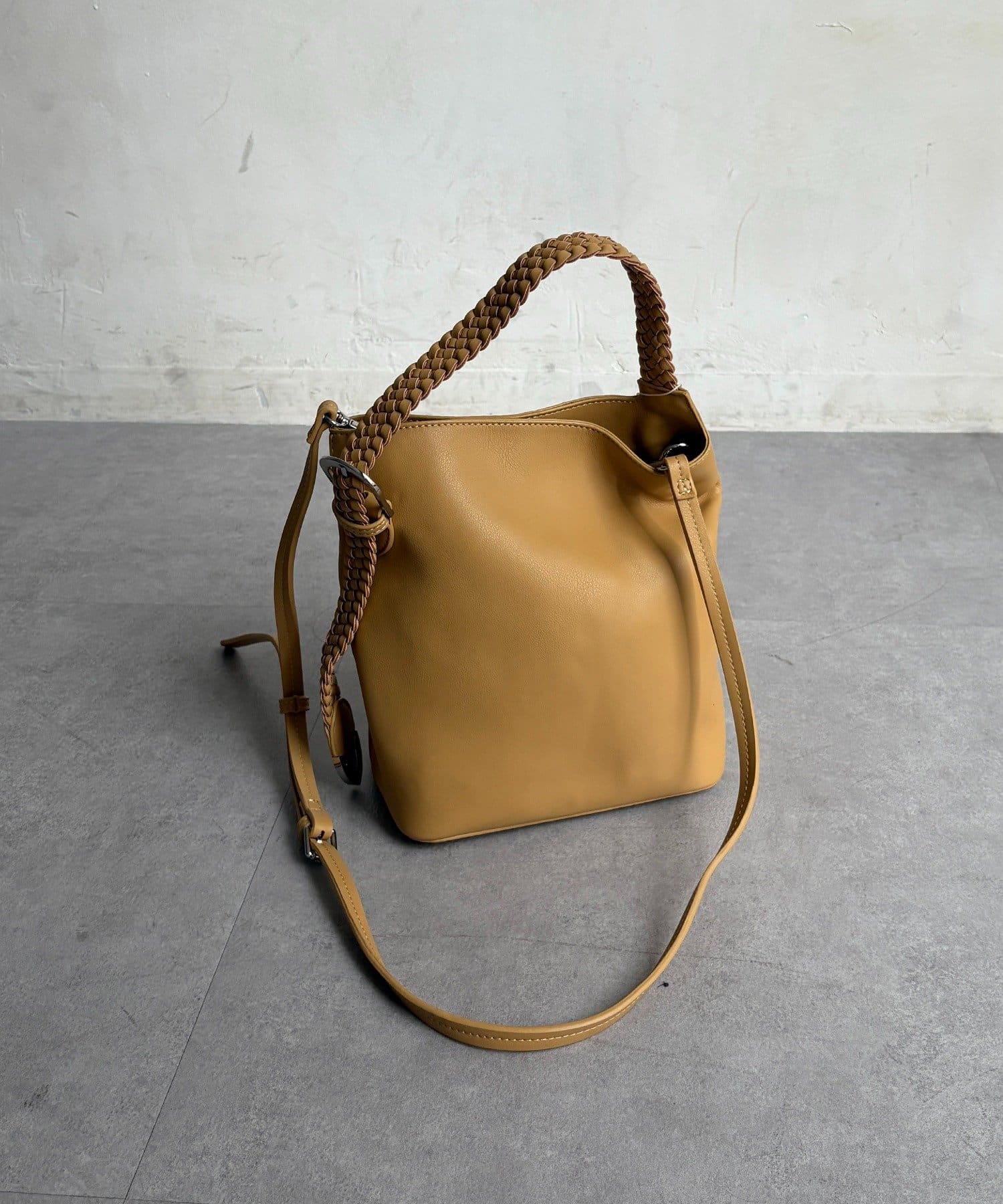 ハンドクラフト感のあるメッシュハンドルがポイントの縦型2wayワンショルダー。