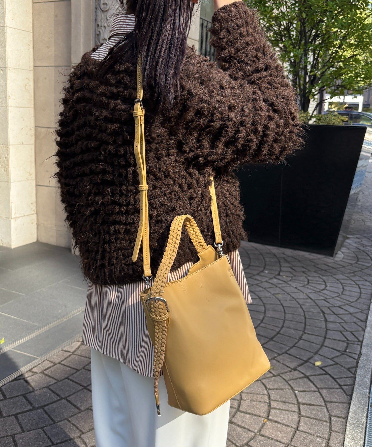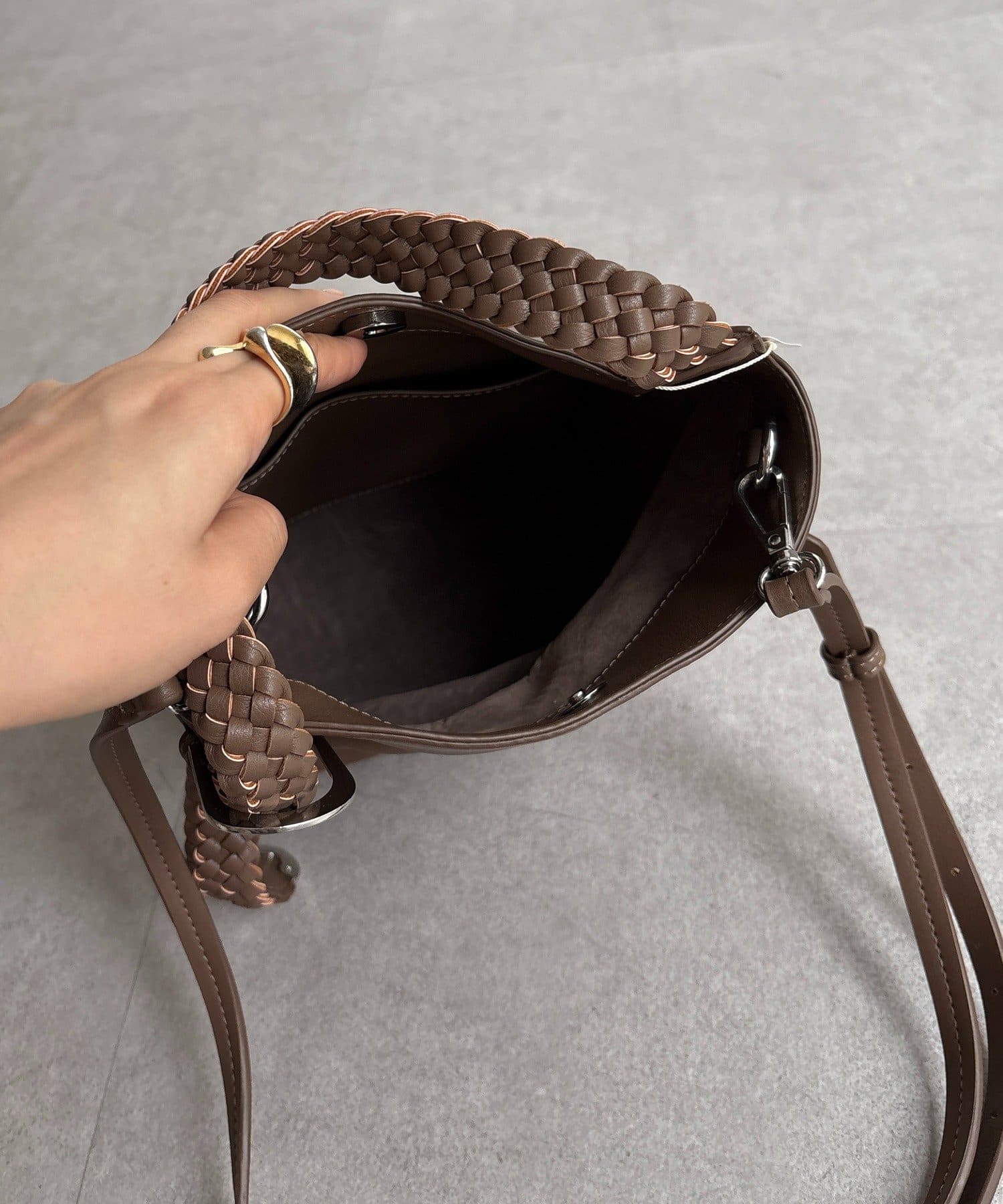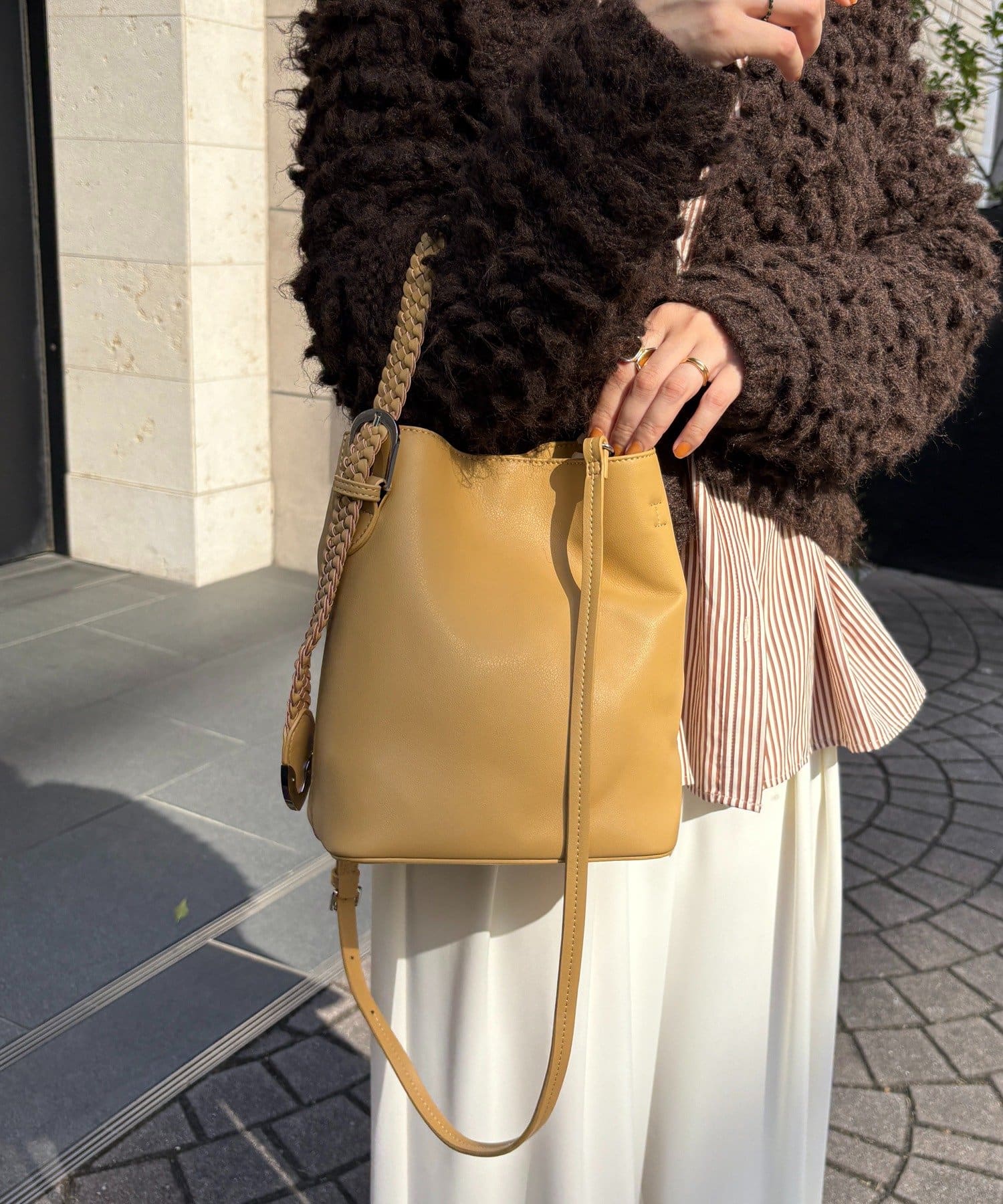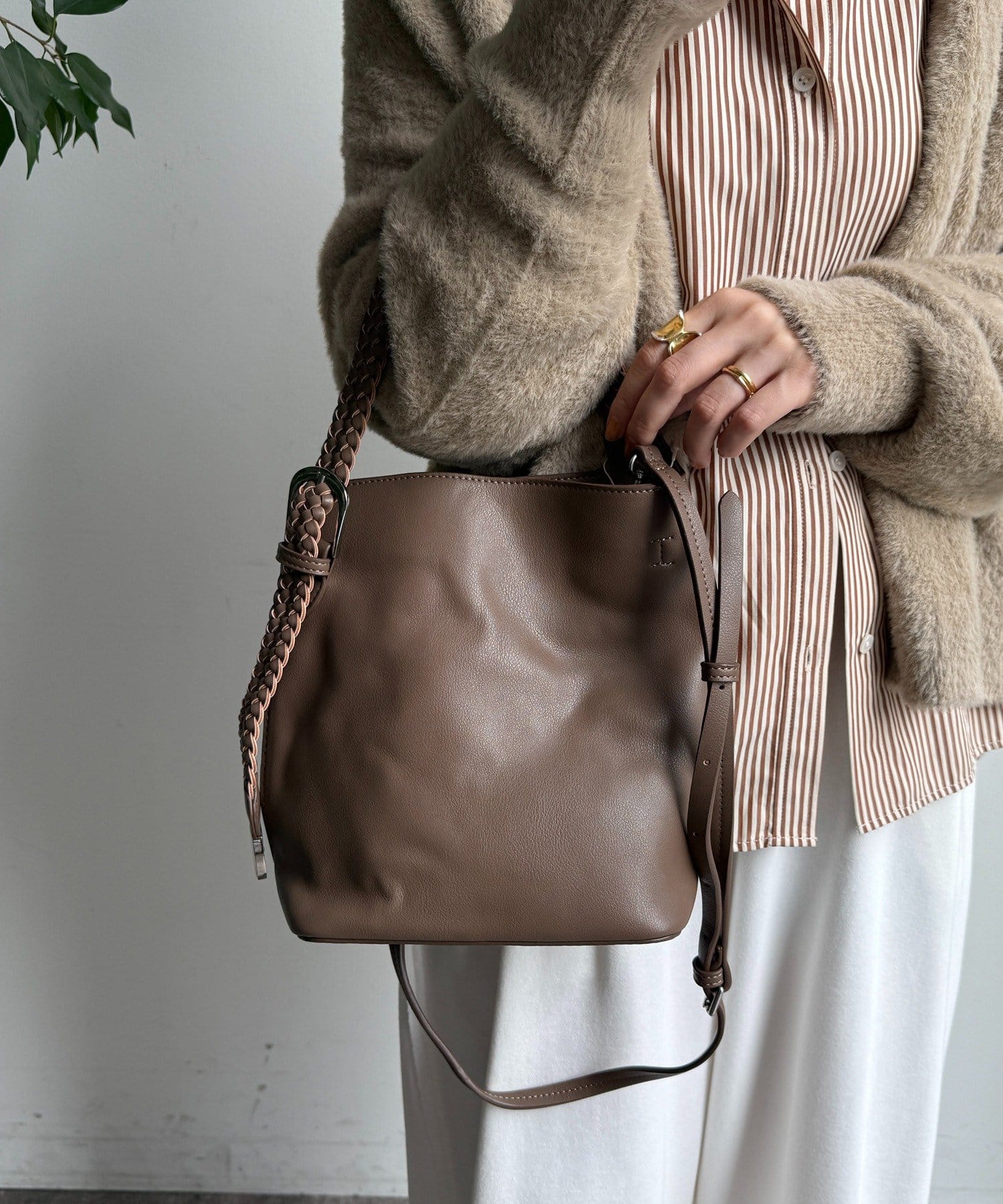 ハンドクラフト感のあるメッシュハンドルがポイントの縦型2wayワンショルダー。