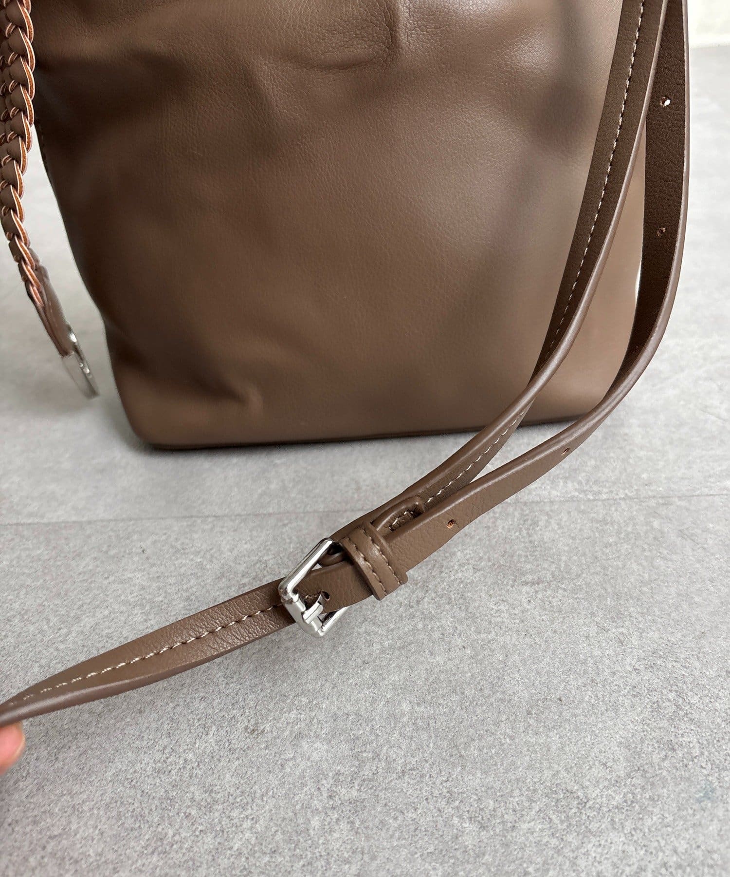 メッシュハンドルはベルト金具で長さ調整ができるので自由な長さに変えられ、