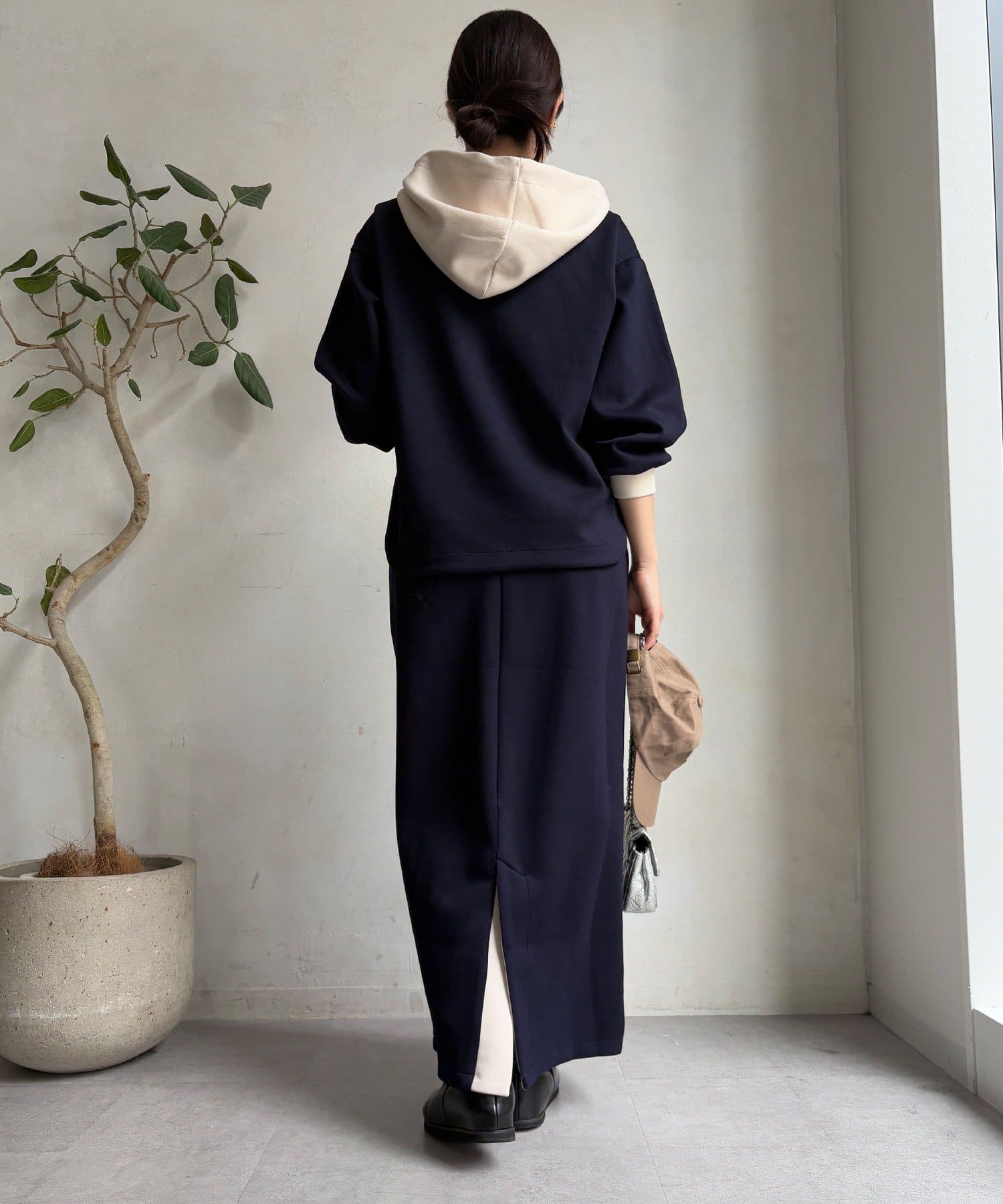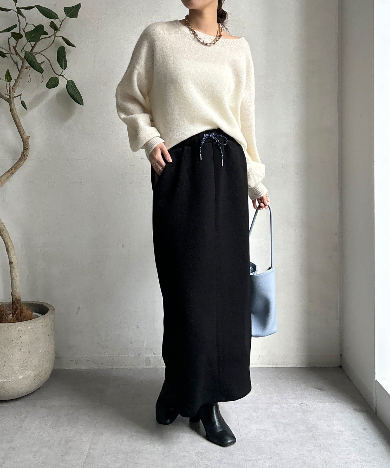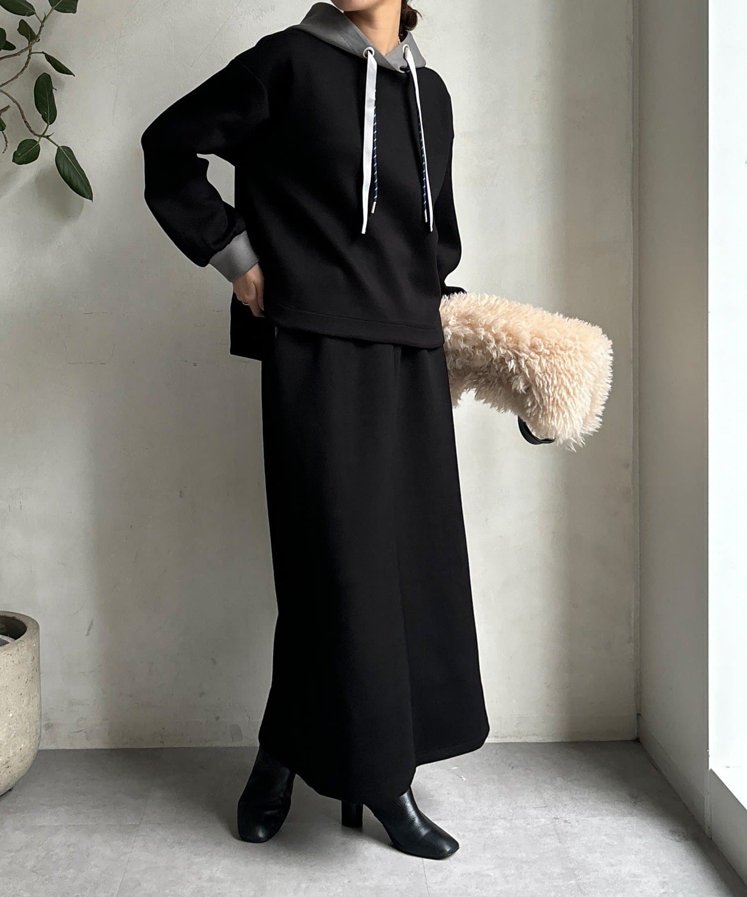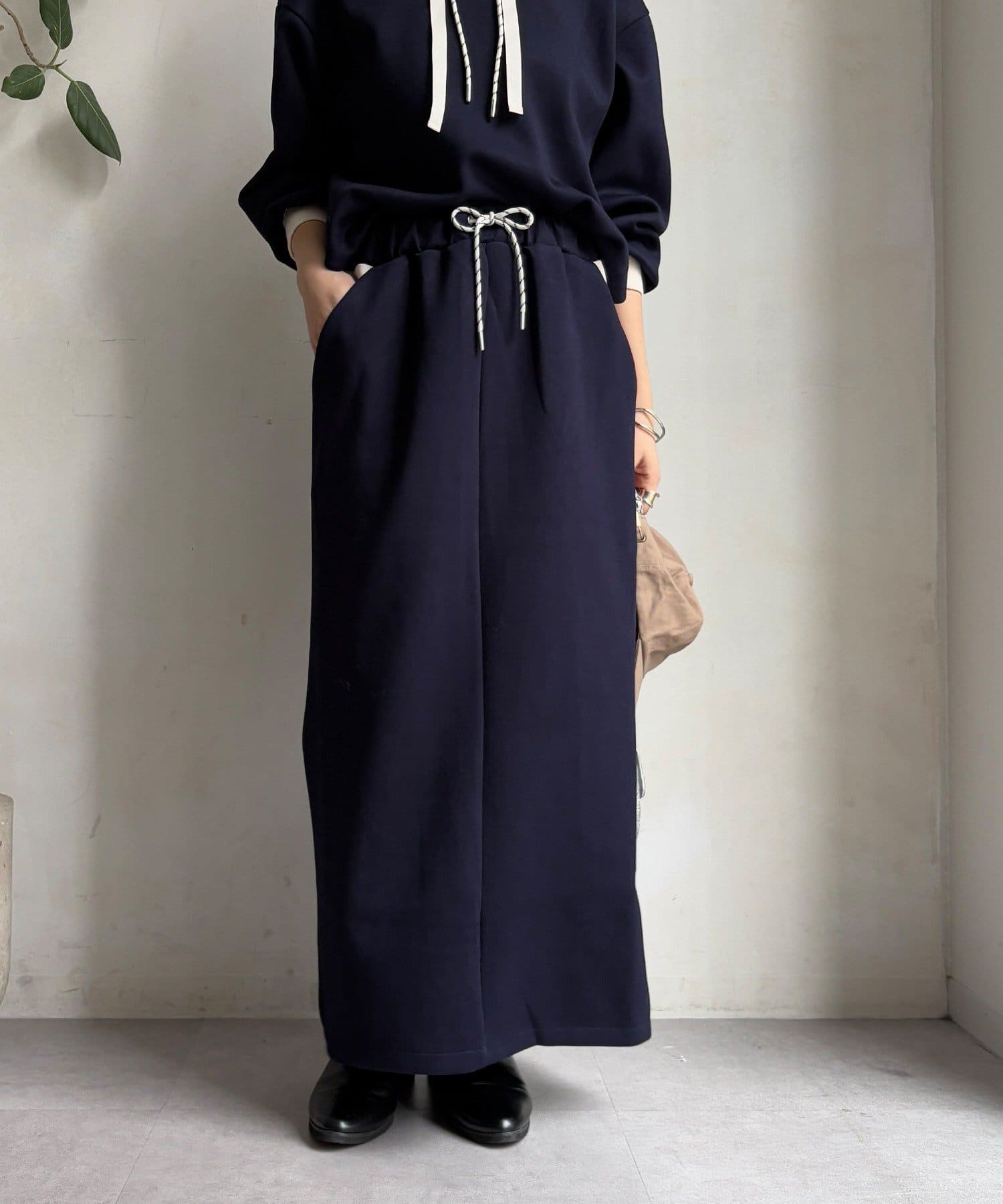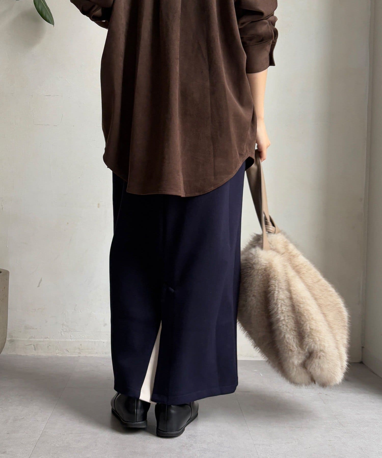 同素材のトップスやアウターとセットアップで揃えれば、旬なスタイルが簡単に完成しますよ。