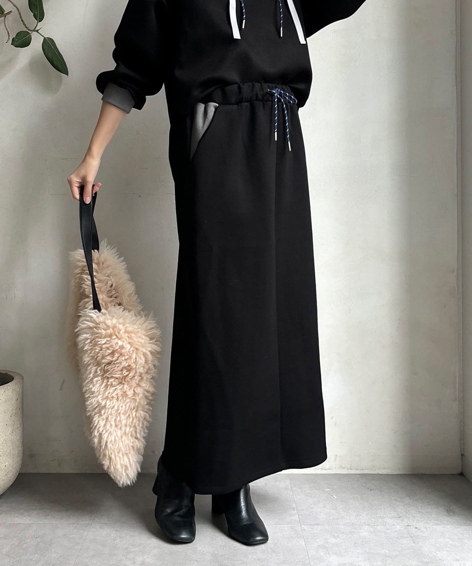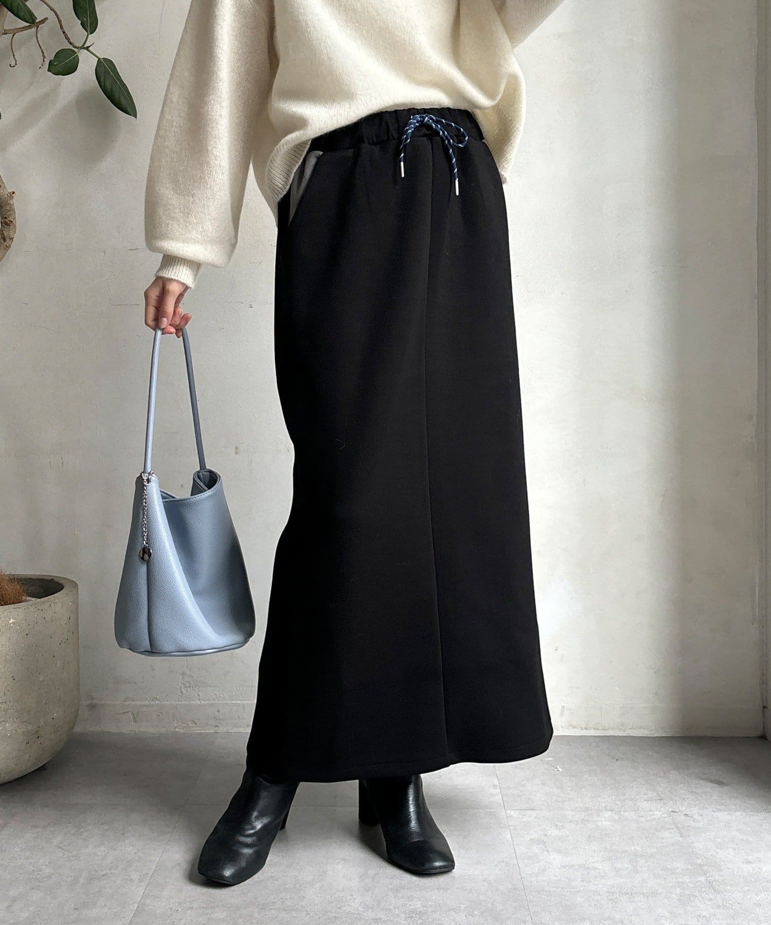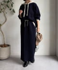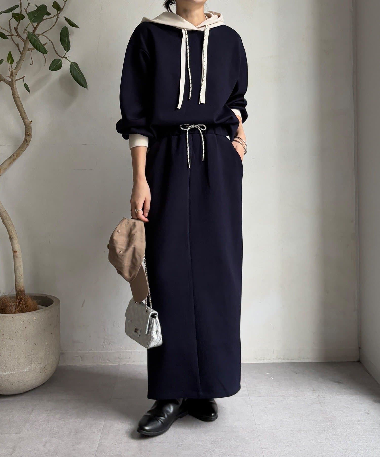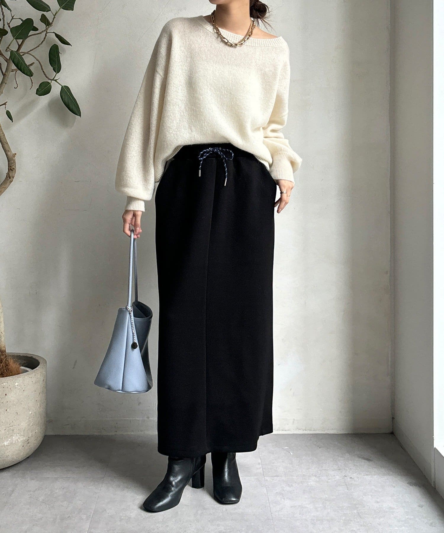 同素材のトップスやアウターとセットアップで揃えれば、旬なスタイルが簡単に完成しますよ。