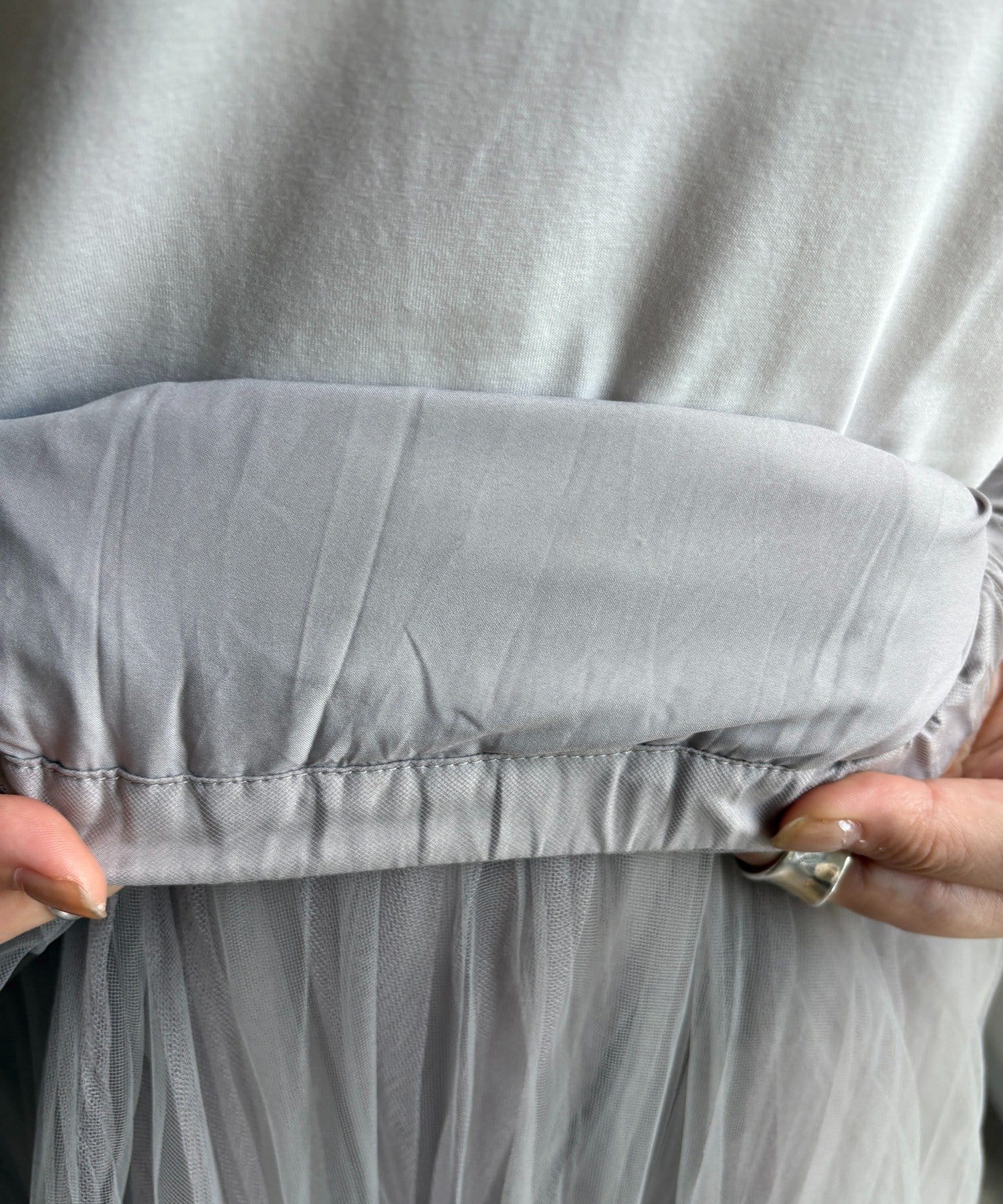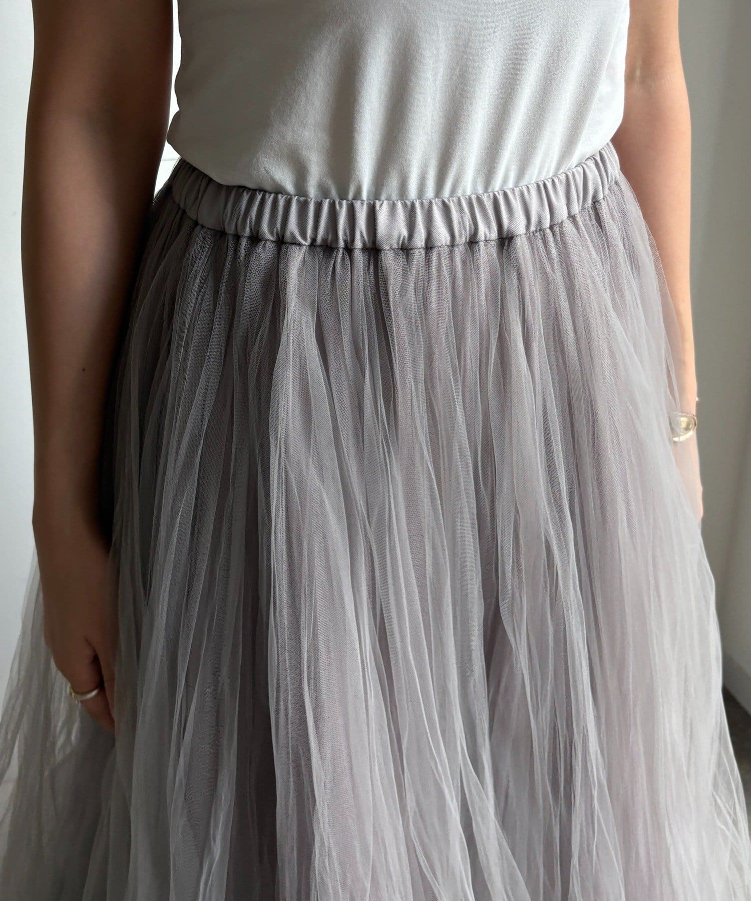 内側にもチュールを重ねることで、上品な透け感を演出。