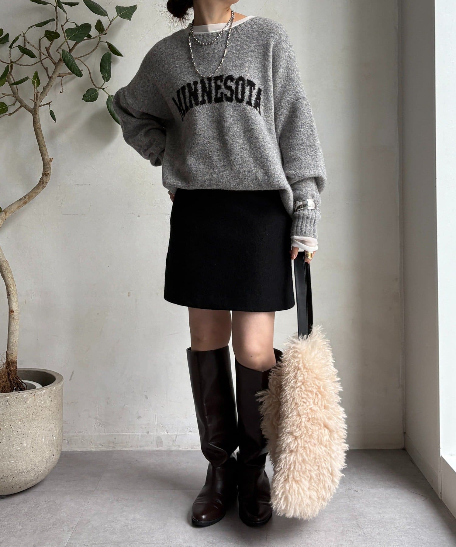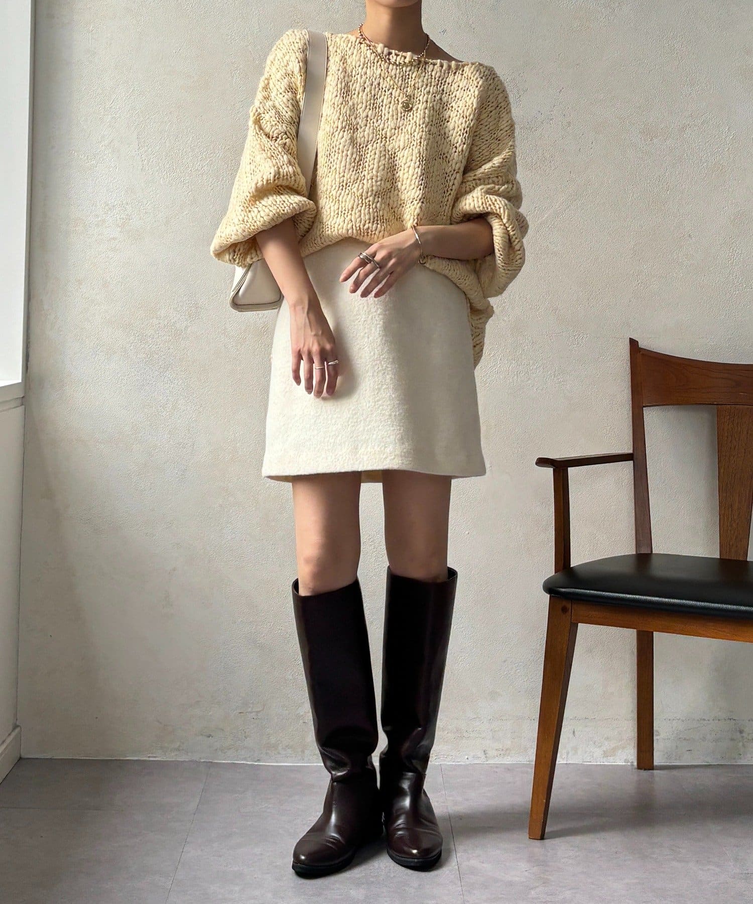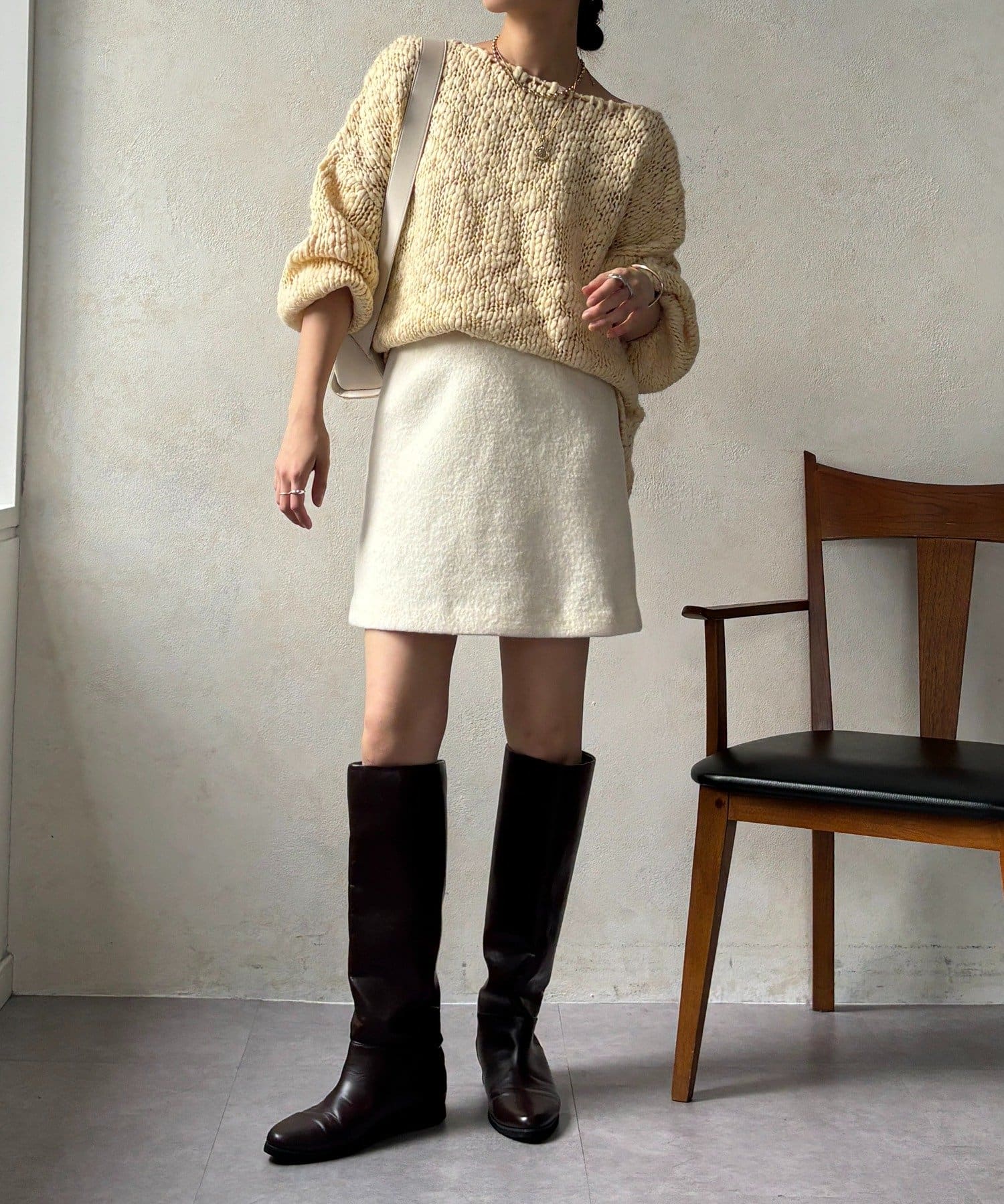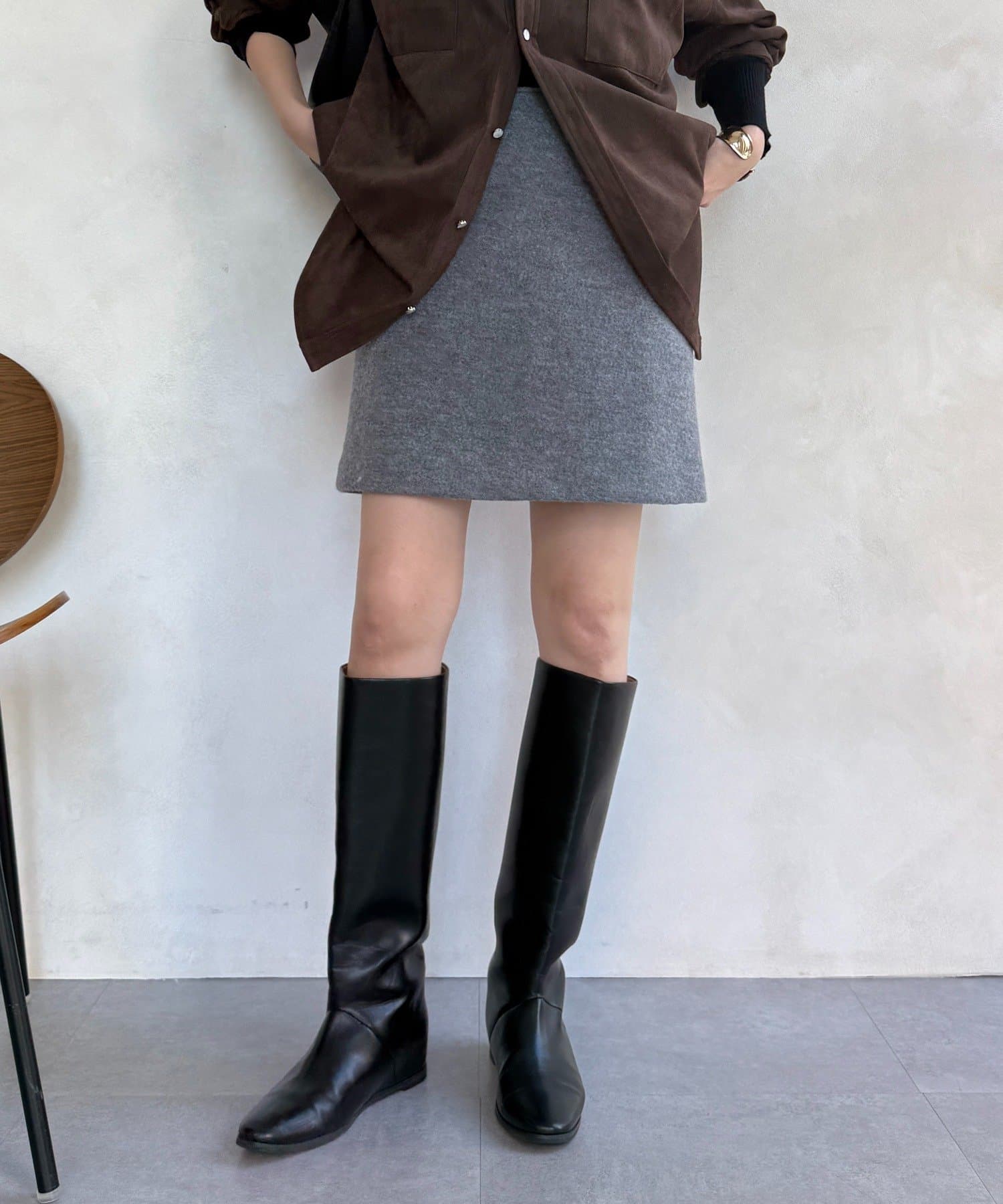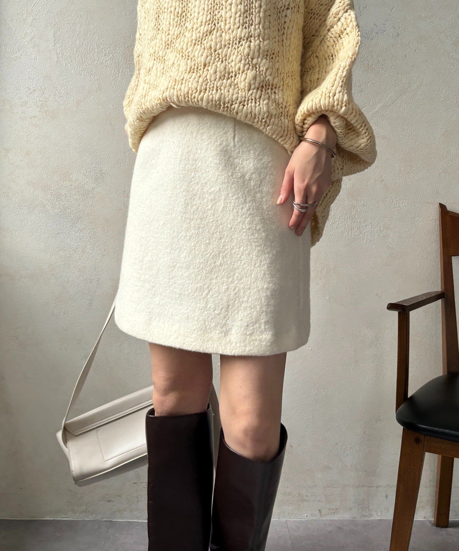 ふっくらとした風合いが特徴で、見た目にも暖かくシーズンムード高まるスカートです。