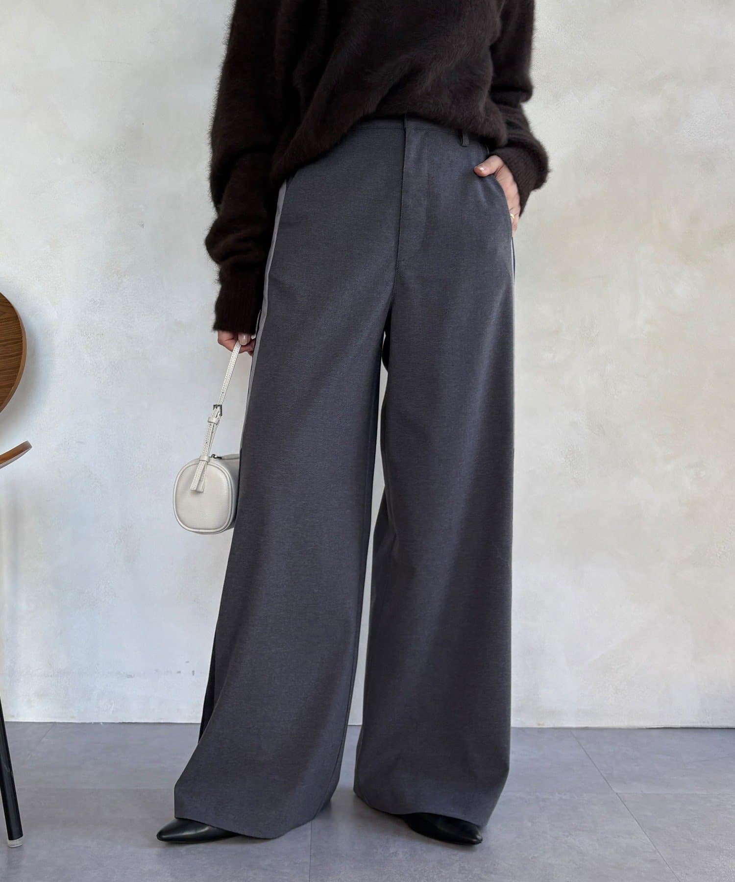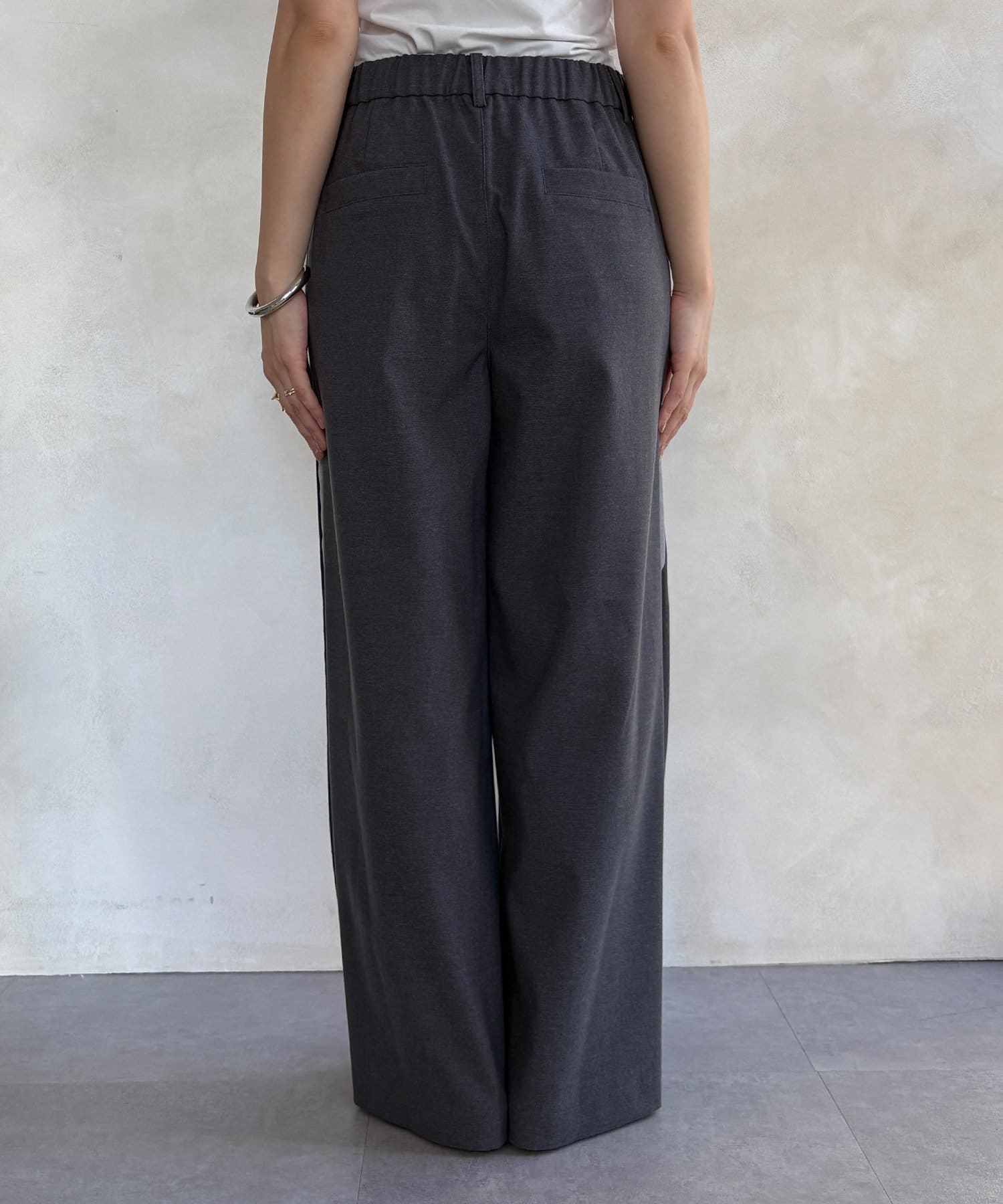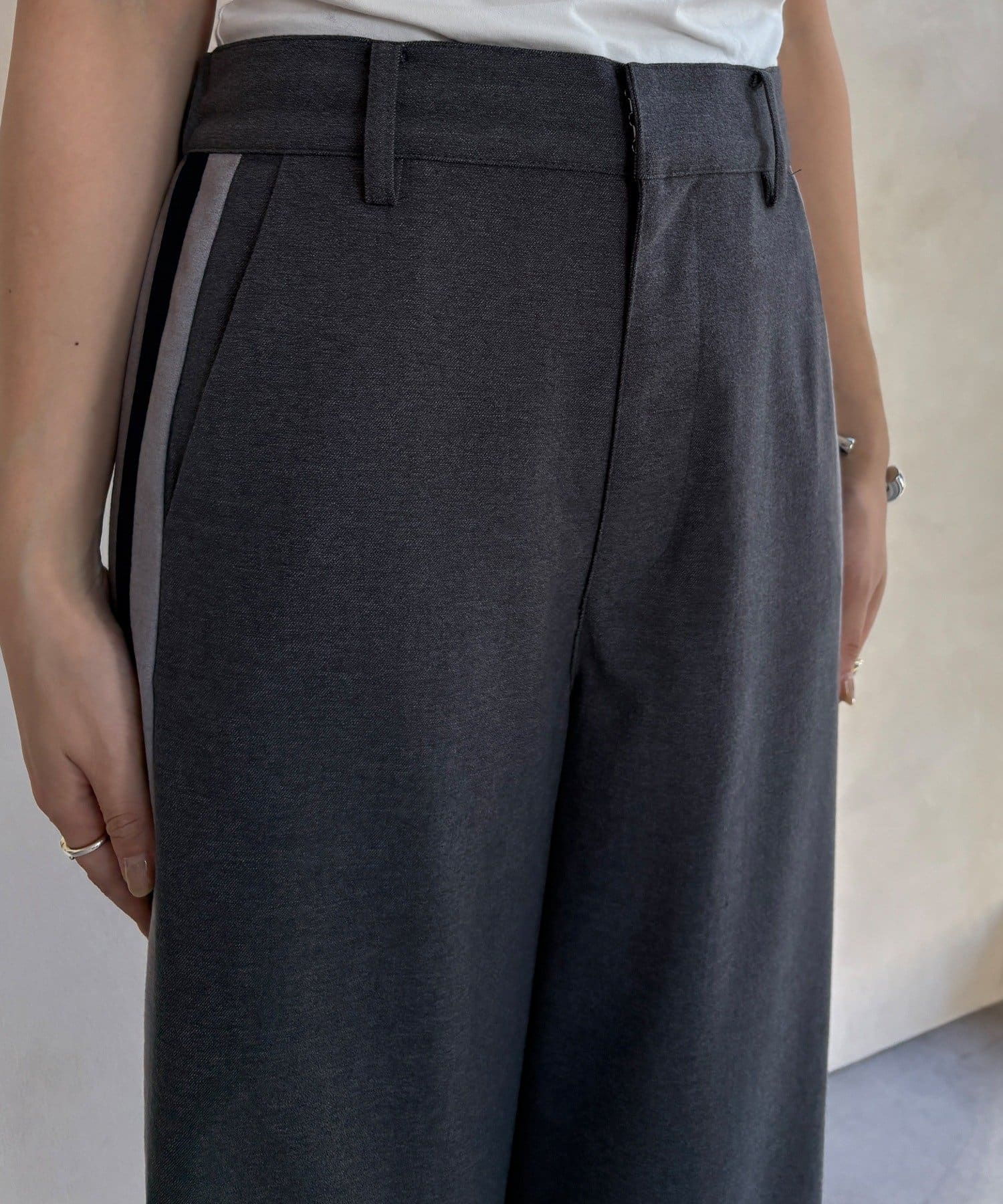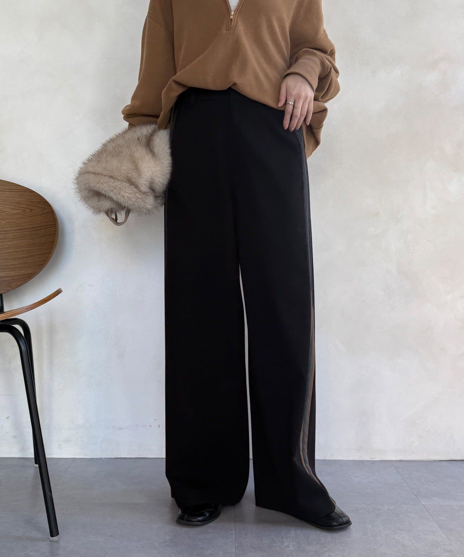 サイドラインが今っぽくお洒落なうえ、縦のラインを強調し、より一層脚長に見せてくれ、ワイドシルエットが気になるレッグラインをカバーしつつ、スタイルアップ効果も期待できます。