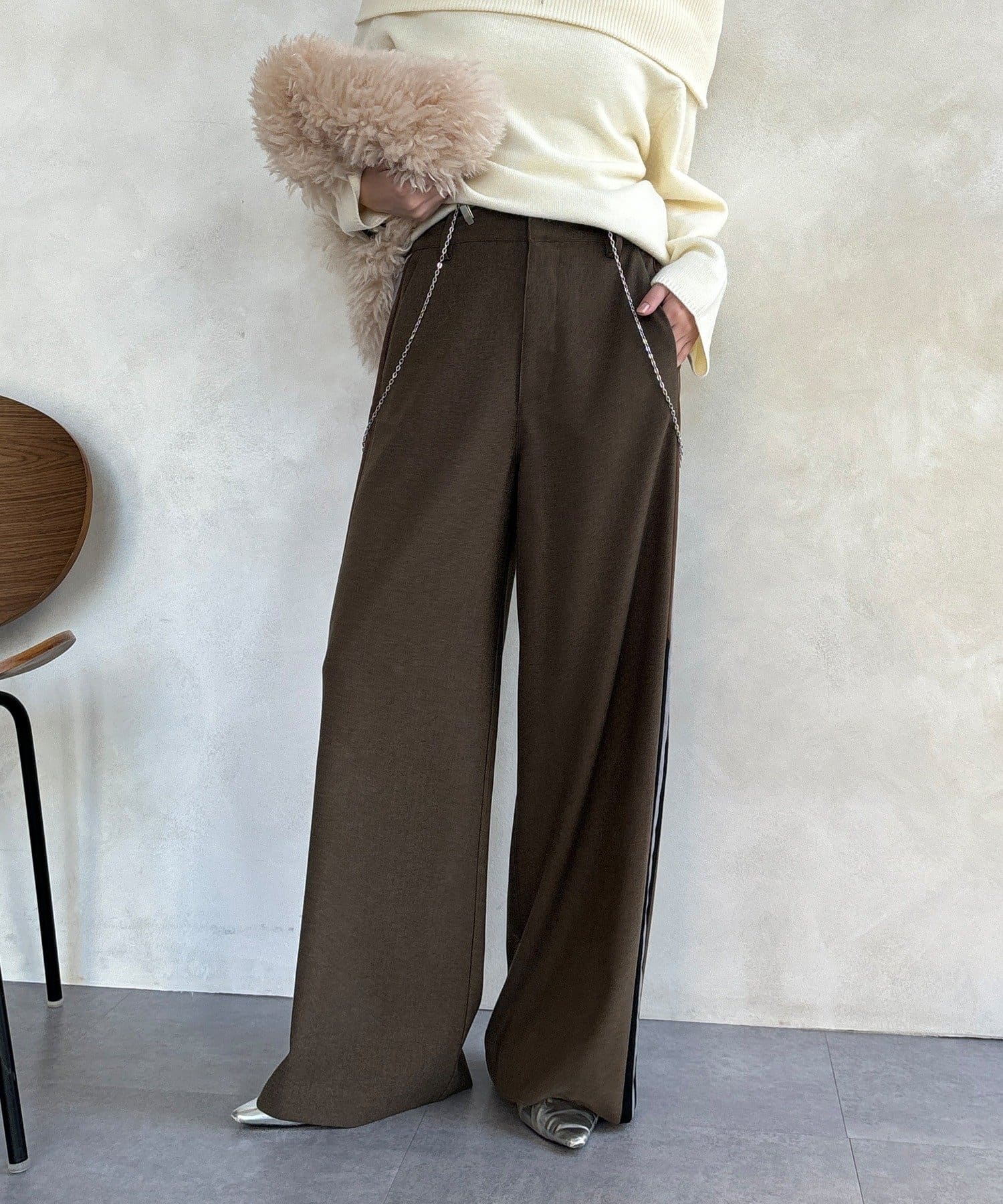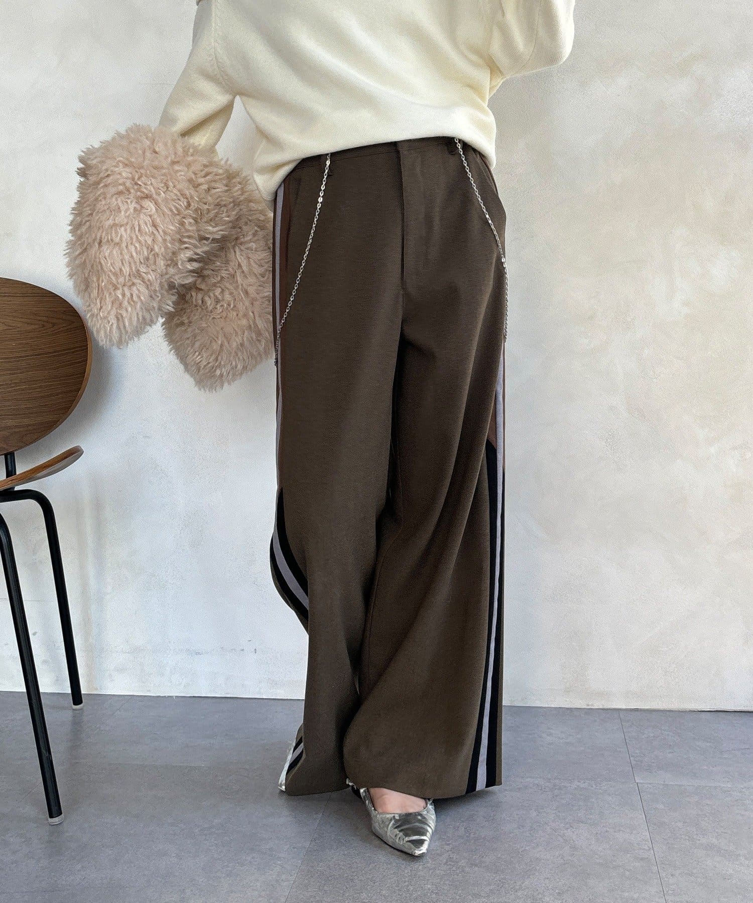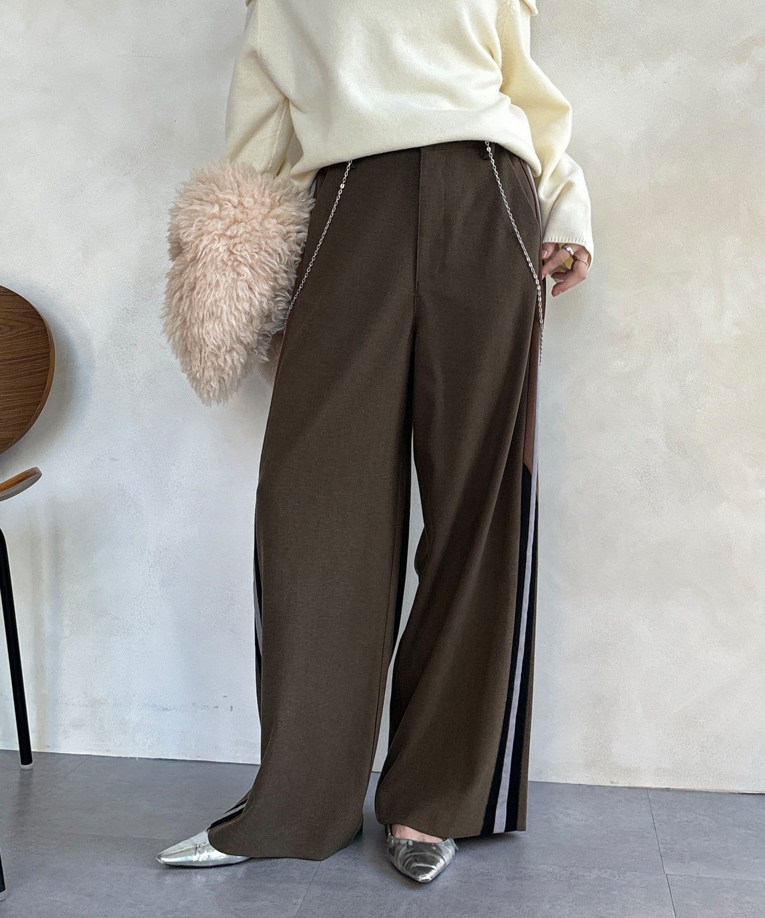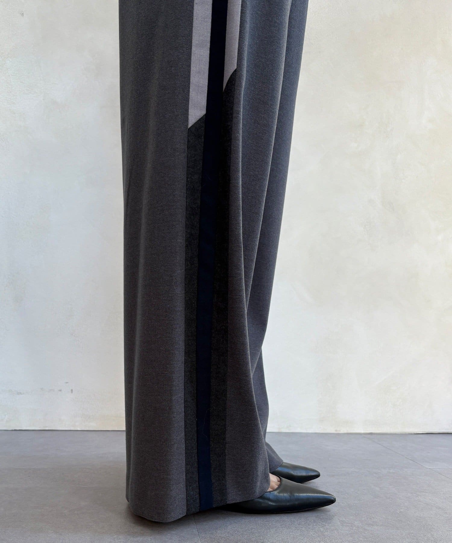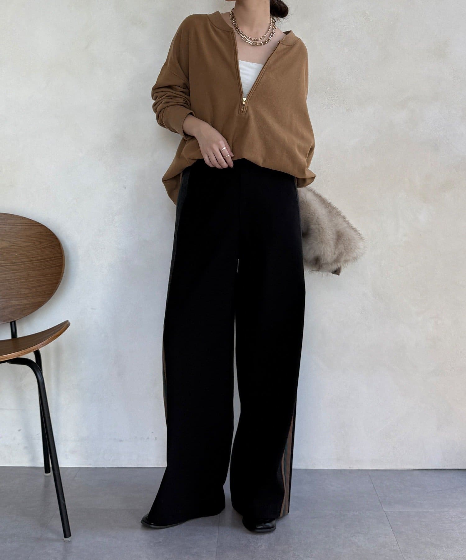 サイドラインが今っぽくお洒落なうえ、縦のラインを強調し、より一層脚長に見せてくれ、ワイドシルエットが気になるレッグラインをカバーしつつ、スタイルアップ効果も期待できます。