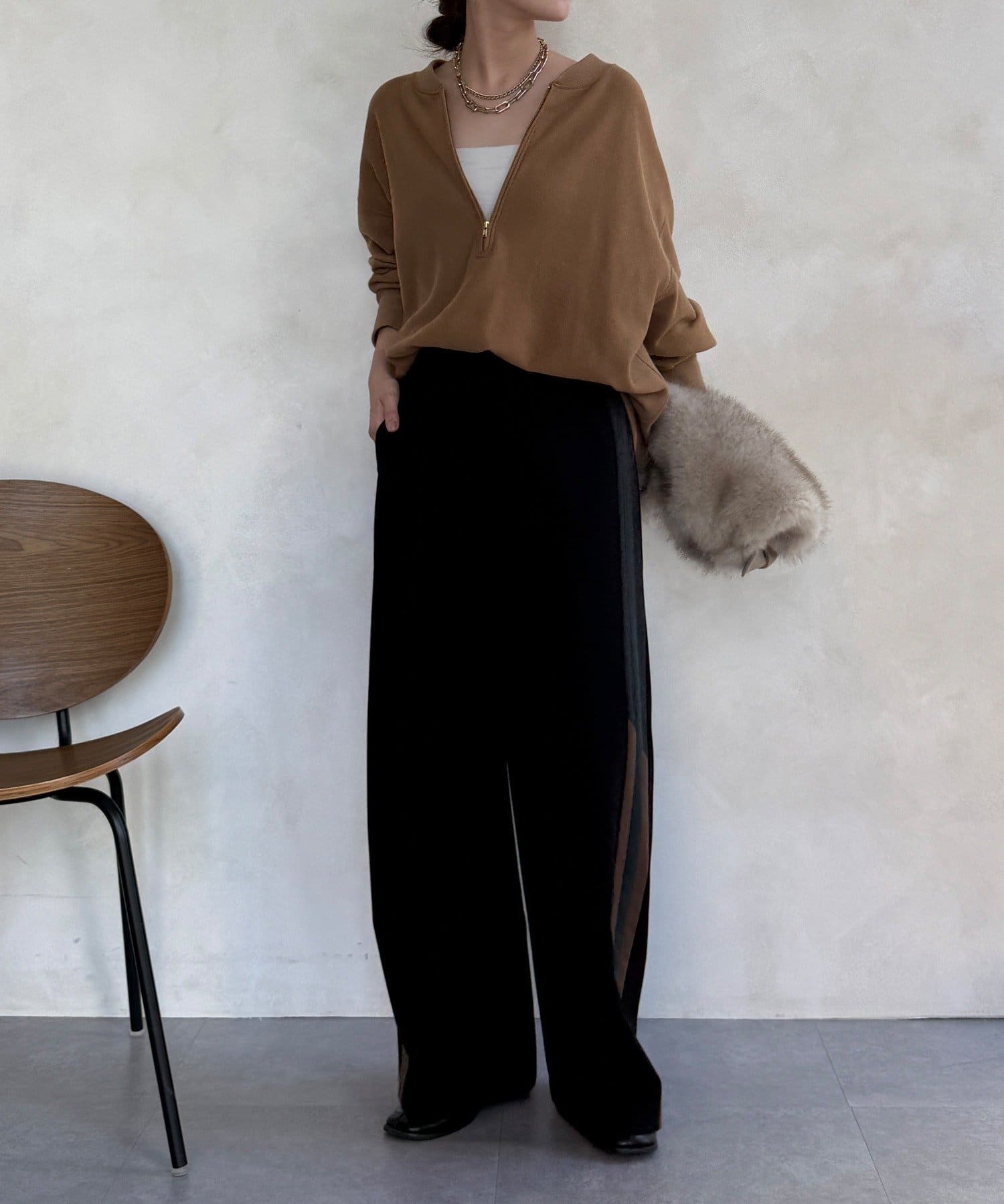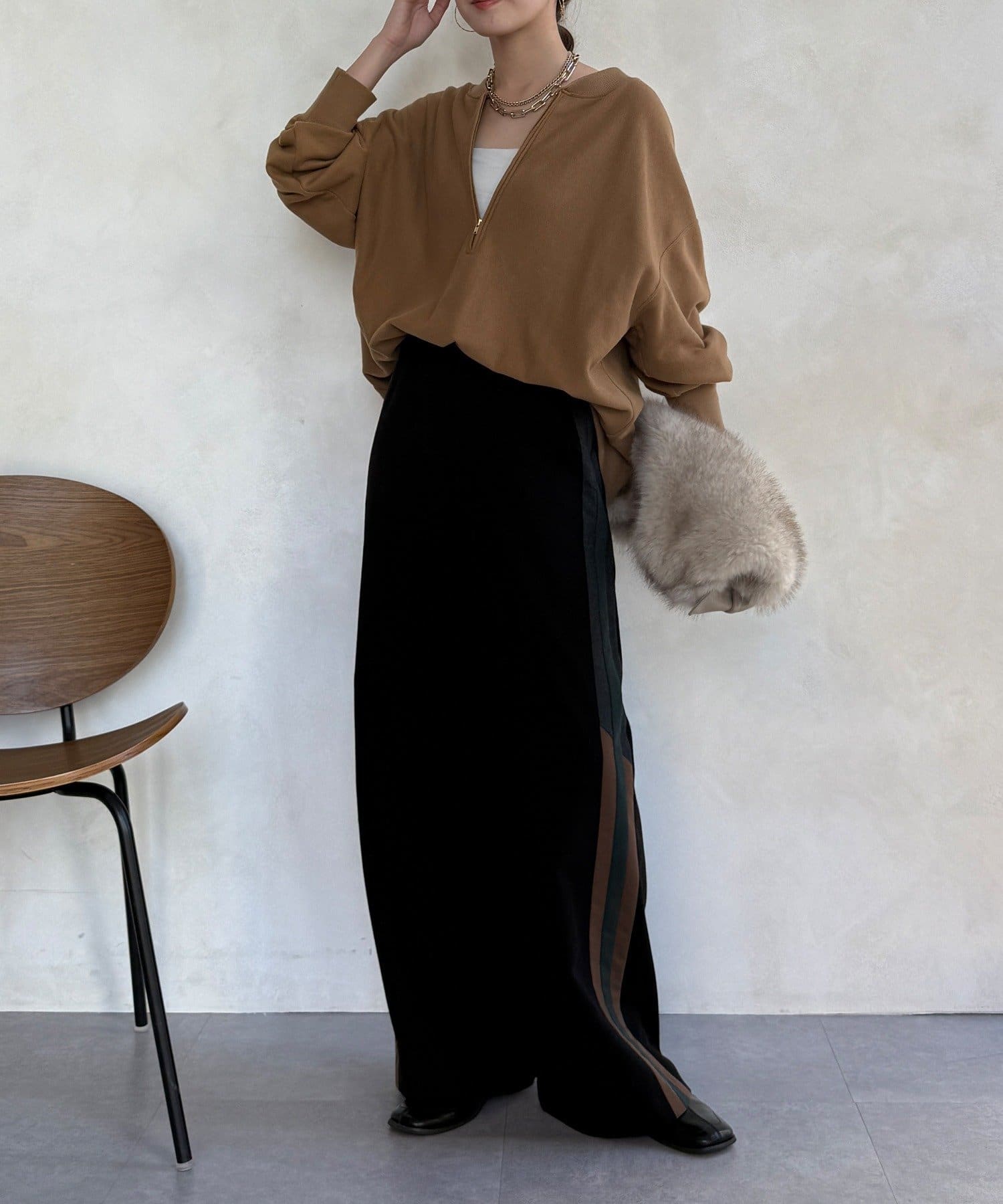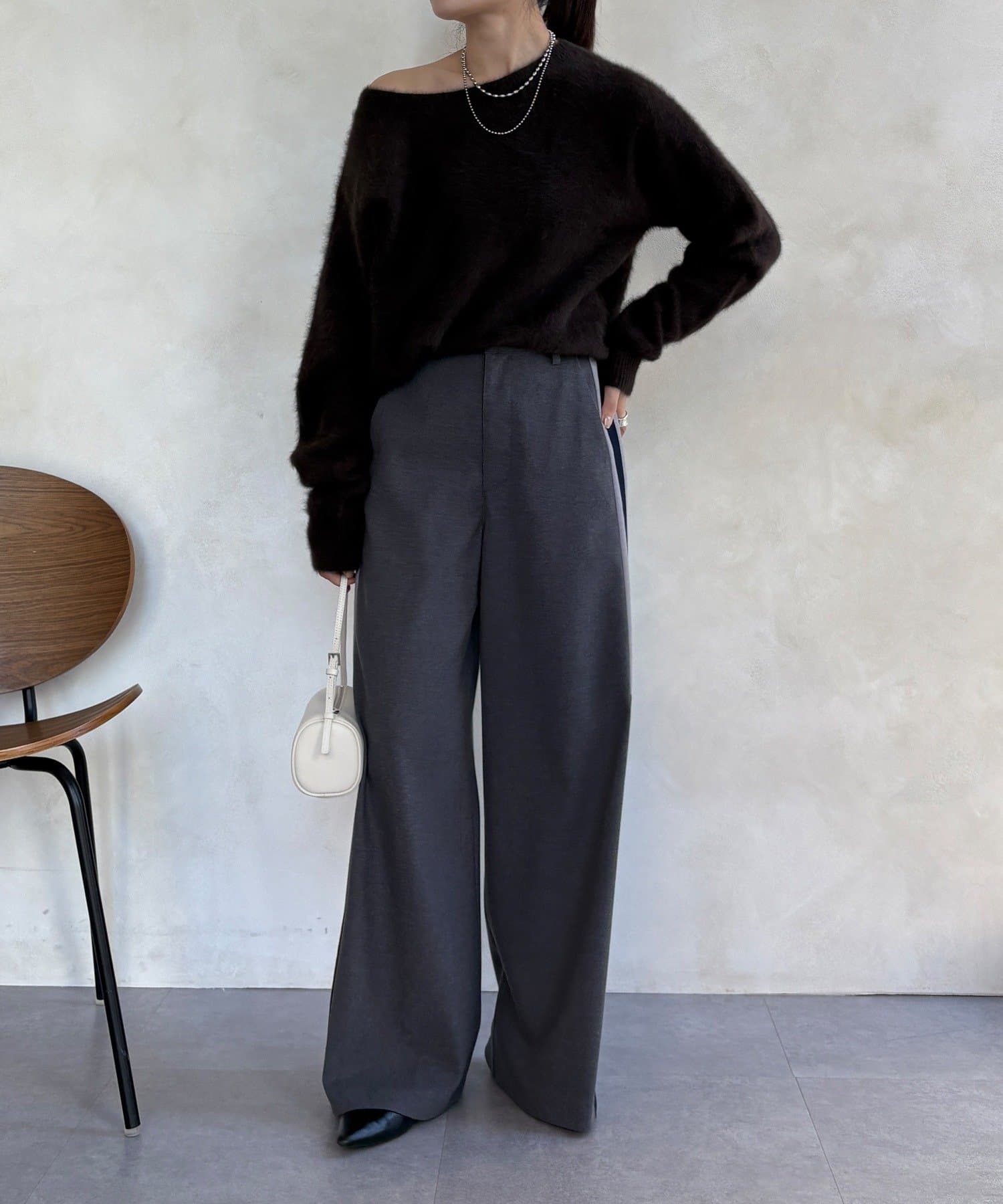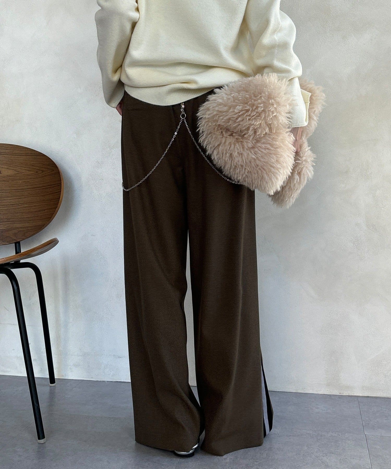 サイドラインが今っぽくお洒落なうえ、縦のラインを強調し、より一層脚長に見せてくれ、ワイドシルエットが気になるレッグラインをカバーしつつ、スタイルアップ効果も期待できます。