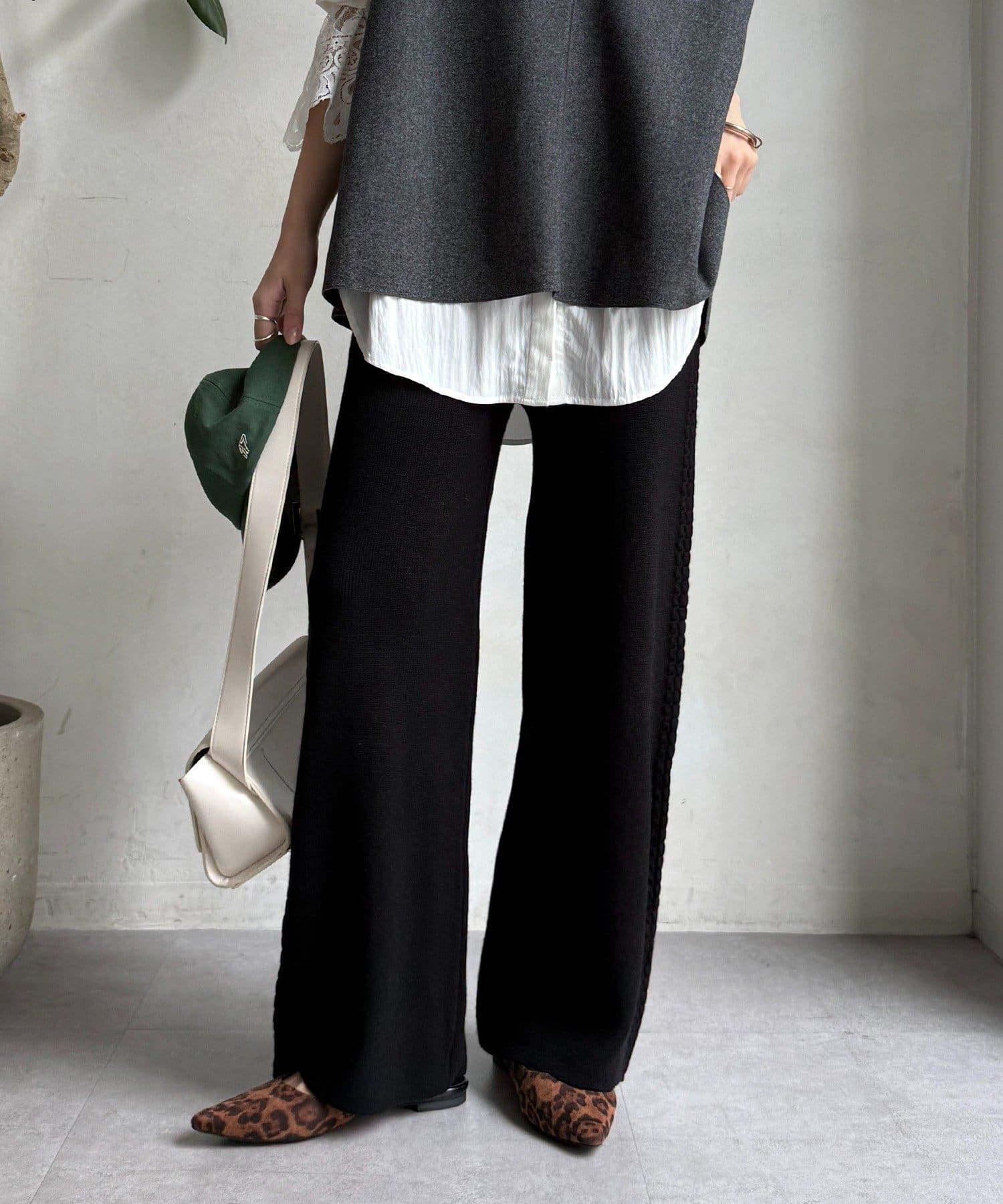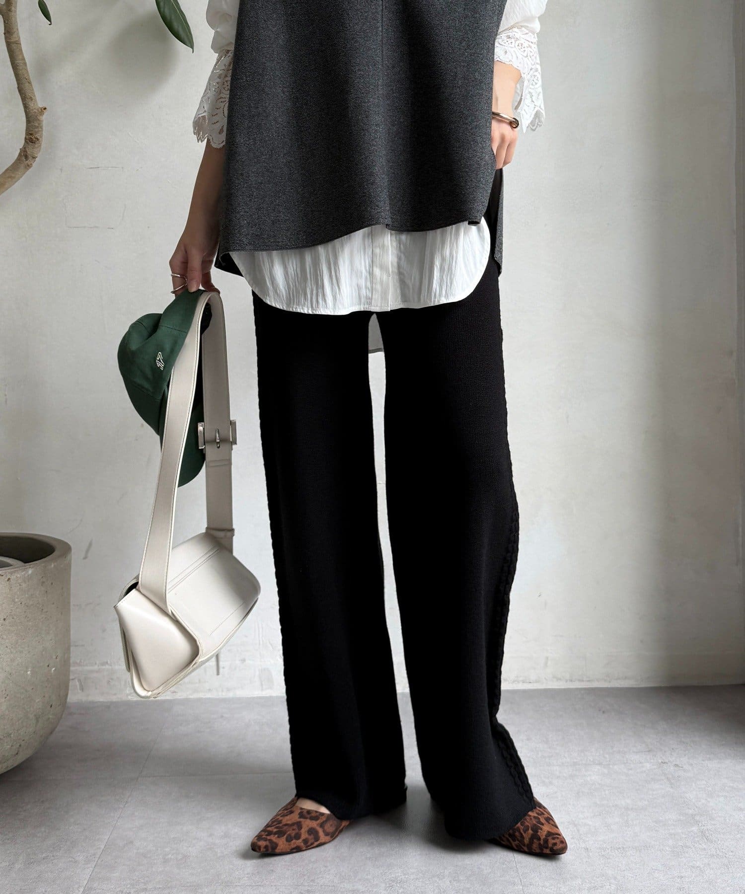 立体感のあるケーブル編みが、コーディネートのポイントに!