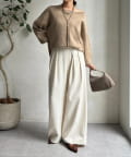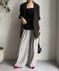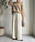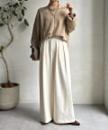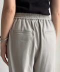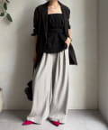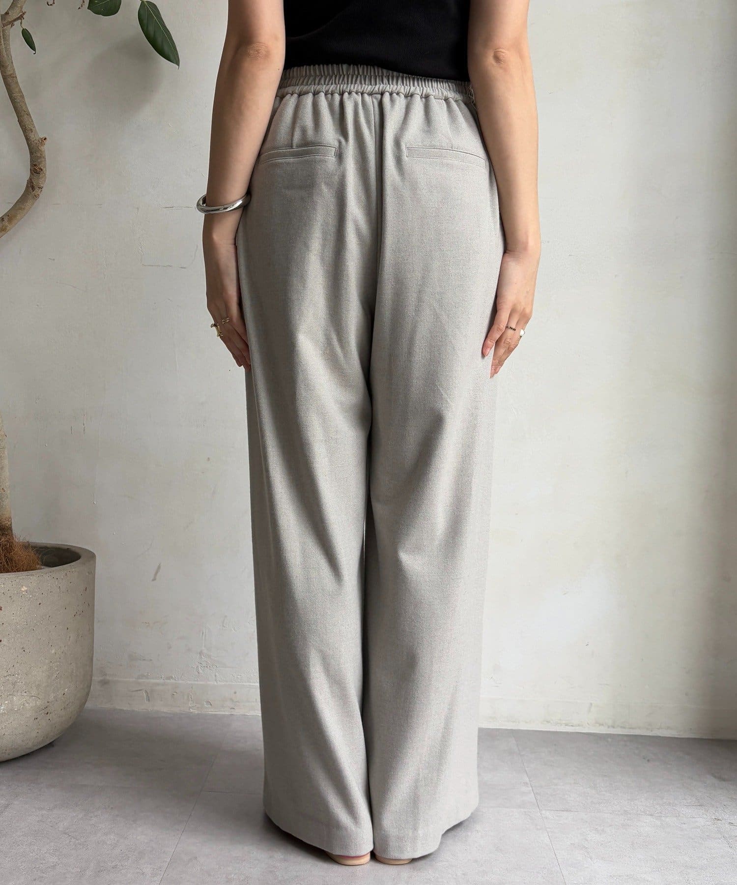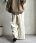 ゆったりと脚のラインを拾わず、ウエストはバックゴム仕様で履き心地はイージー。