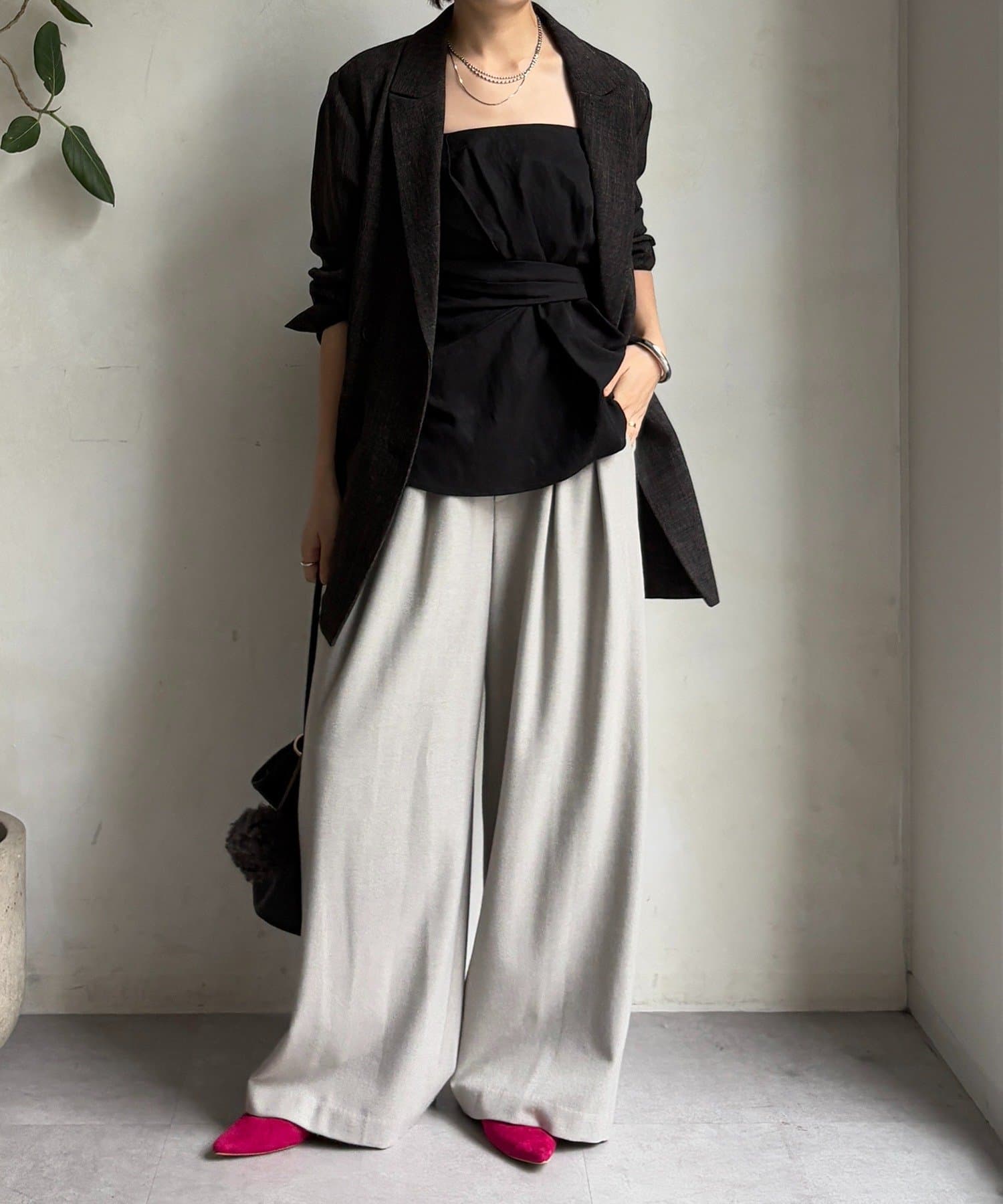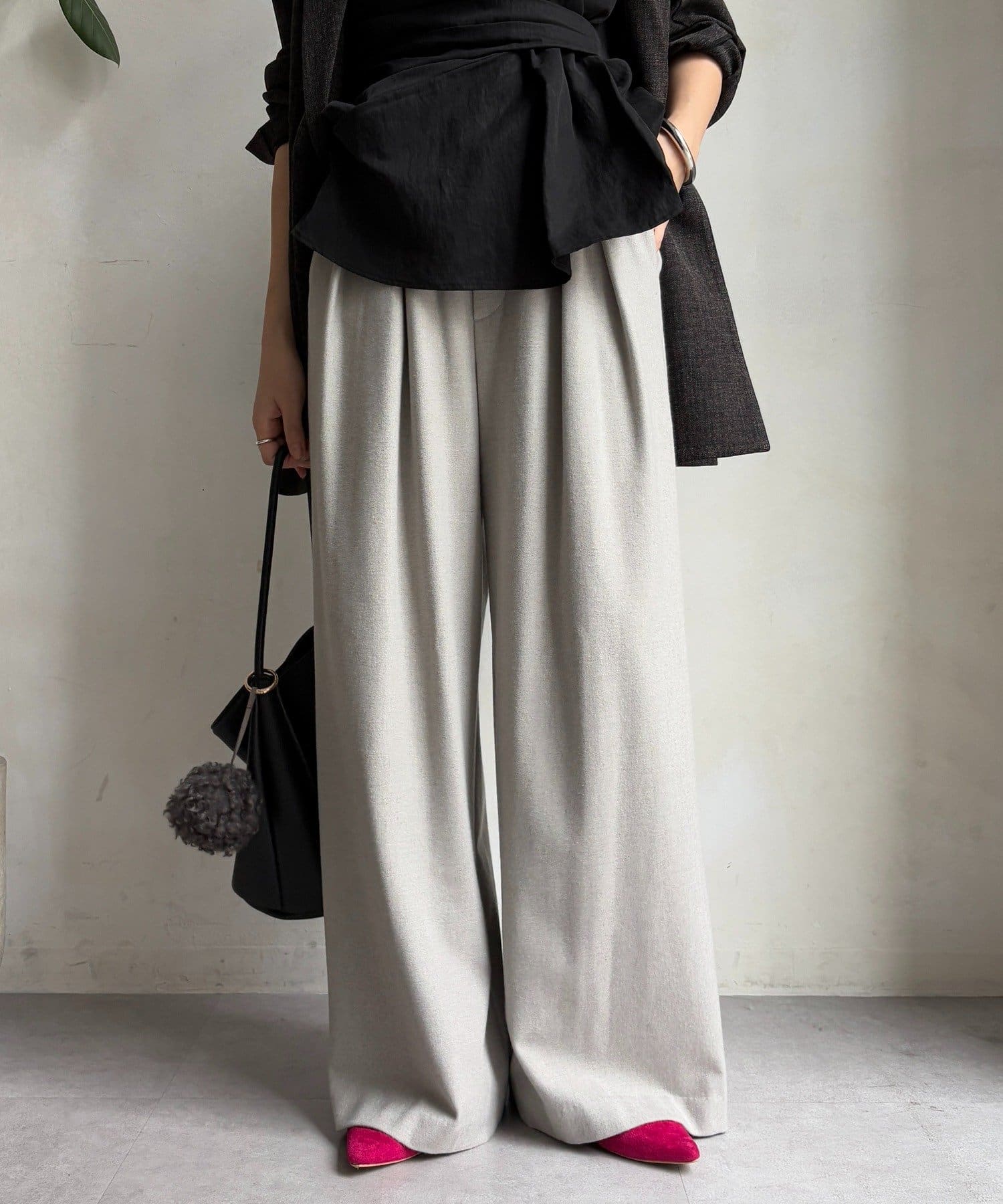 大人気タックワイドパンツがこの秋冬、新素材でアップデート!