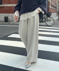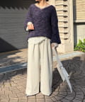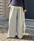 ゆったりと脚のラインを拾わず、ウエストはバックゴム仕様で履き心地はイージー。