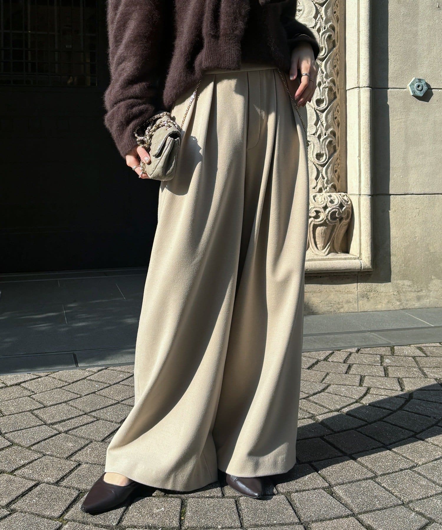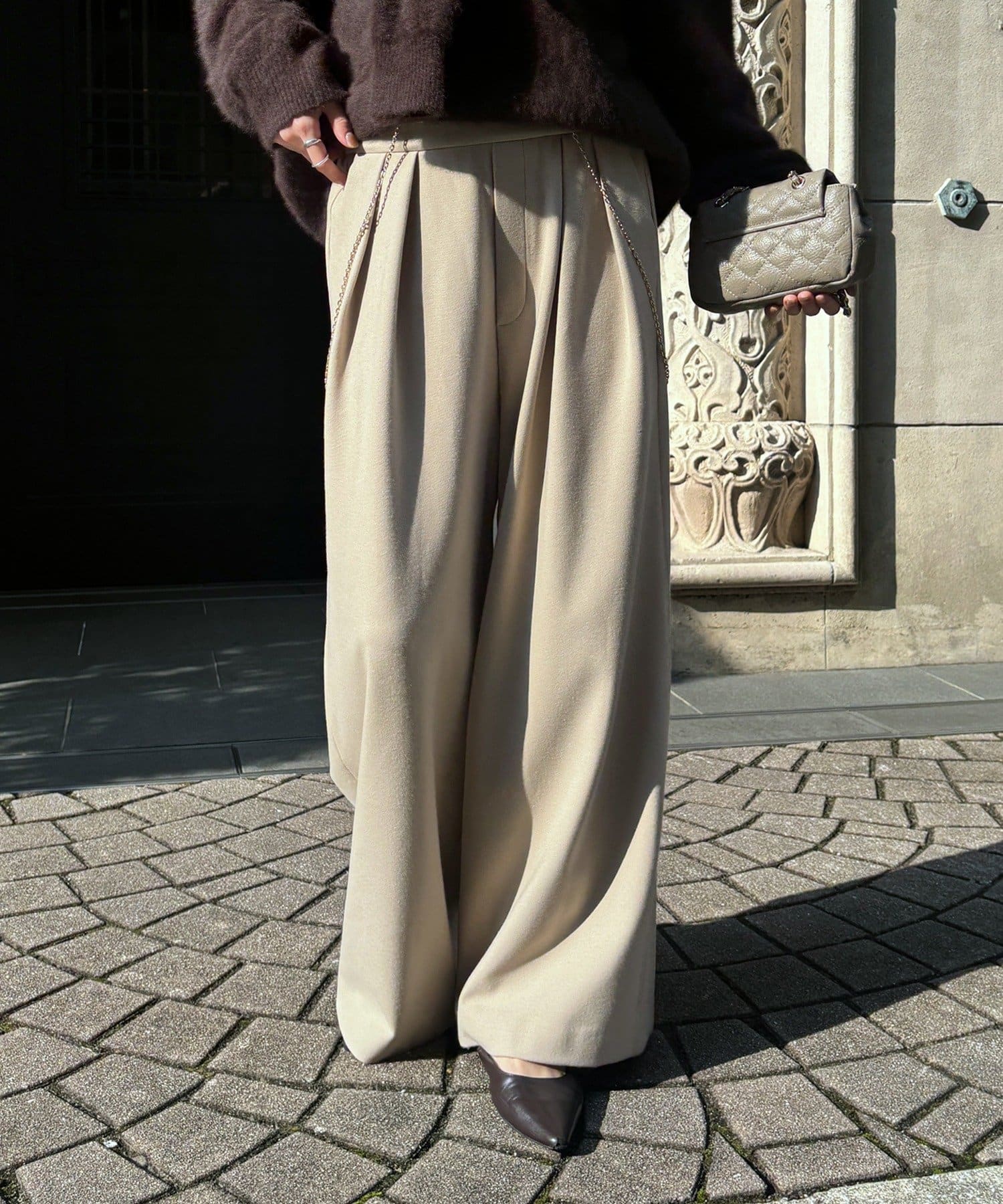・秋冬らしく決まるタックワイドパンツ!