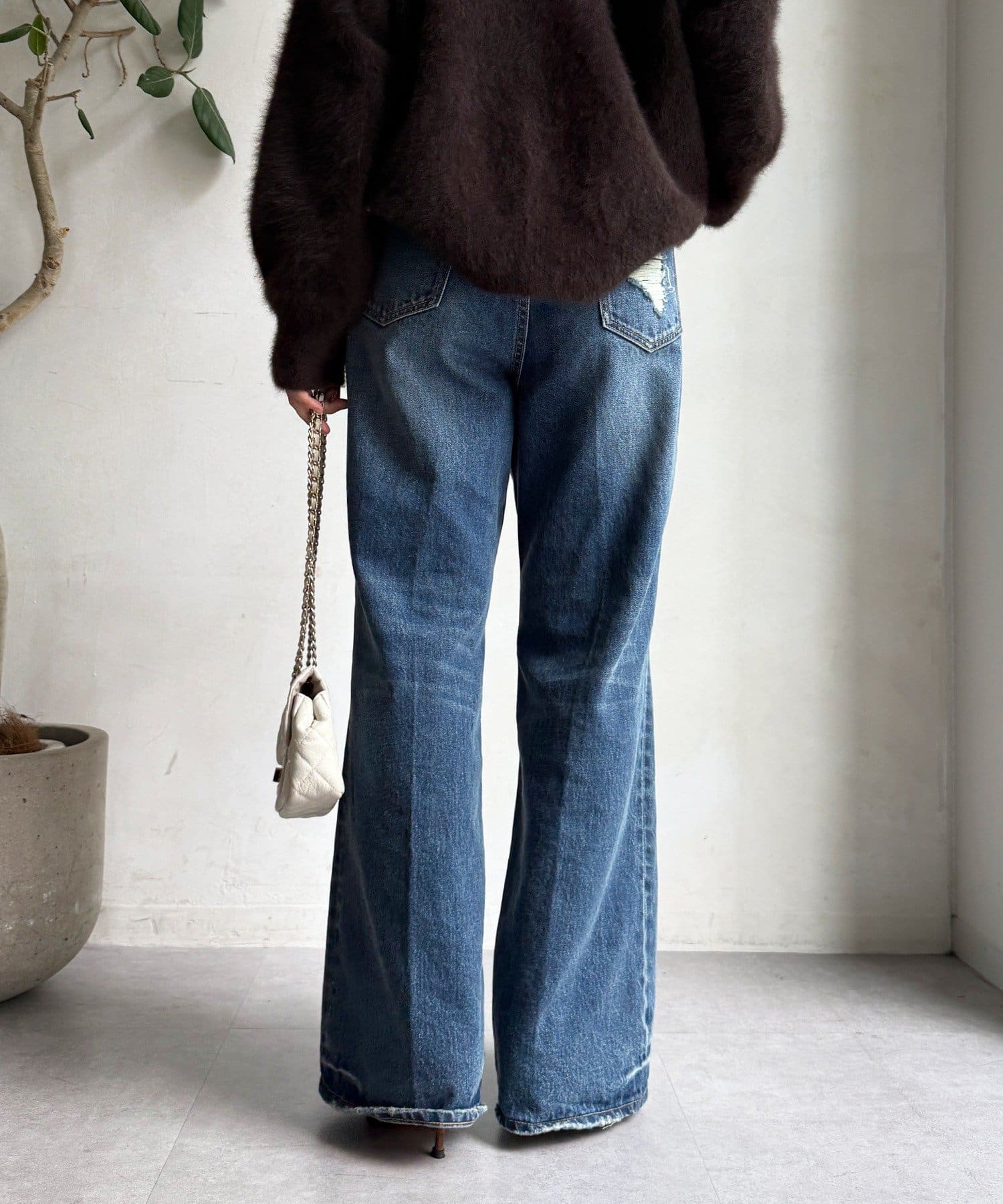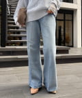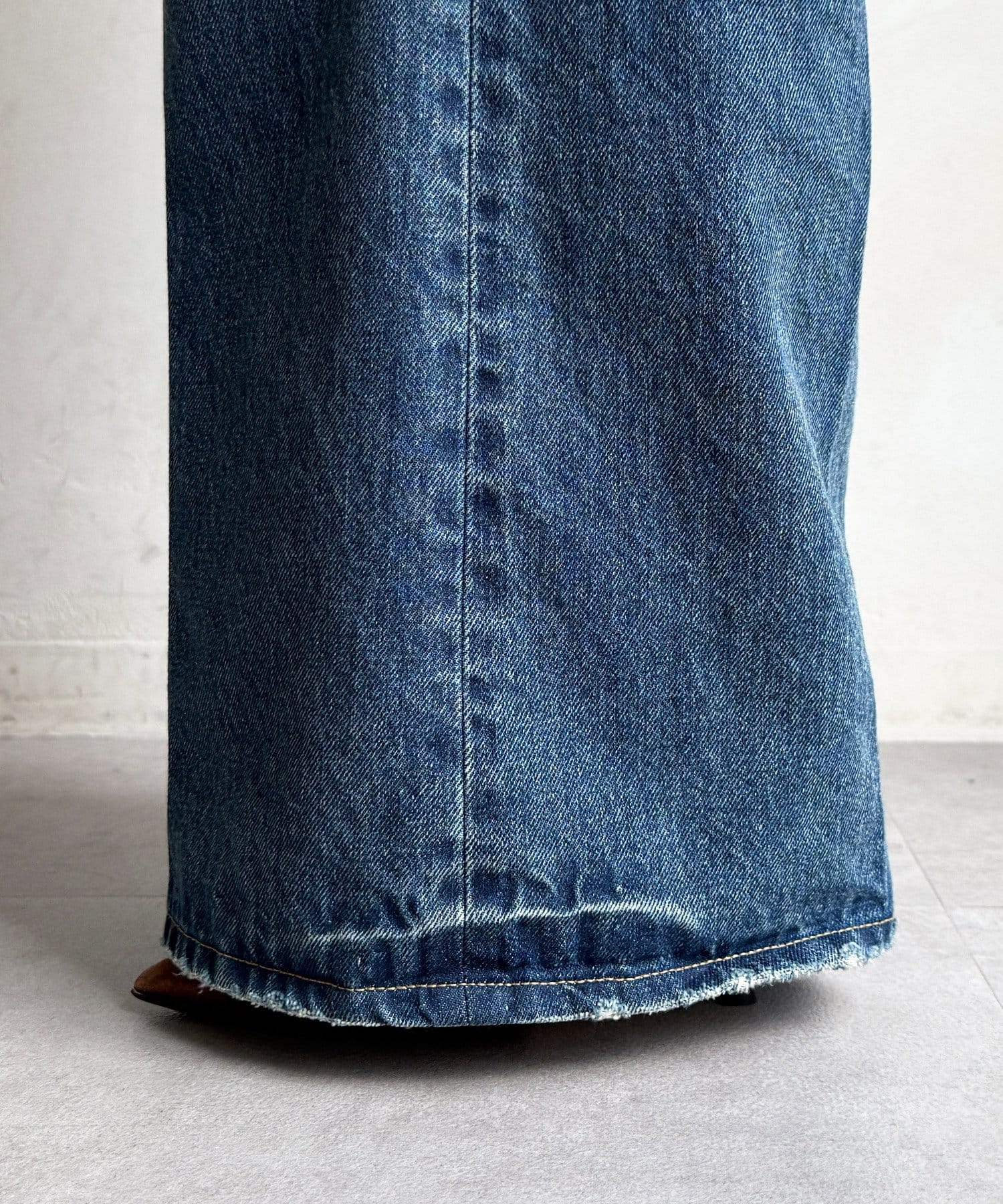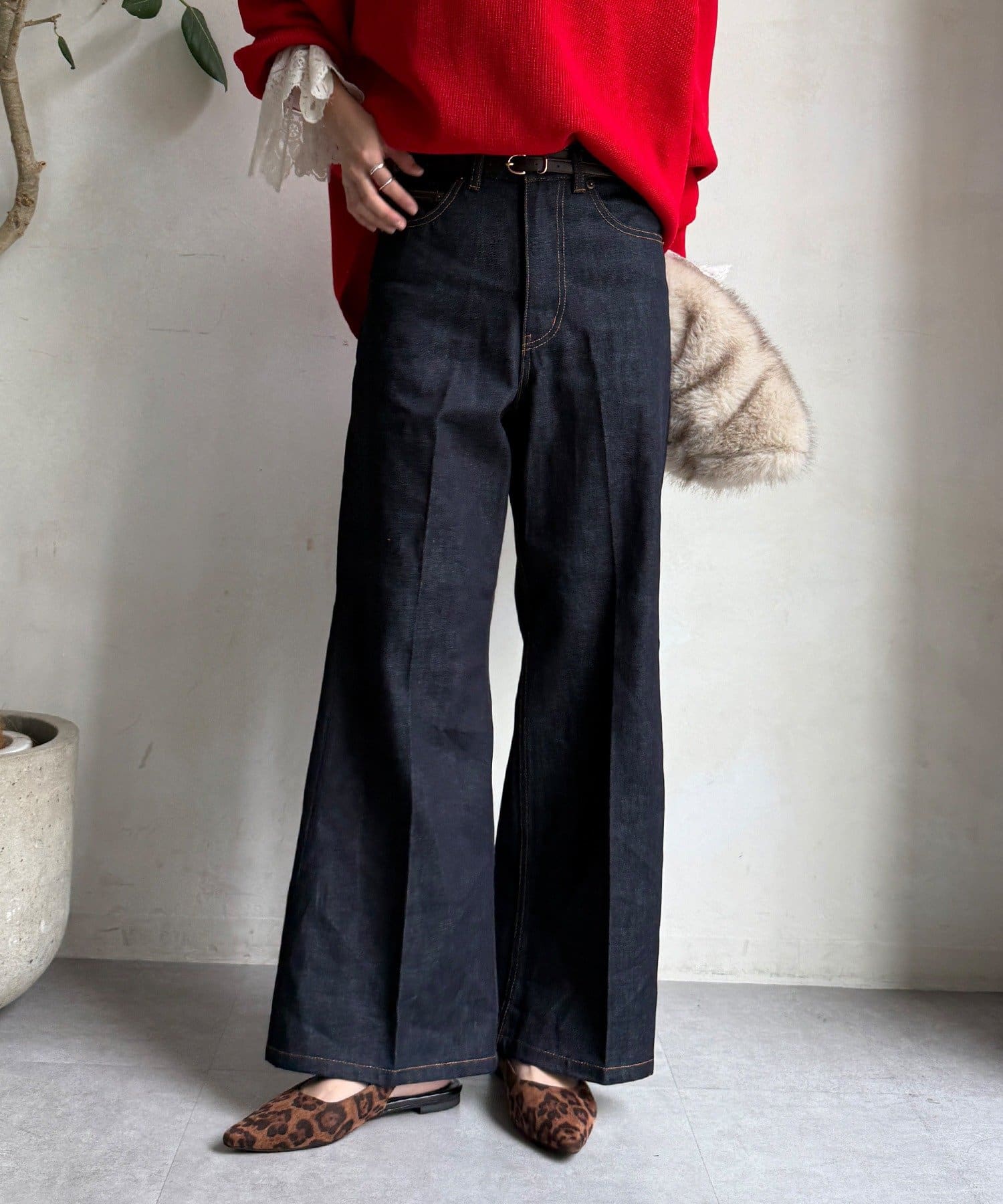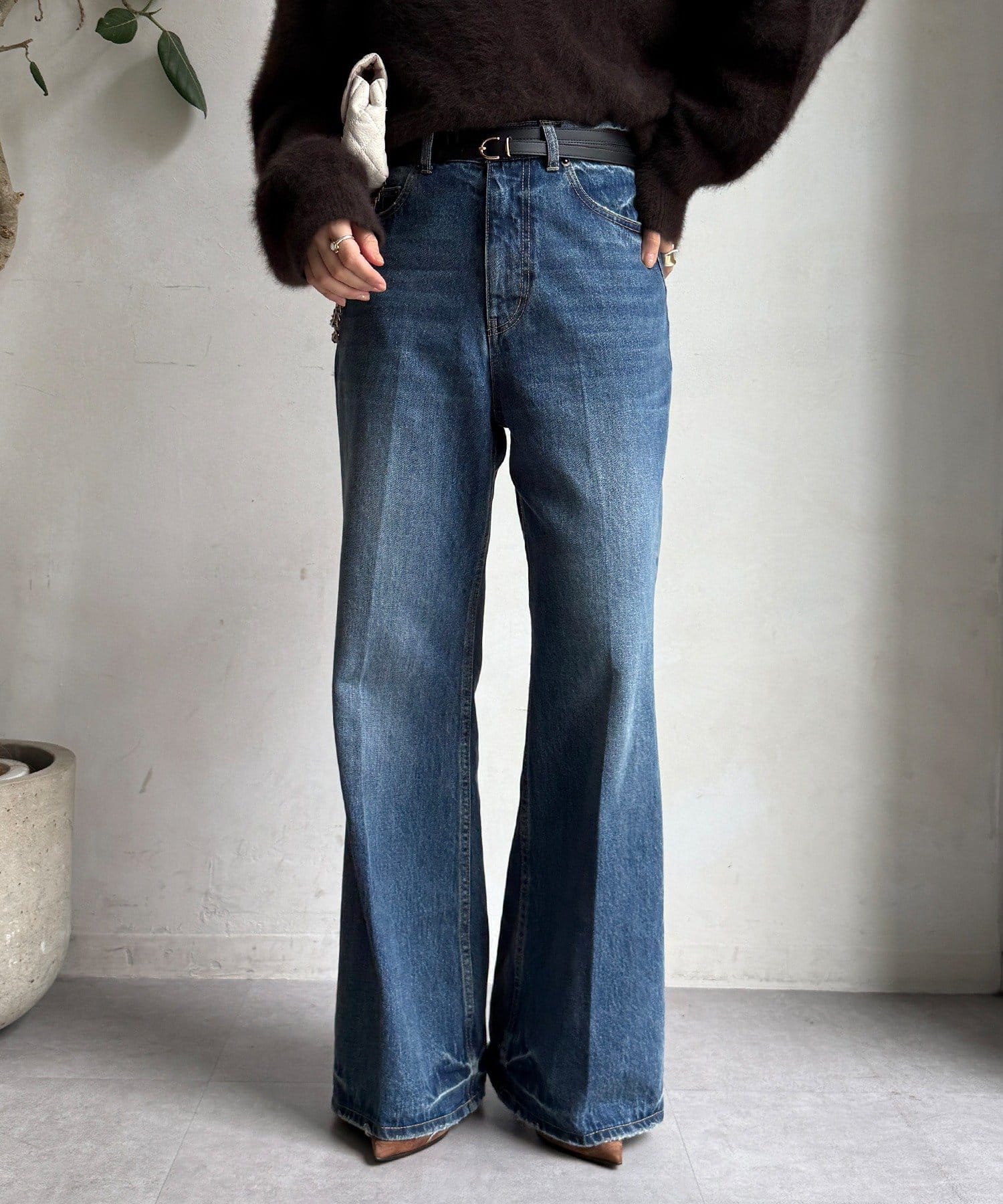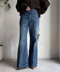 【完売カラー再追加!/2サイズ展開/美脚効果】ルーズフレアデニム