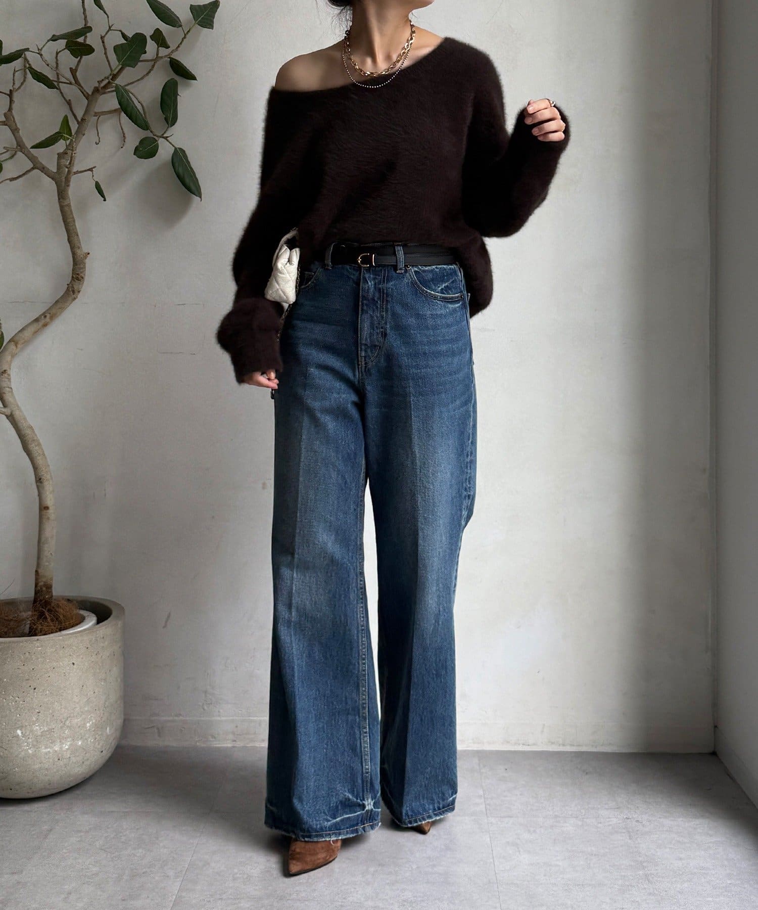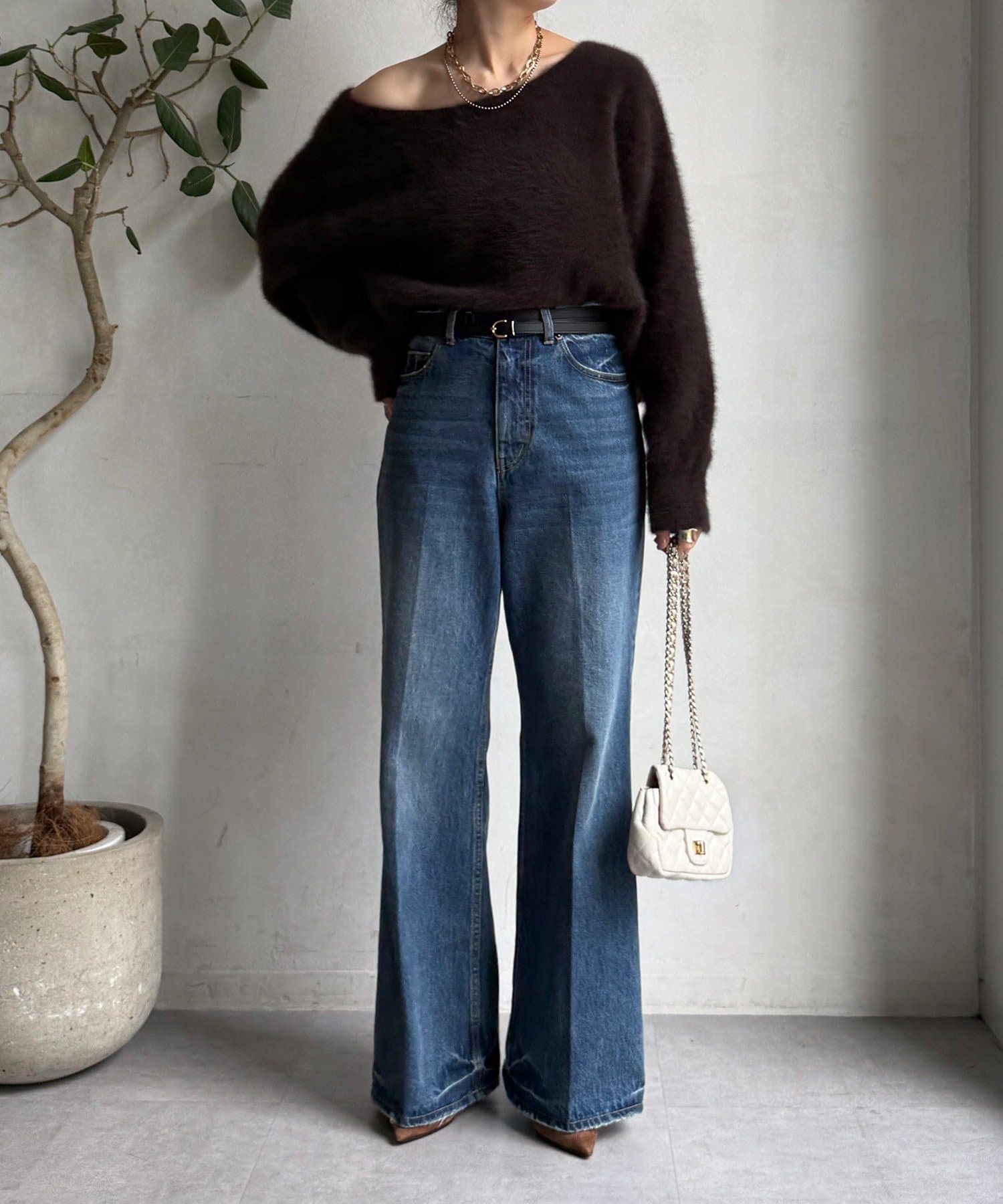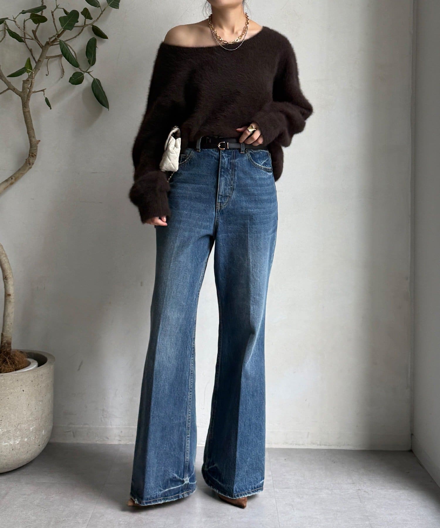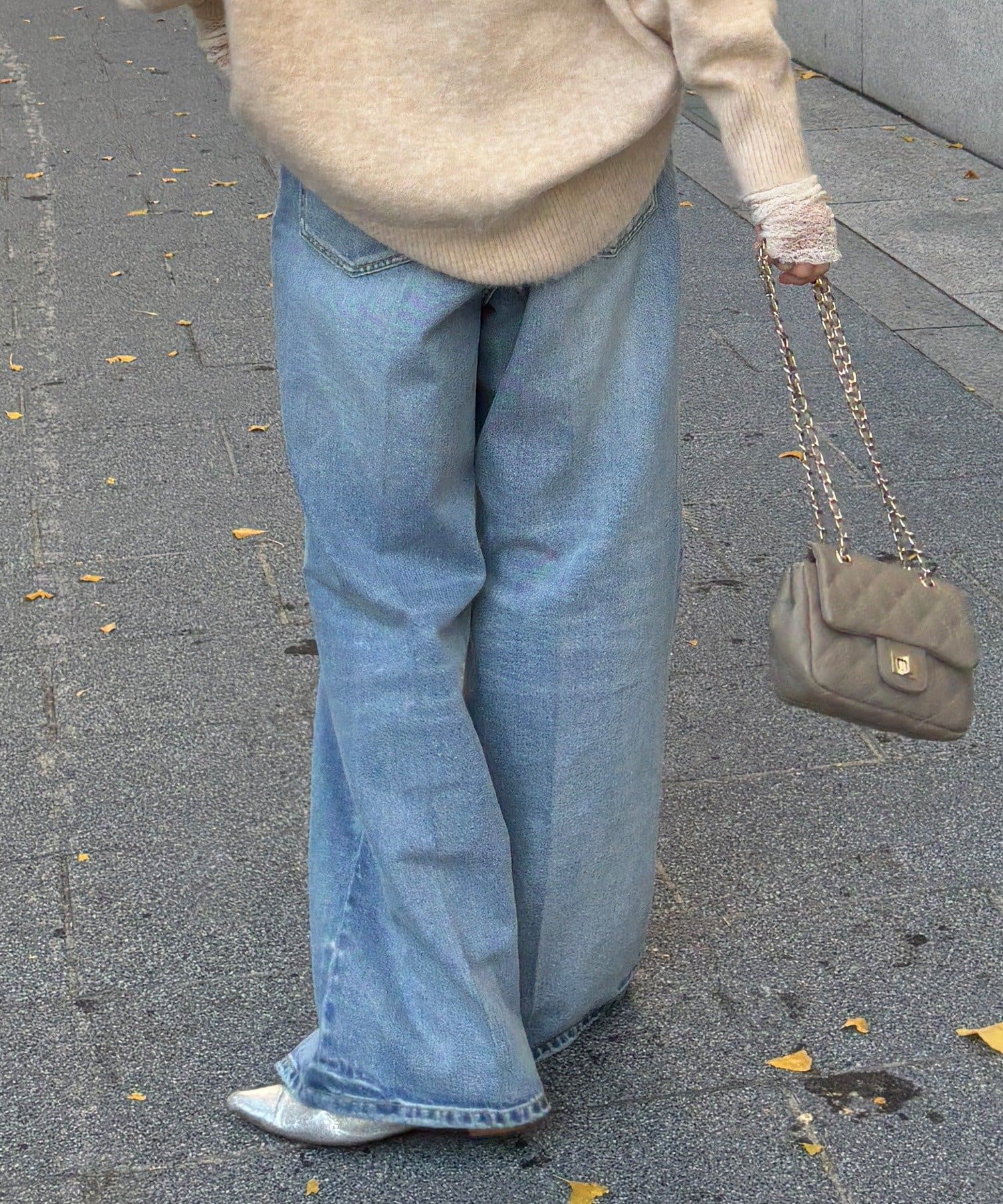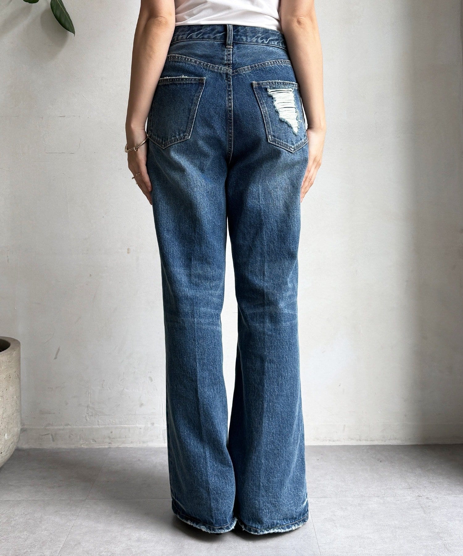 【完売カラー再追加!/2サイズ展開/美脚効果】ルーズフレアデニム