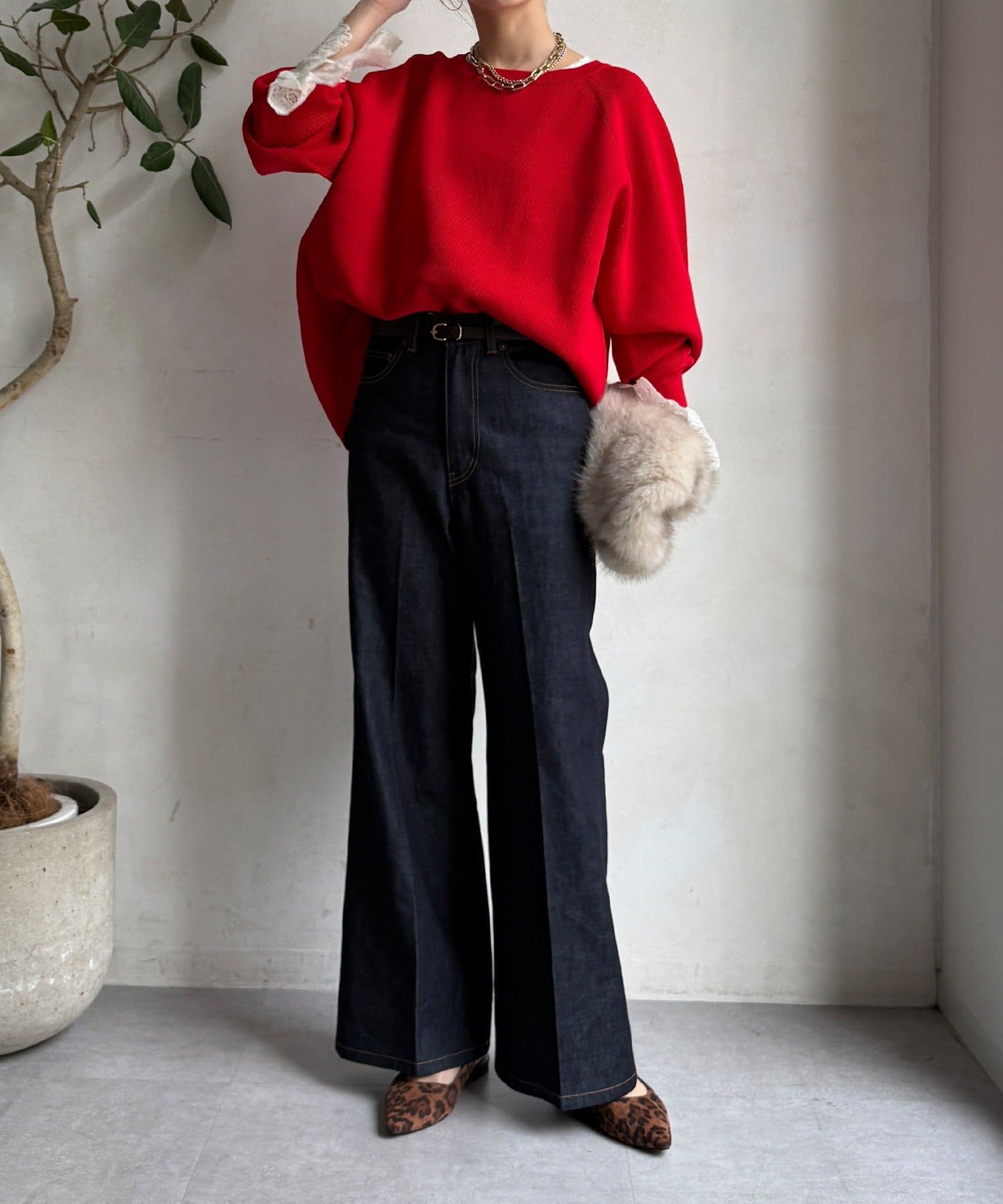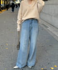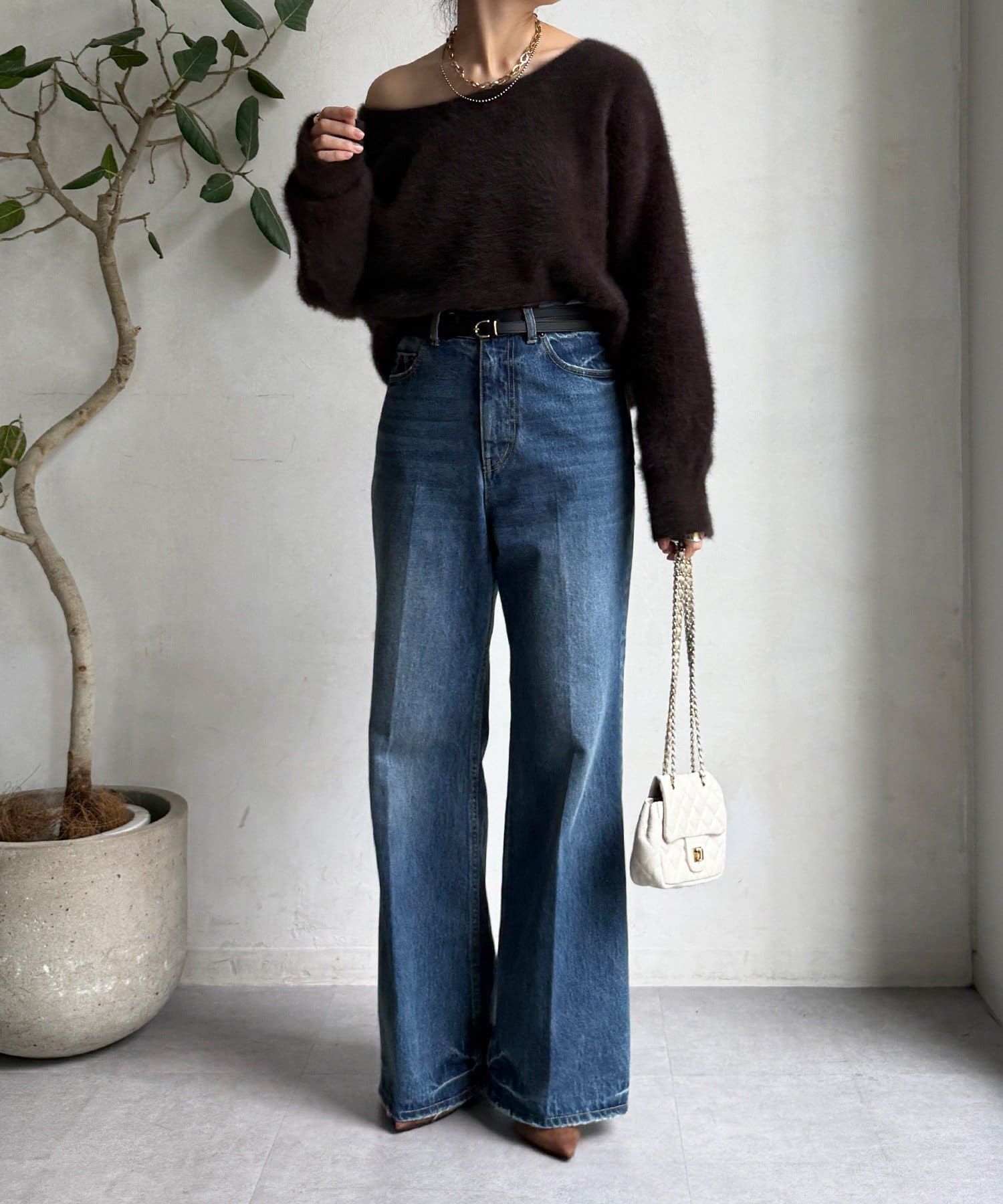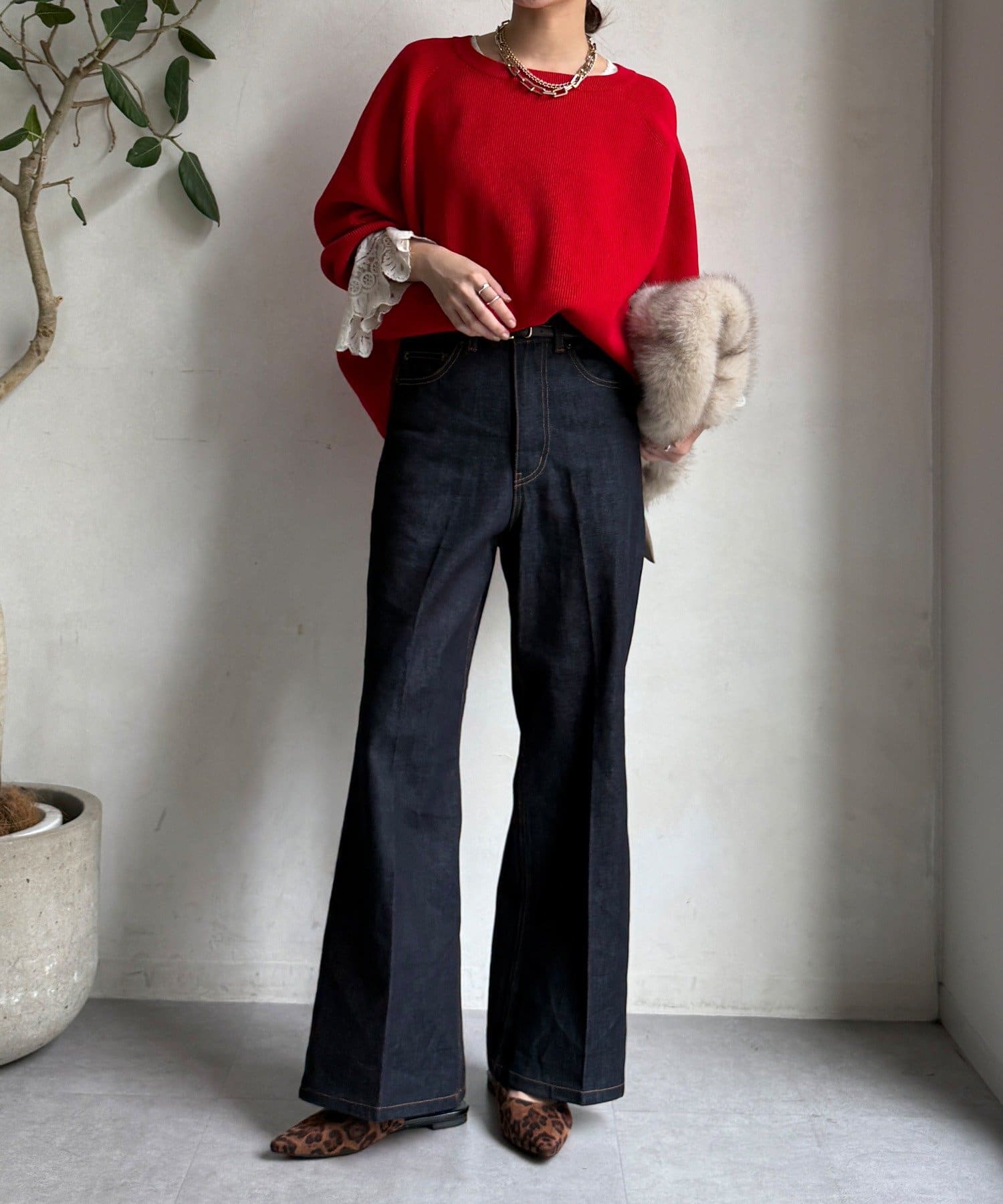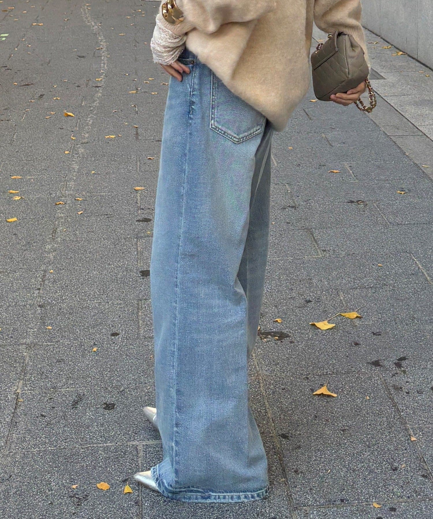 【完売カラー再追加!/2サイズ展開/美脚効果】ルーズフレアデニム